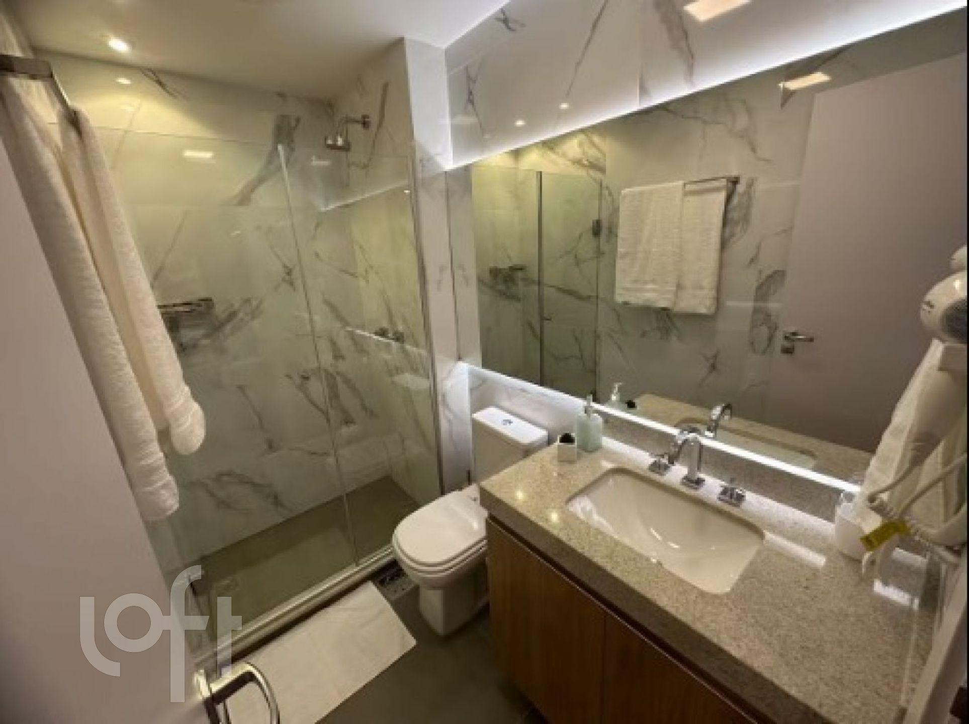 O apartamento ainda conta com ar-condicionado (SPLIT), armários com cabides, ferro de passar roupas, SmartTV, utensílios básicos de cozinha incluindo cafeteira, torradeira, chaleira elétrica, fogão de indução, microondas, também conta com roupa de cama e banho, secador de cabelo.