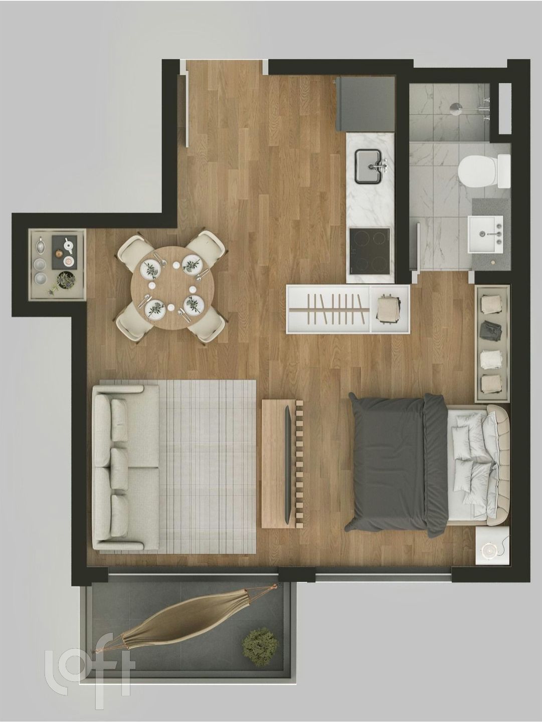 Excelente apartamento de um dormitório com sacada e vaga coberta.