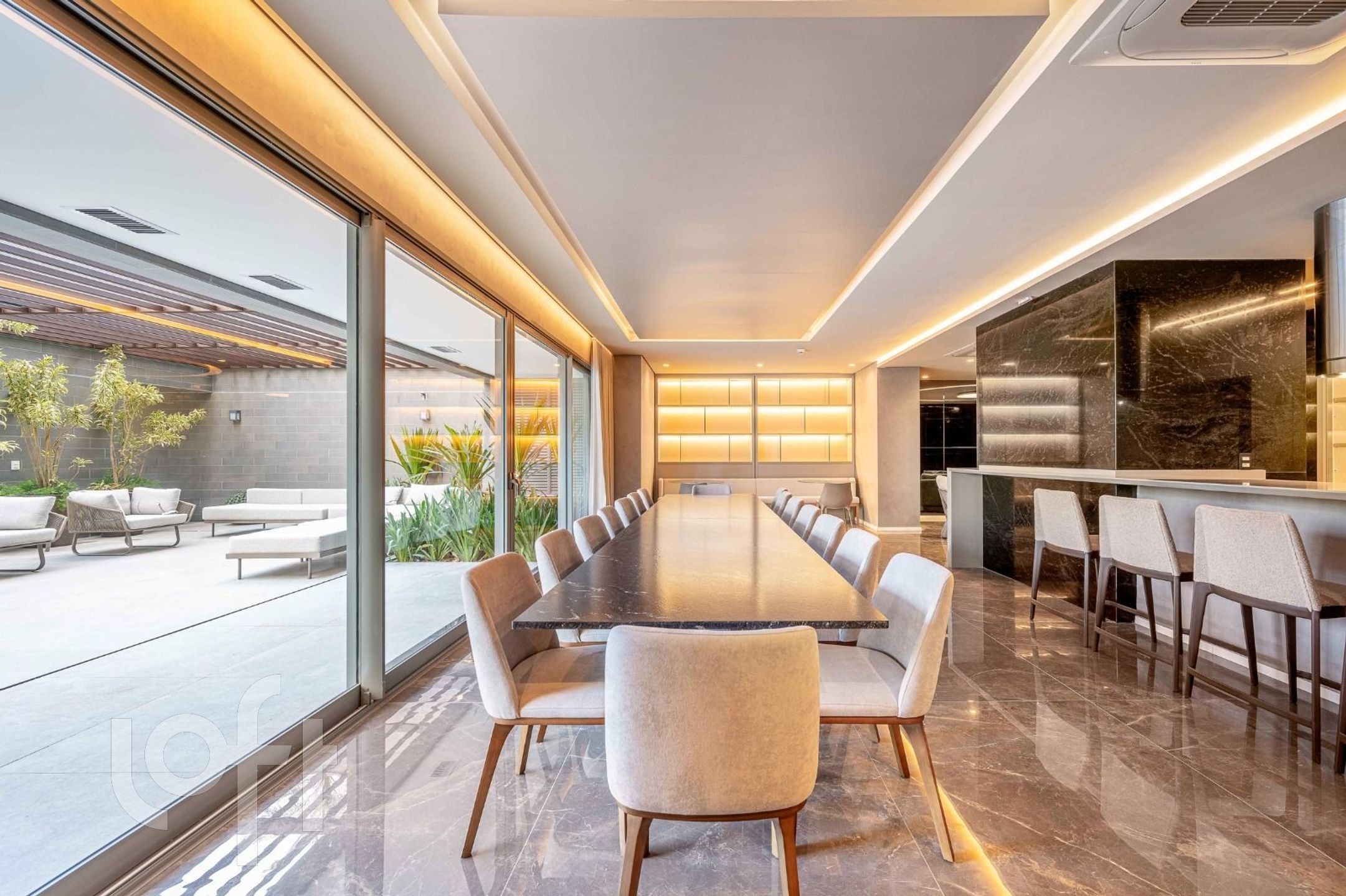 Imóvel com 345 m² privativos, 3 suítes, amplo living com lareira para vários ambientes, lavabo, sala de jantar, espaço para gabinete, copa/cozinha, área de serviço completa com despensa e banheiro auxiliar.