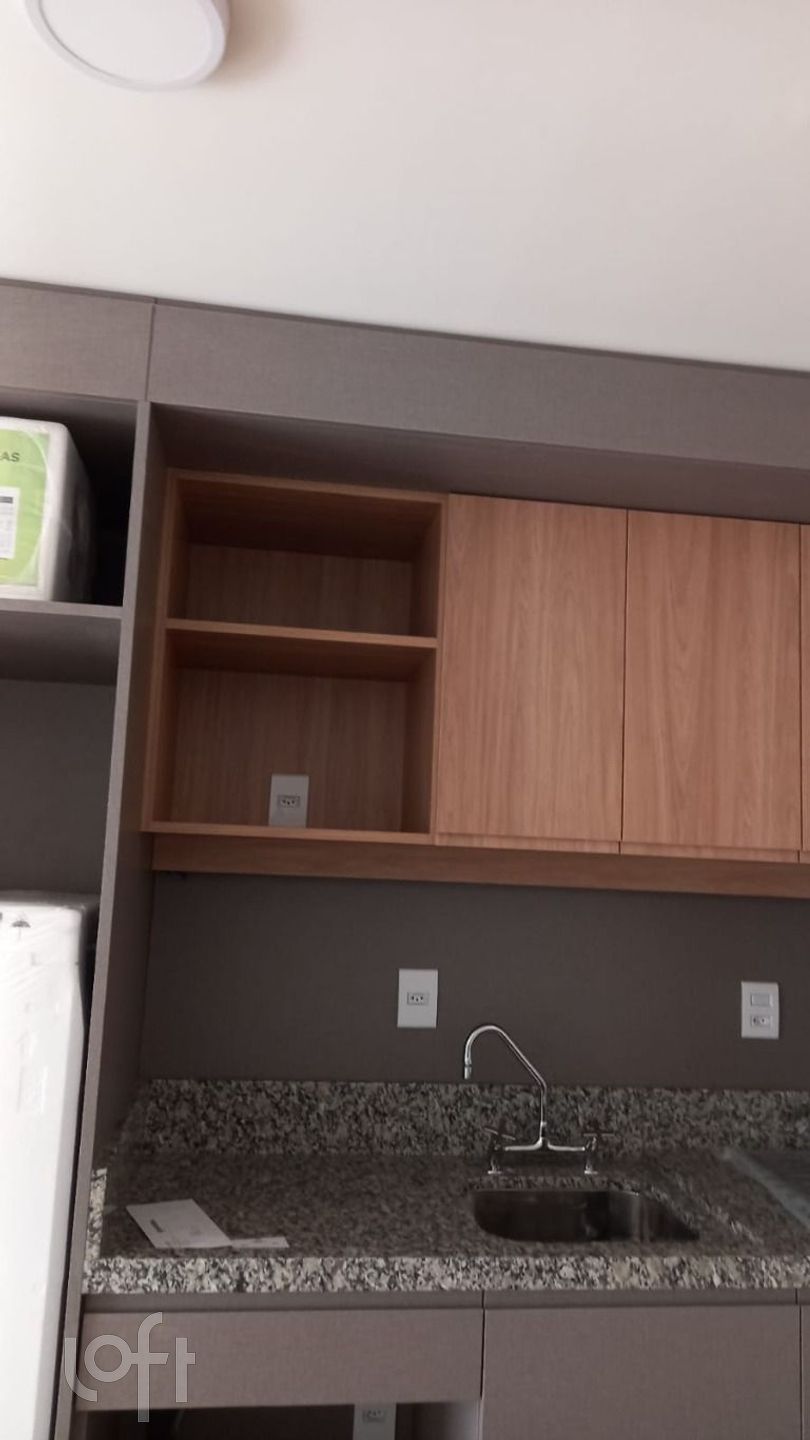Com 37 m² de área privativa, piso laminado, luminárias, e sacada.