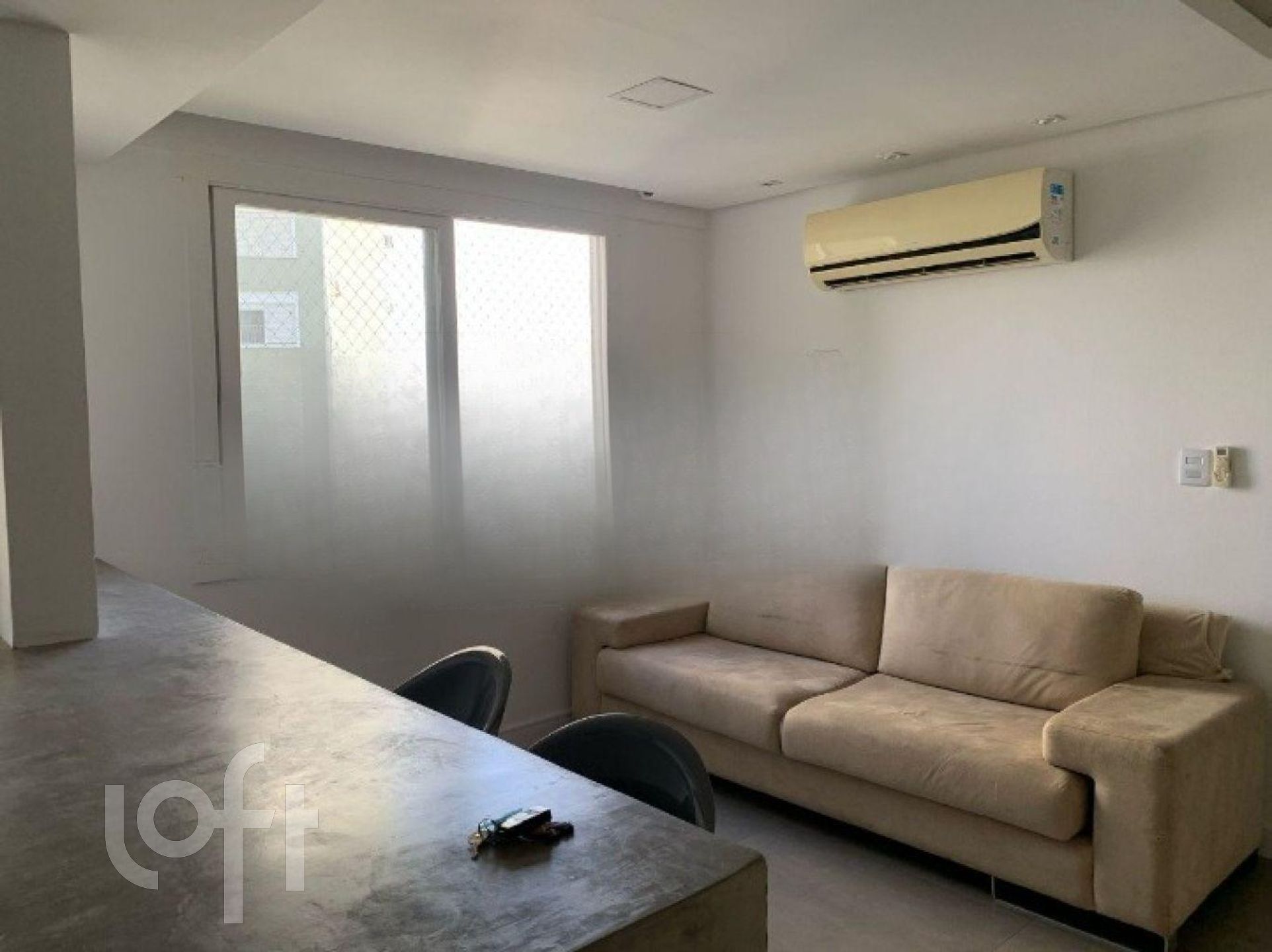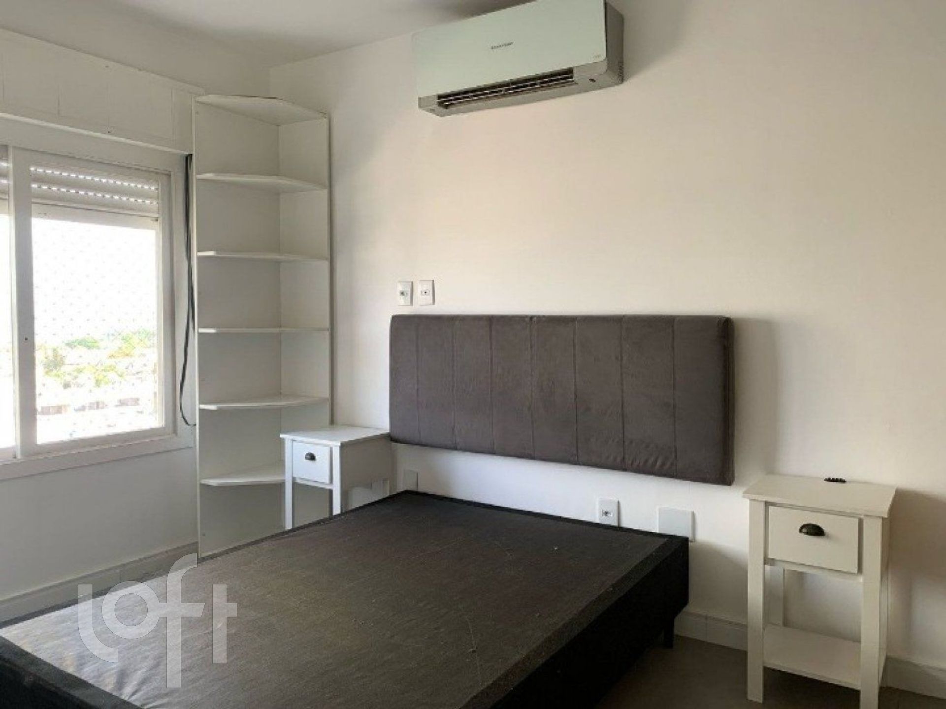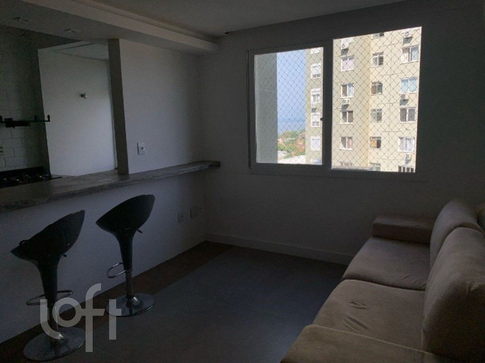 Apartamento semimobiliado de 1 quarto, com linda vista para o Rio Guaíba. Sala com ar-condicionado, cozinha americana com móveis planejados, quarto completo com ar-condicionado e banheiro.