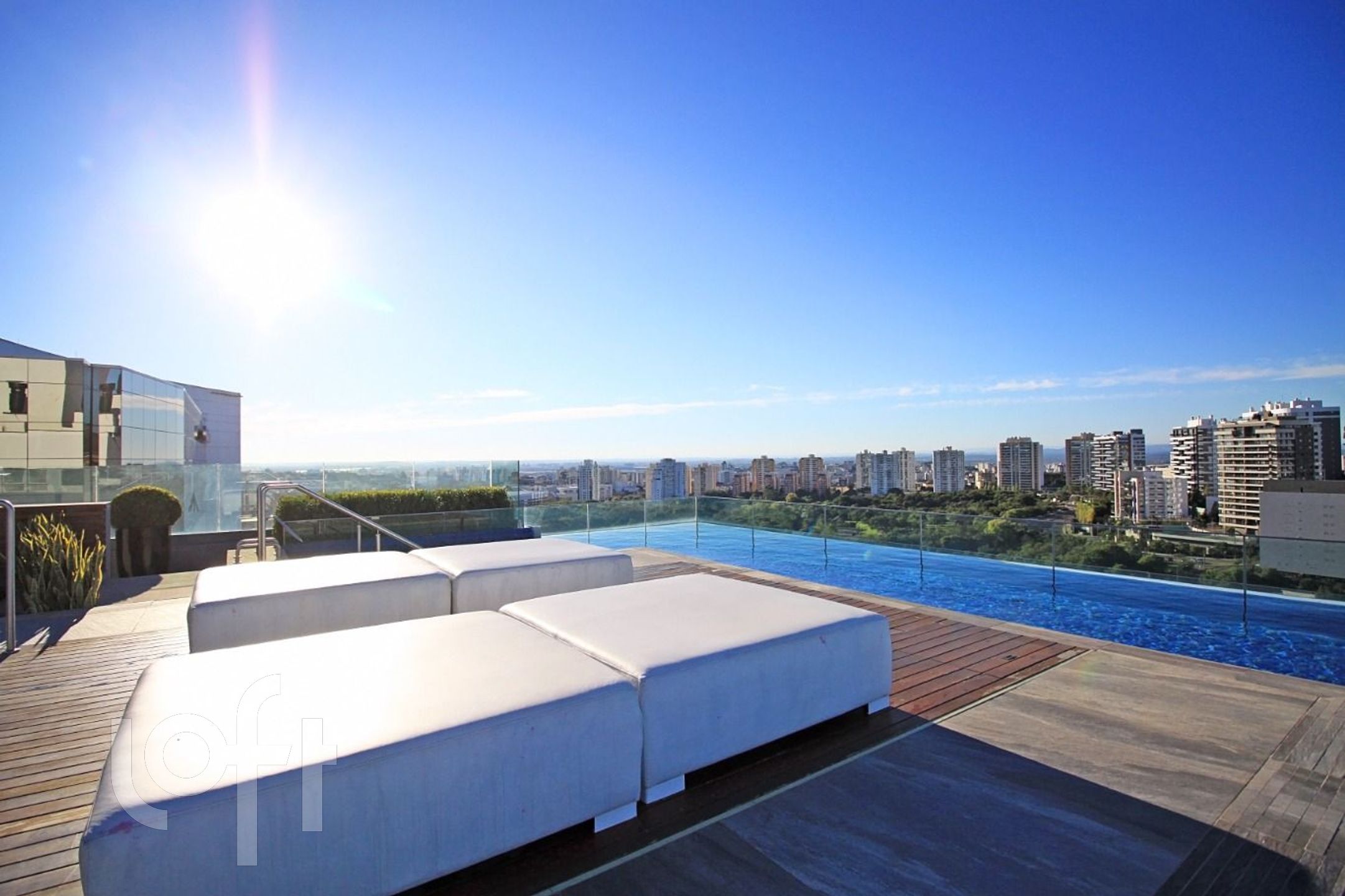 Piscina com borda infinita e vista deslumbrante, perfeita para relaxar após um dia cheio.