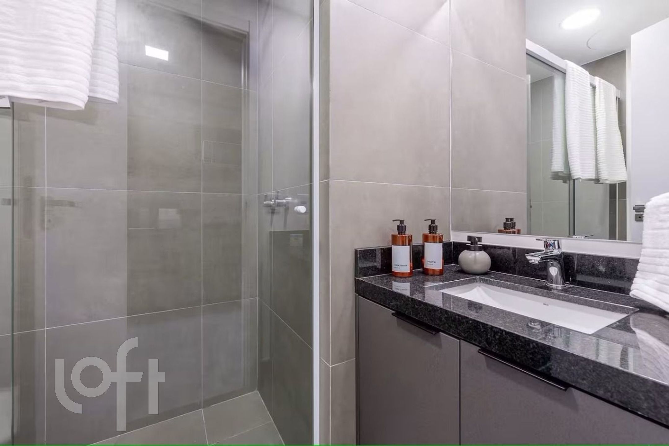 Box de vidro no banheiro.