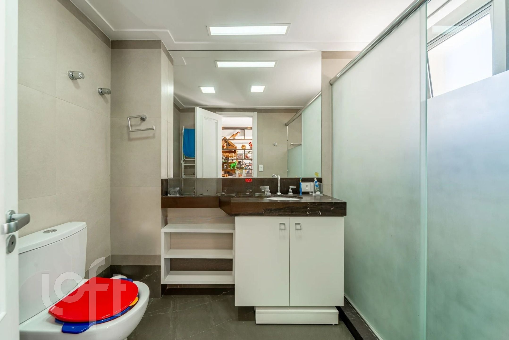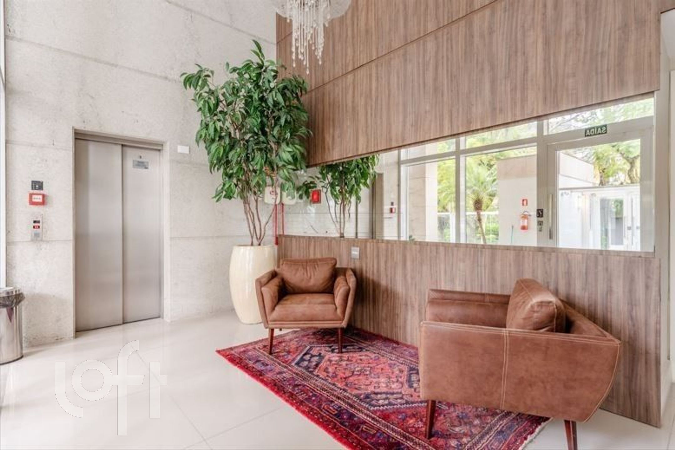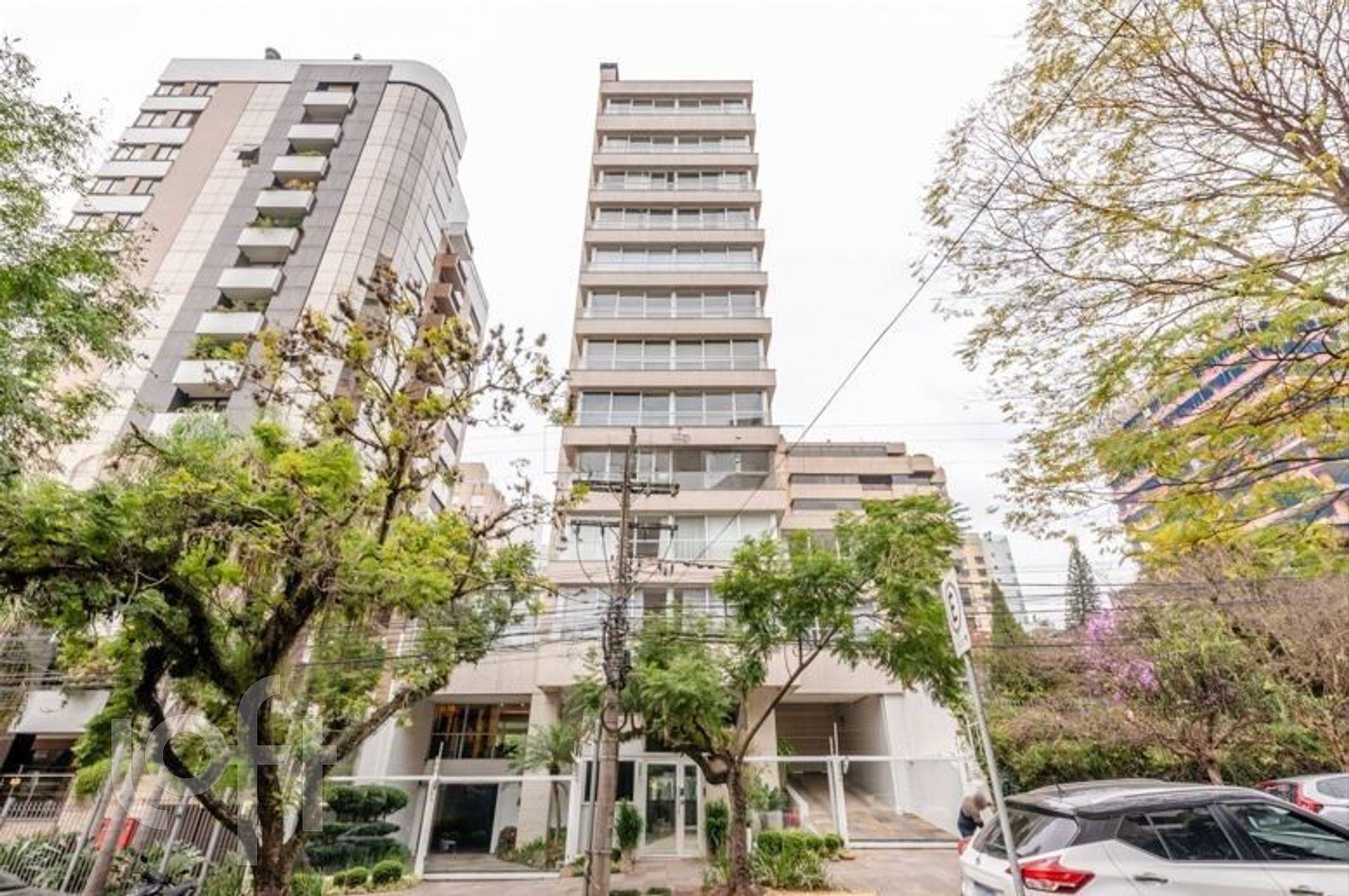 Edifício imponente com um apartamento por andar, fachada em granito e pastilhas, elevador, portaria 24 horas, fitness e zeladoria.