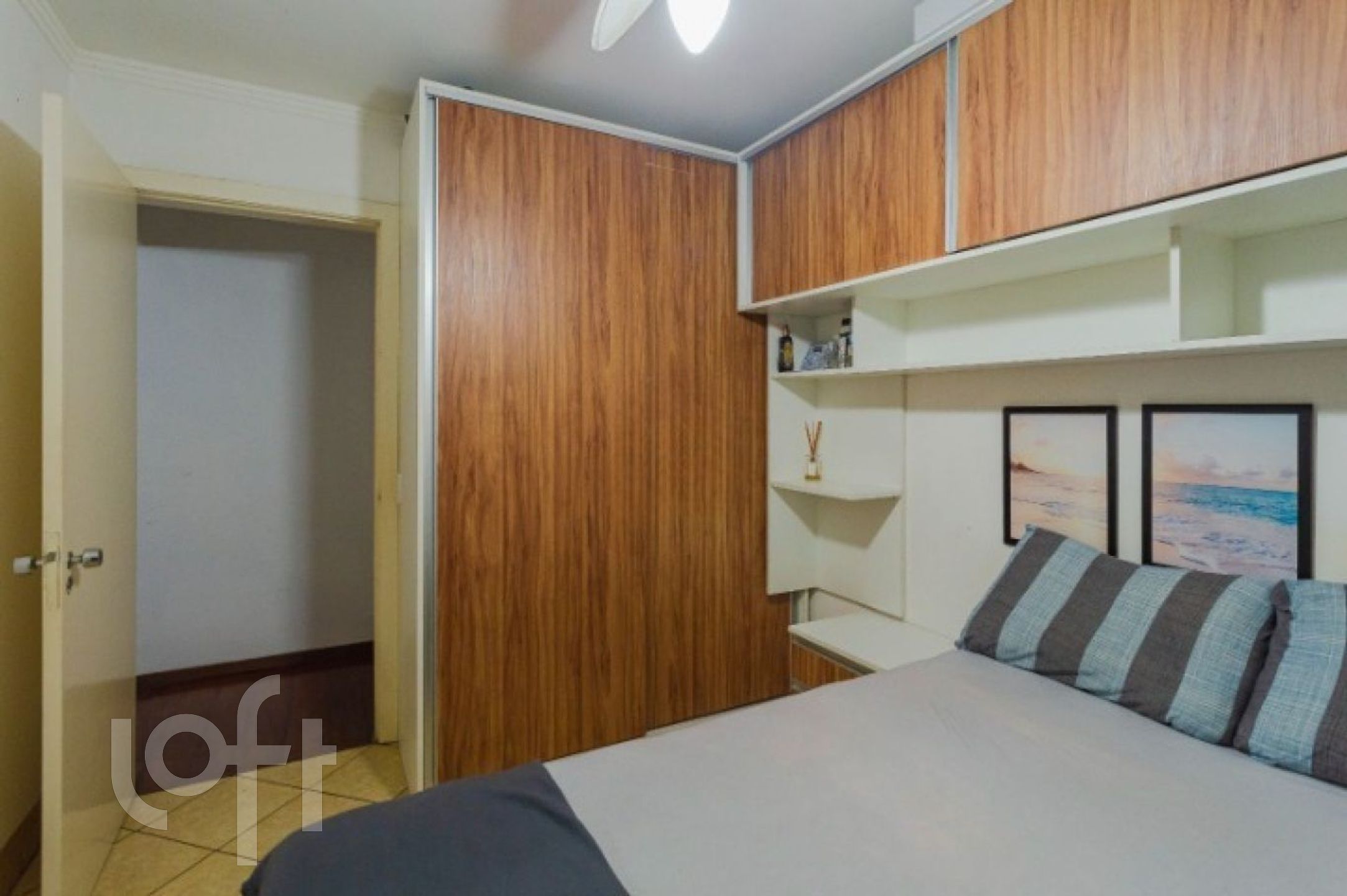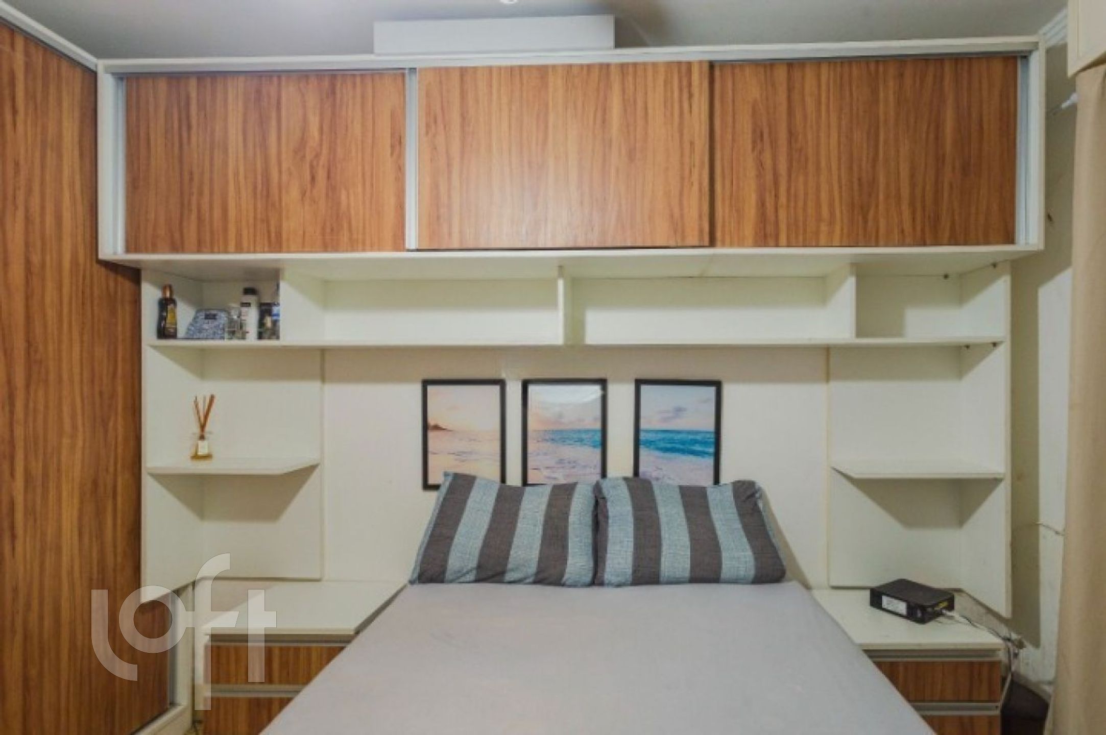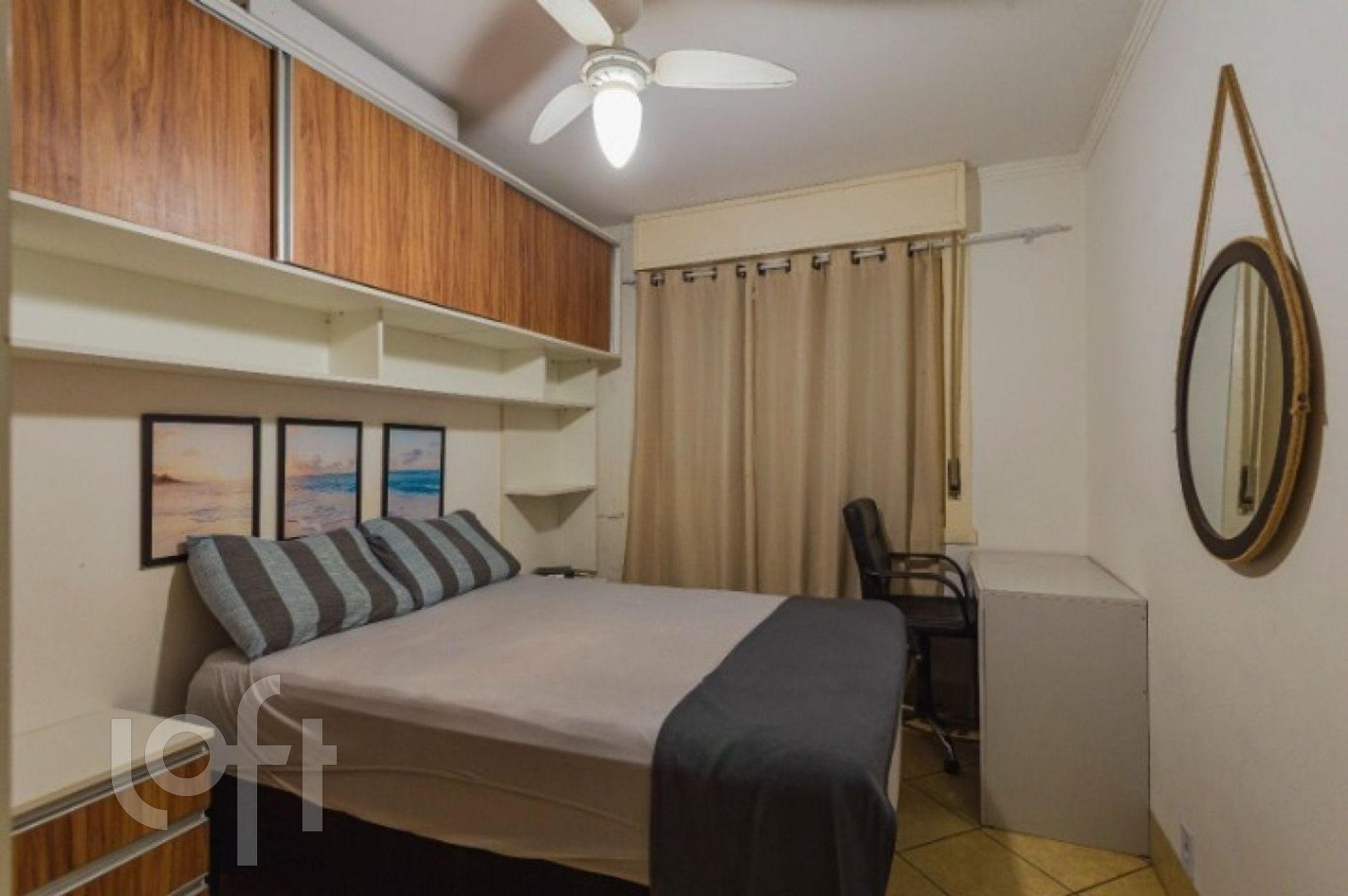 forno eletrico, máquina de lavar, chuveiro elétrico, cama tamanho queen, armários do quarto planejados.