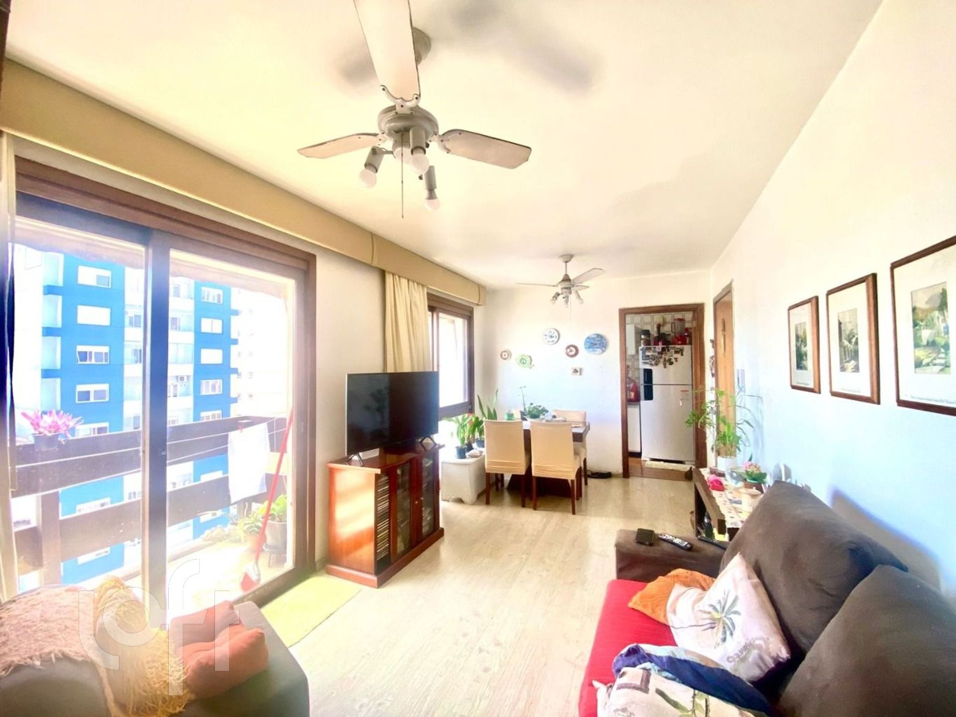 Com 49,3 m² de área privativa, o imóvel conta com um dormitório, sacada, sala, cozinha e área de serviço, banheiro social, todos os ambientes com vista para o guaíba.