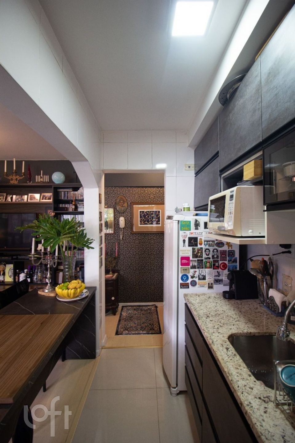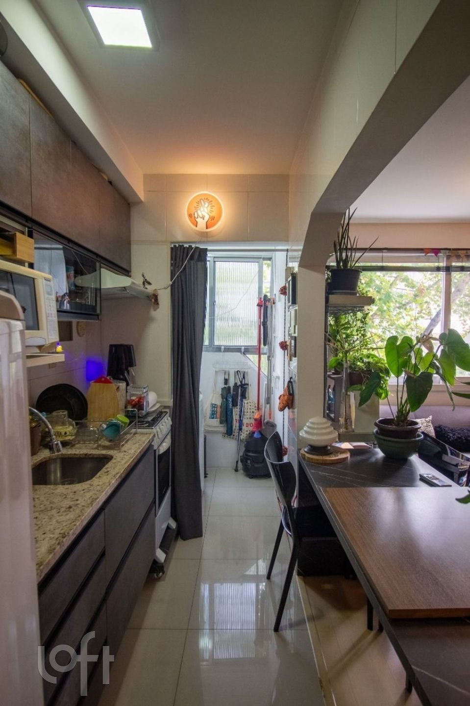 Esse lindo apto todo reformado integrou a sala com a cozinha, dando uma maior amplitude e otimização dos espaços, mantendo a área de serviço separada. Amplo dormitório e banheiro.