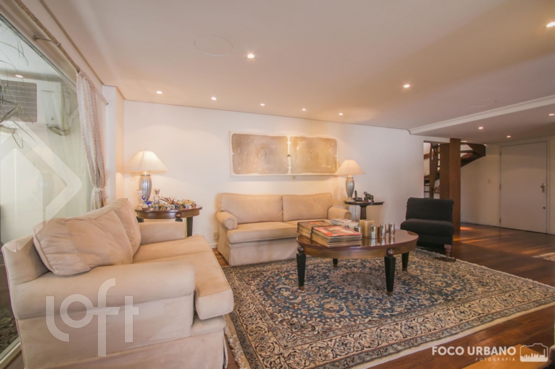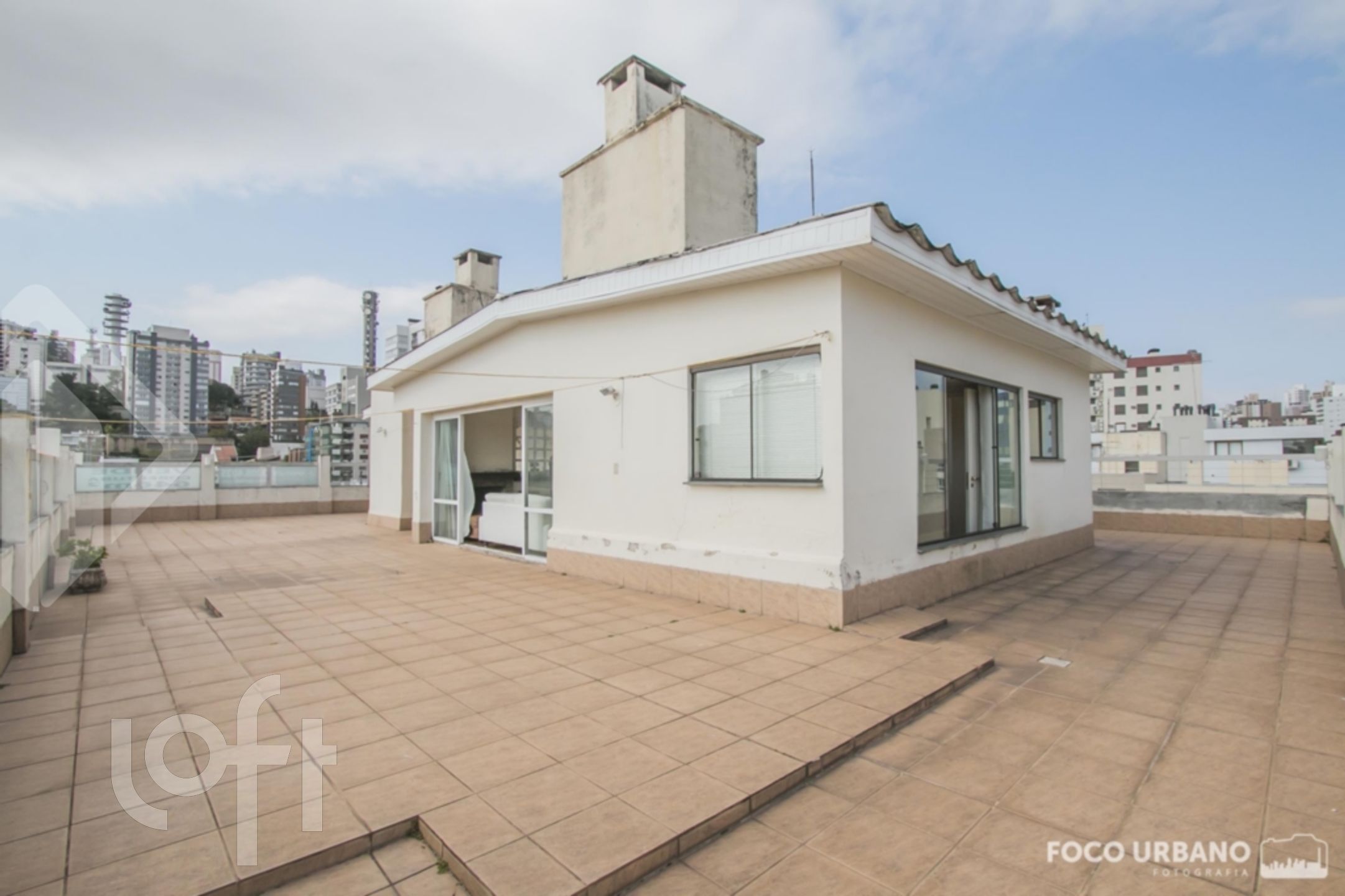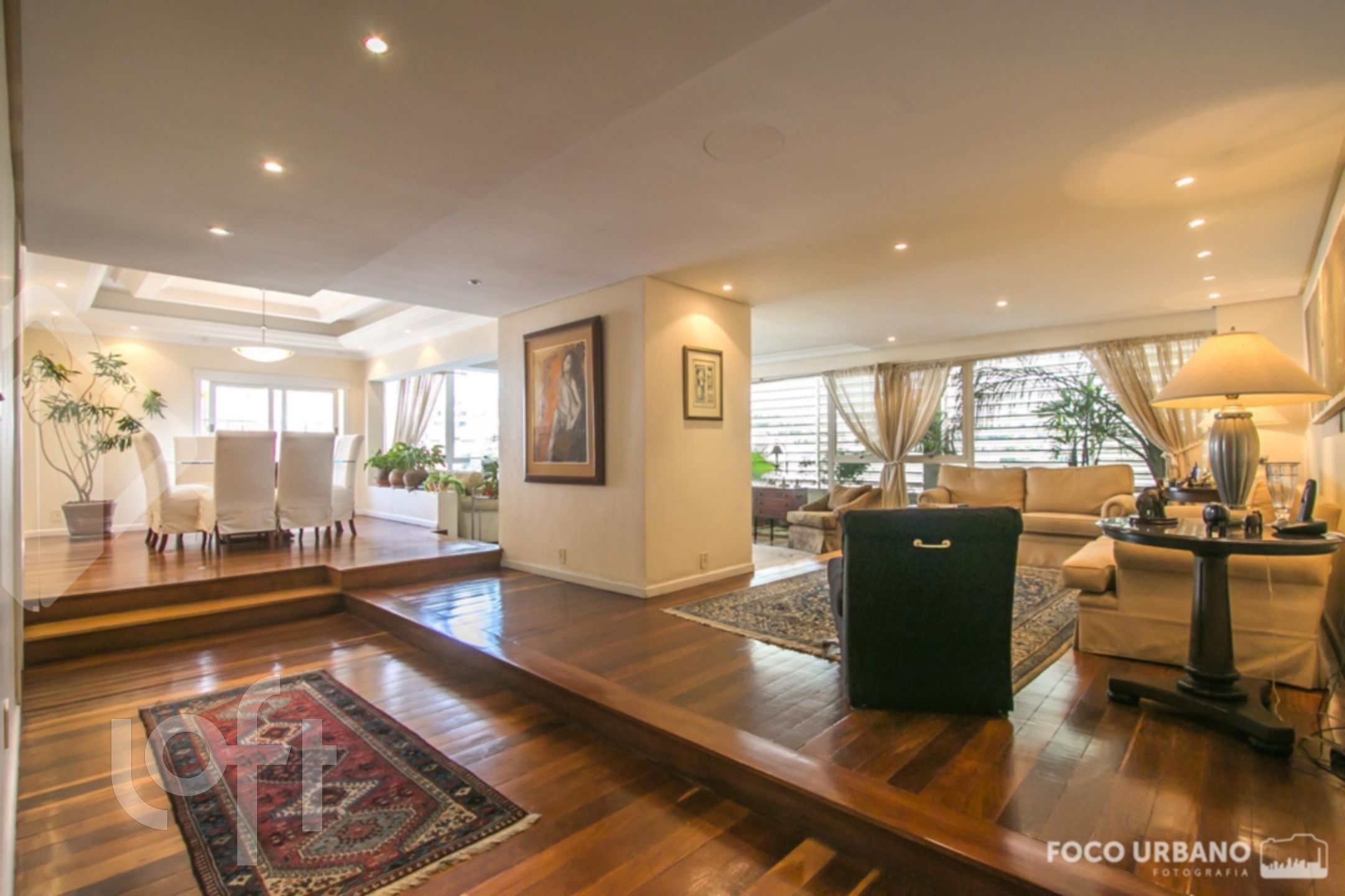 Cobertura com 4 quartos (dormitórios), sendo 4 suítes, área de 529m², 2 vagas de garagem, living amplo em desnível para diversos ambientes, um deles com lareira, jardim de inverno, closet e hidromassagem em uma das suítes, copa cozinha, área de serviço, dependência de empregada, banheiro auxiliar. Parte superior: sala ampla com lareira, churrasqueira, salão de jogos, banho social, amplo terraço, vista.