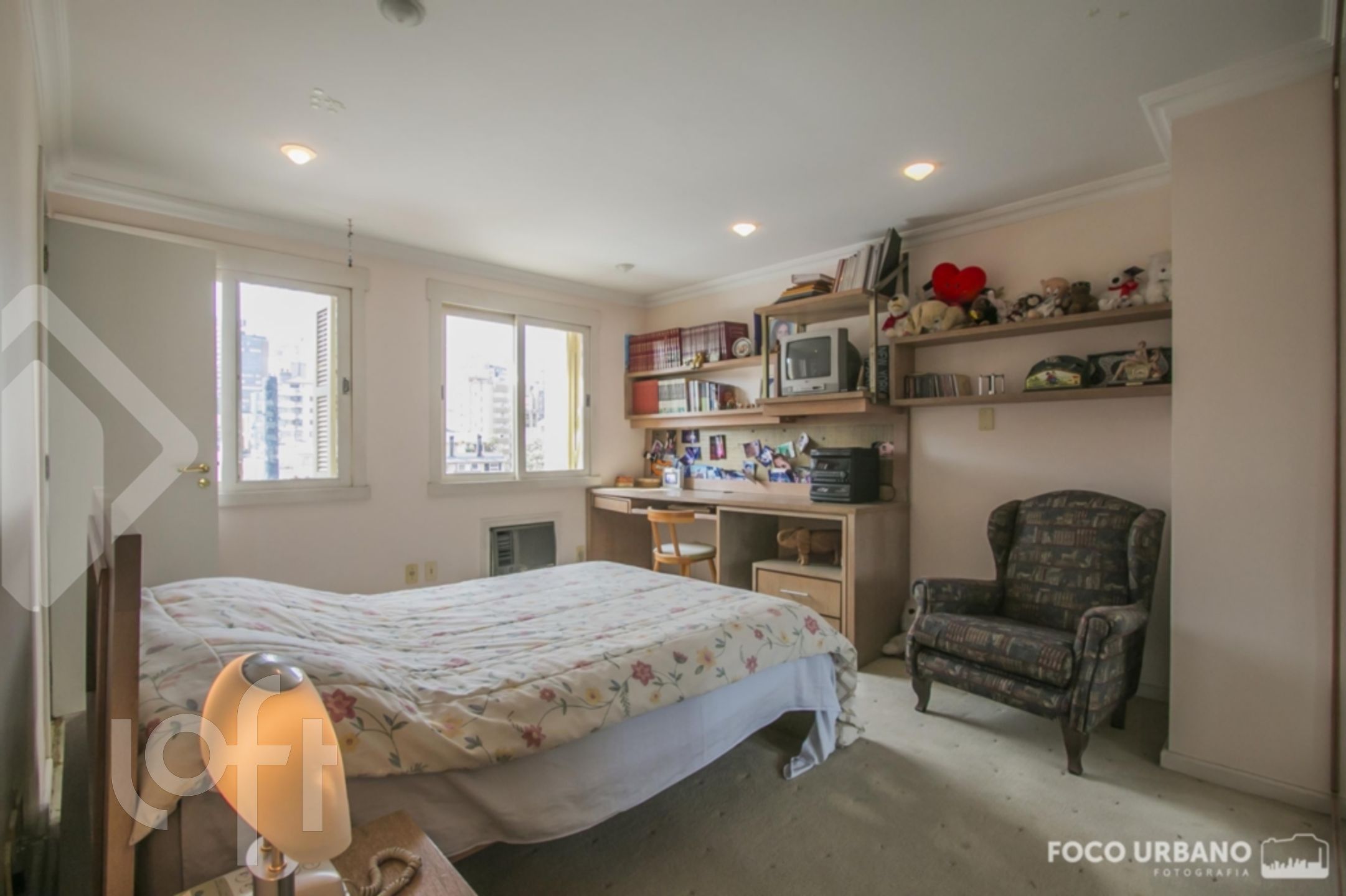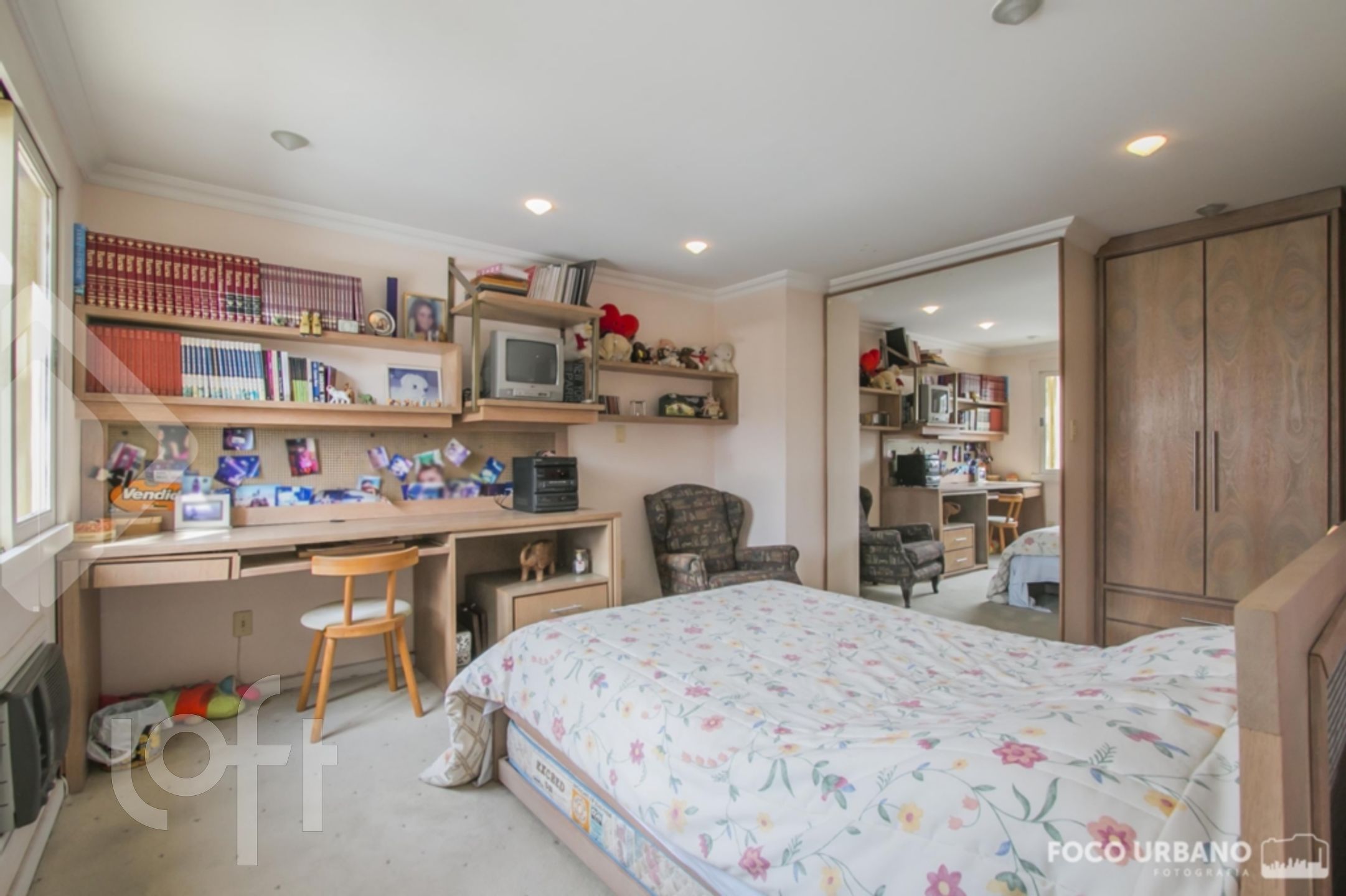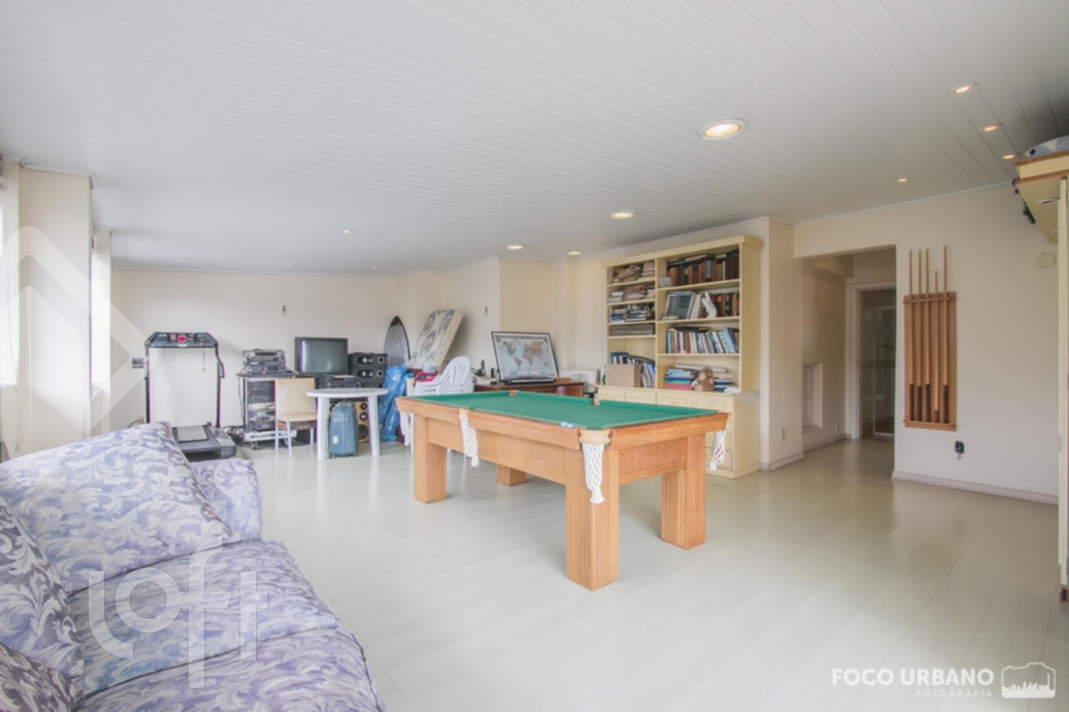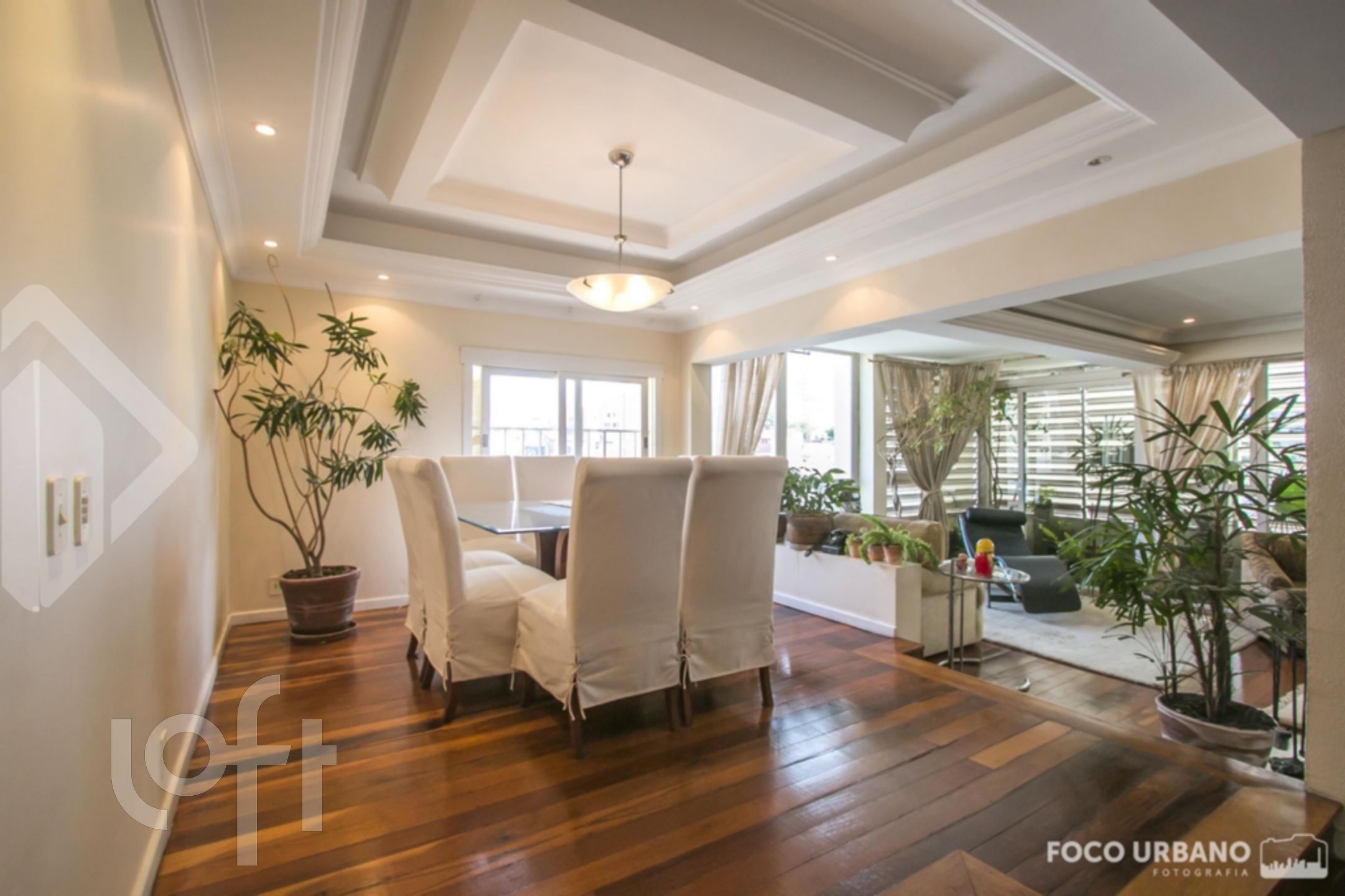 Cobertura com 4 quartos (dormitórios), sendo 4 suítes, área de 529m², 2 vagas de garagem, living amplo em desnível para diversos ambientes, um deles com lareira, jardim de inverno, closet e hidromassagem em uma das suítes, copa cozinha, área de serviço, dependência de empregada, banheiro auxiliar. Parte superior: sala ampla com lareira, churrasqueira, salão de jogos, banho social, amplo terraço, vista.
