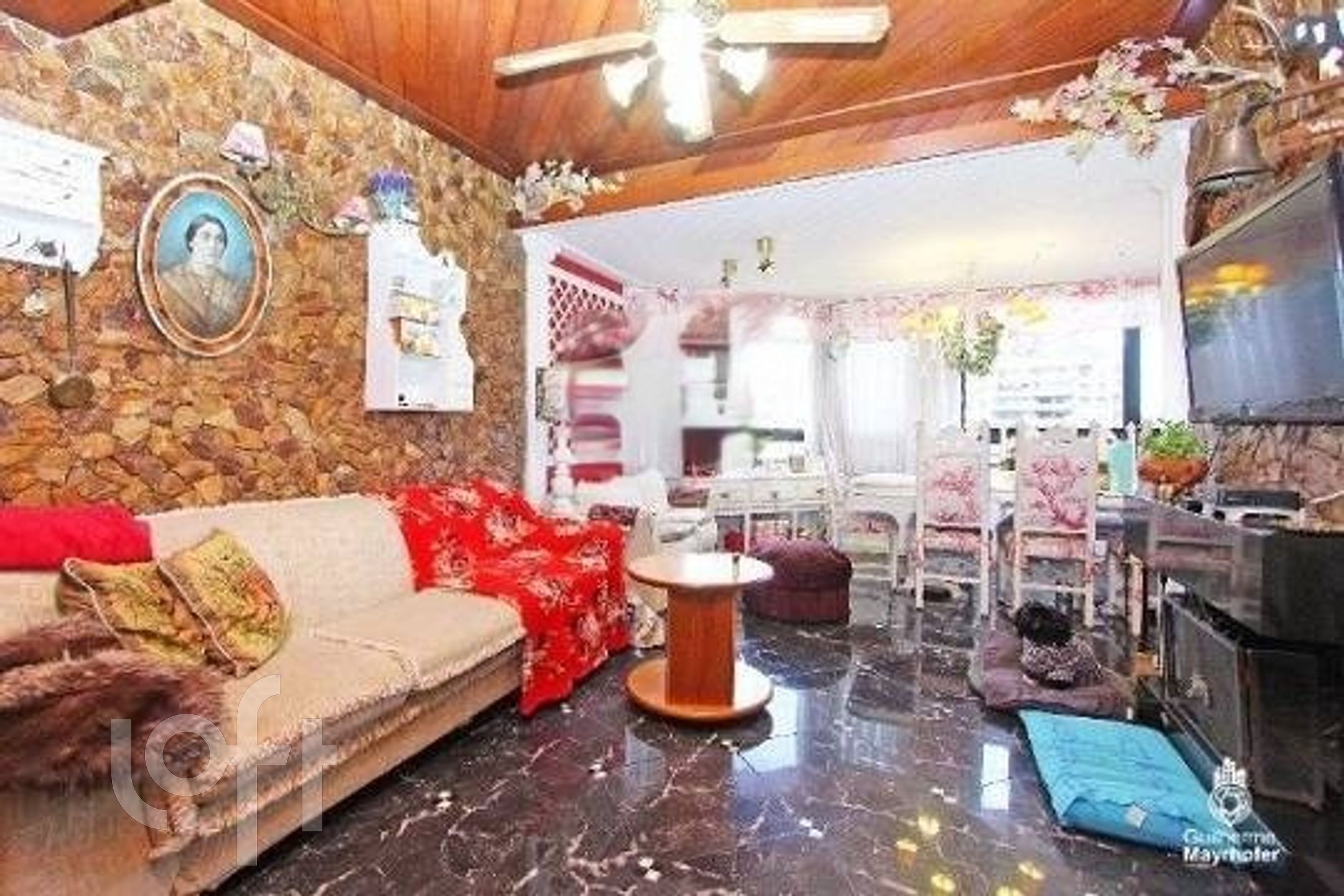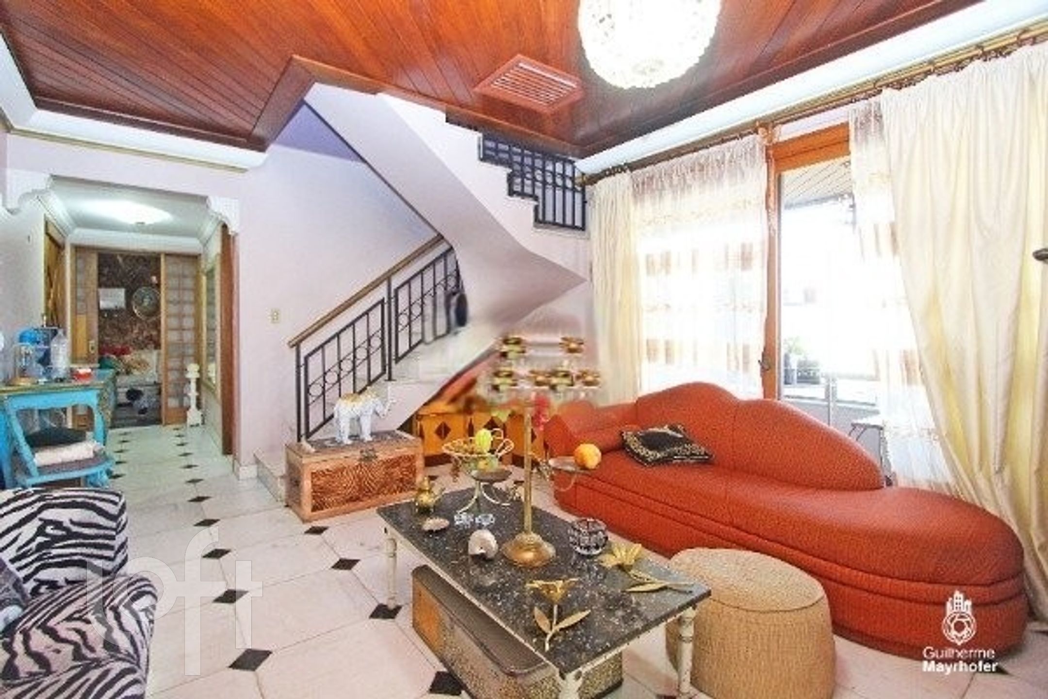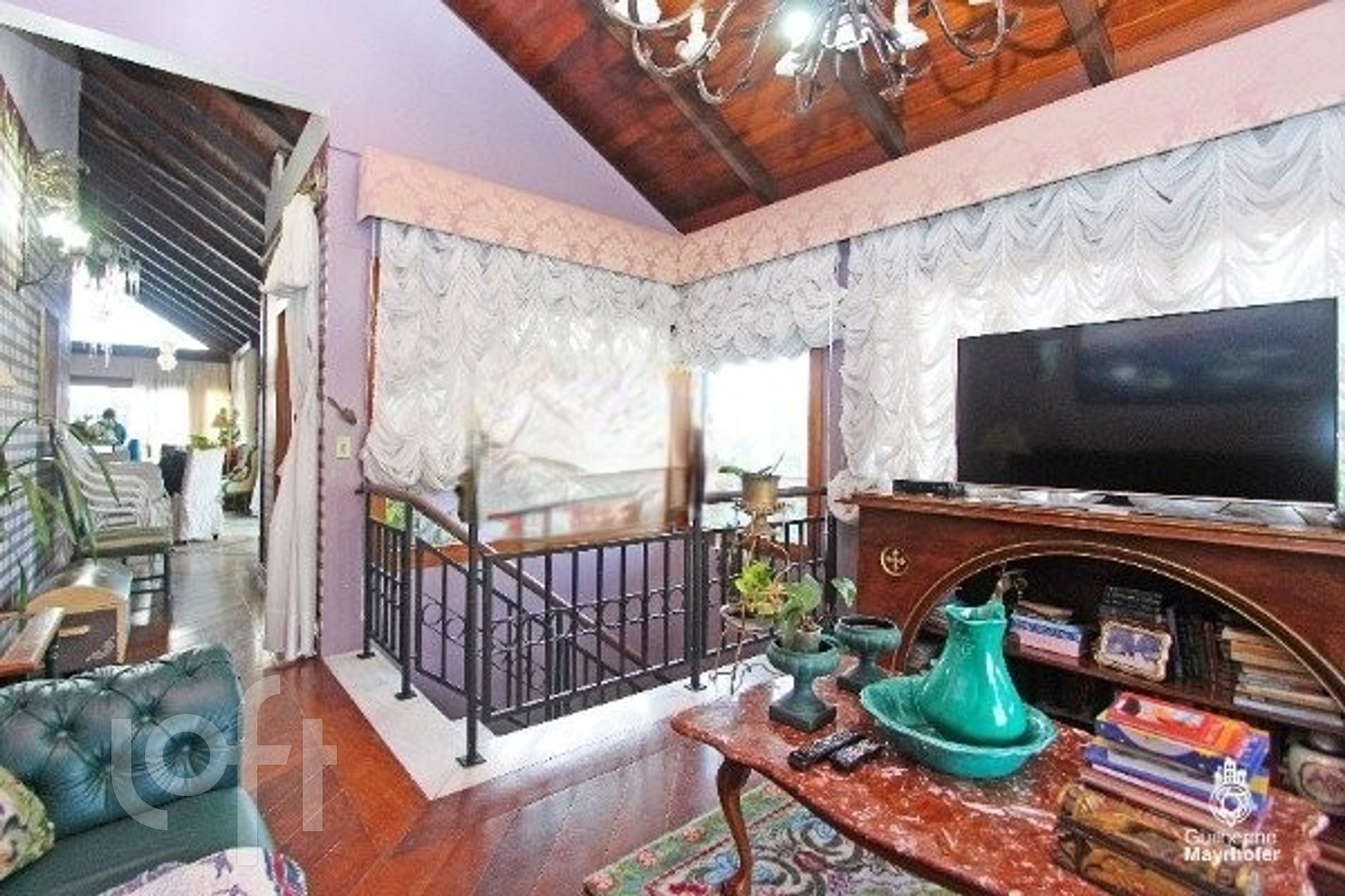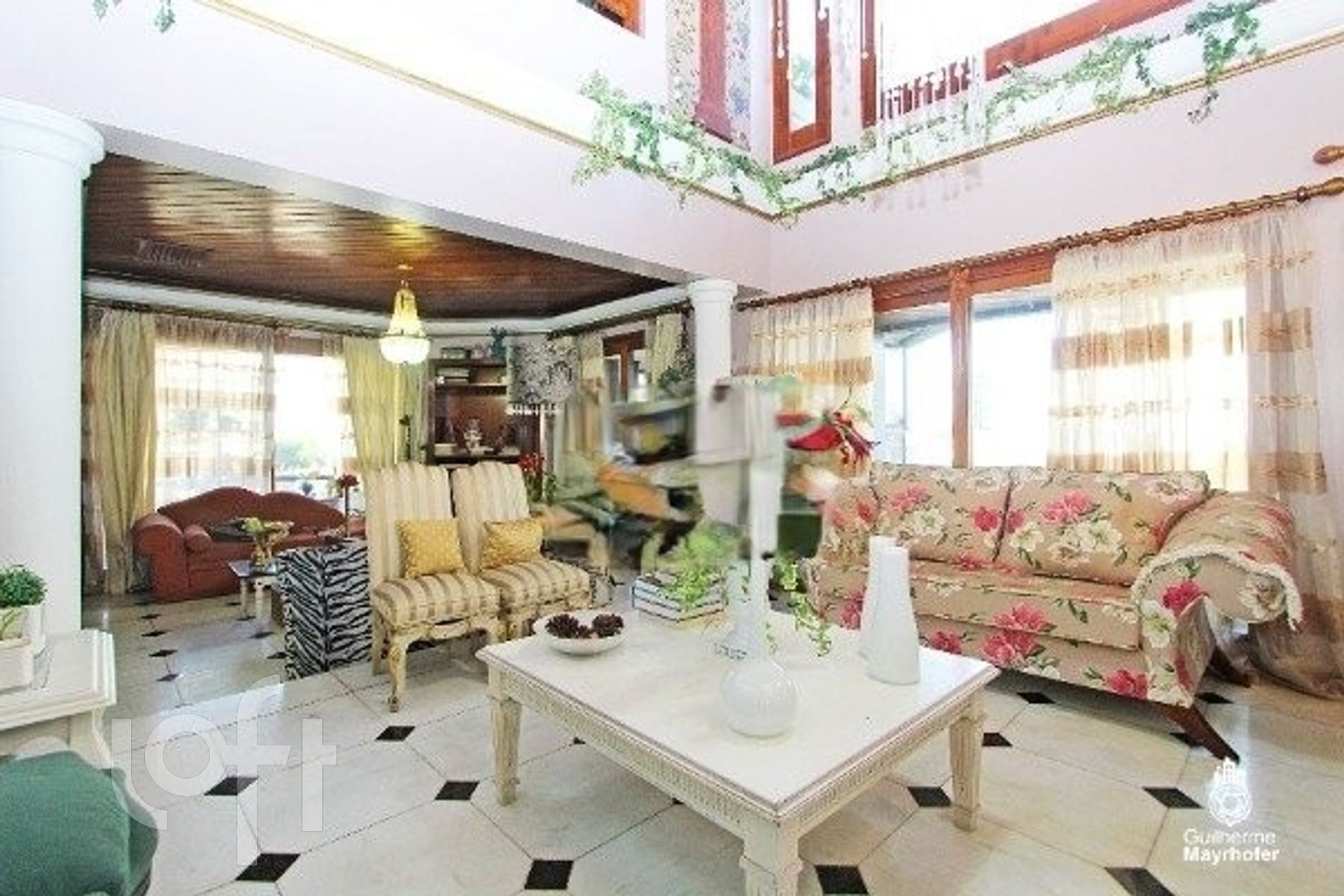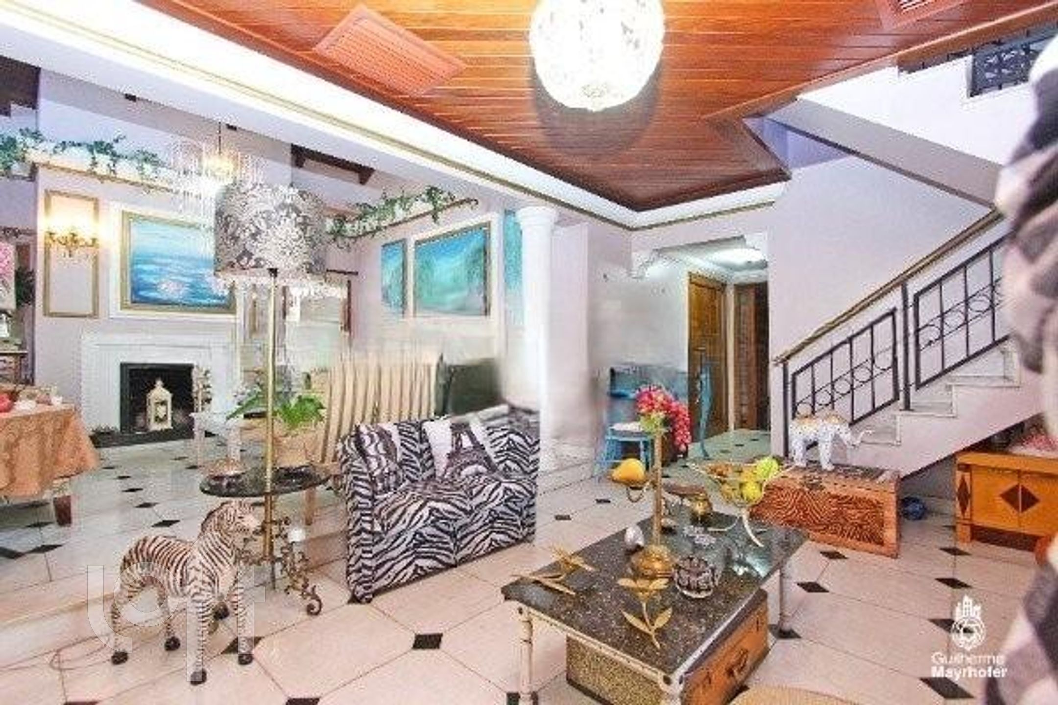 Esta cobertura ocupa um andar completo, oferecendo 550m² úteis (650m² no total) e possui 4 vagas de estacionamento escrituradas (incluindo 2 vagas duplas, totalizando espaço para 6 carros, não contabilizados na área total). O ambiente interno é dividido em um living em desnível para 3 espaços distintos, sala de jantar, sacada para área de estar íntimo, e conta com 3 lareiras.