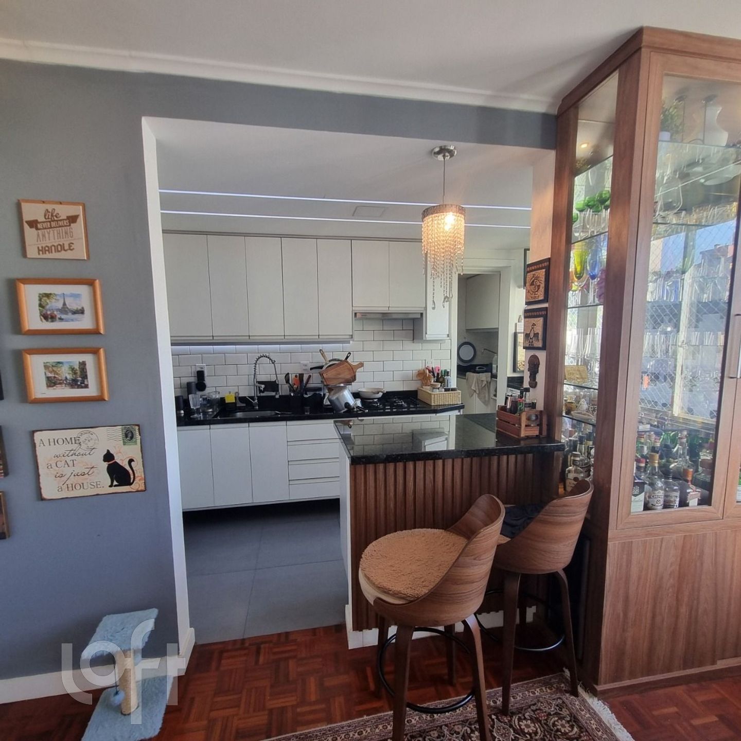 TOTALMENTE REFORMADO, SEMI MOBILIADO, PRONTO PARA MORAR: Sala 2 ambientes com ótima orientação solar, cozinha americana com móveis planejados, lavanderia. Banheiro social com ventilação direta, 2 amplos quartos. Junker instalado, possui aquecimento de água. Ficam todos os móveis feitos sob medida e ar condicionado em todos os cômodos! Totalmente automatizado via comandos ALEXA.