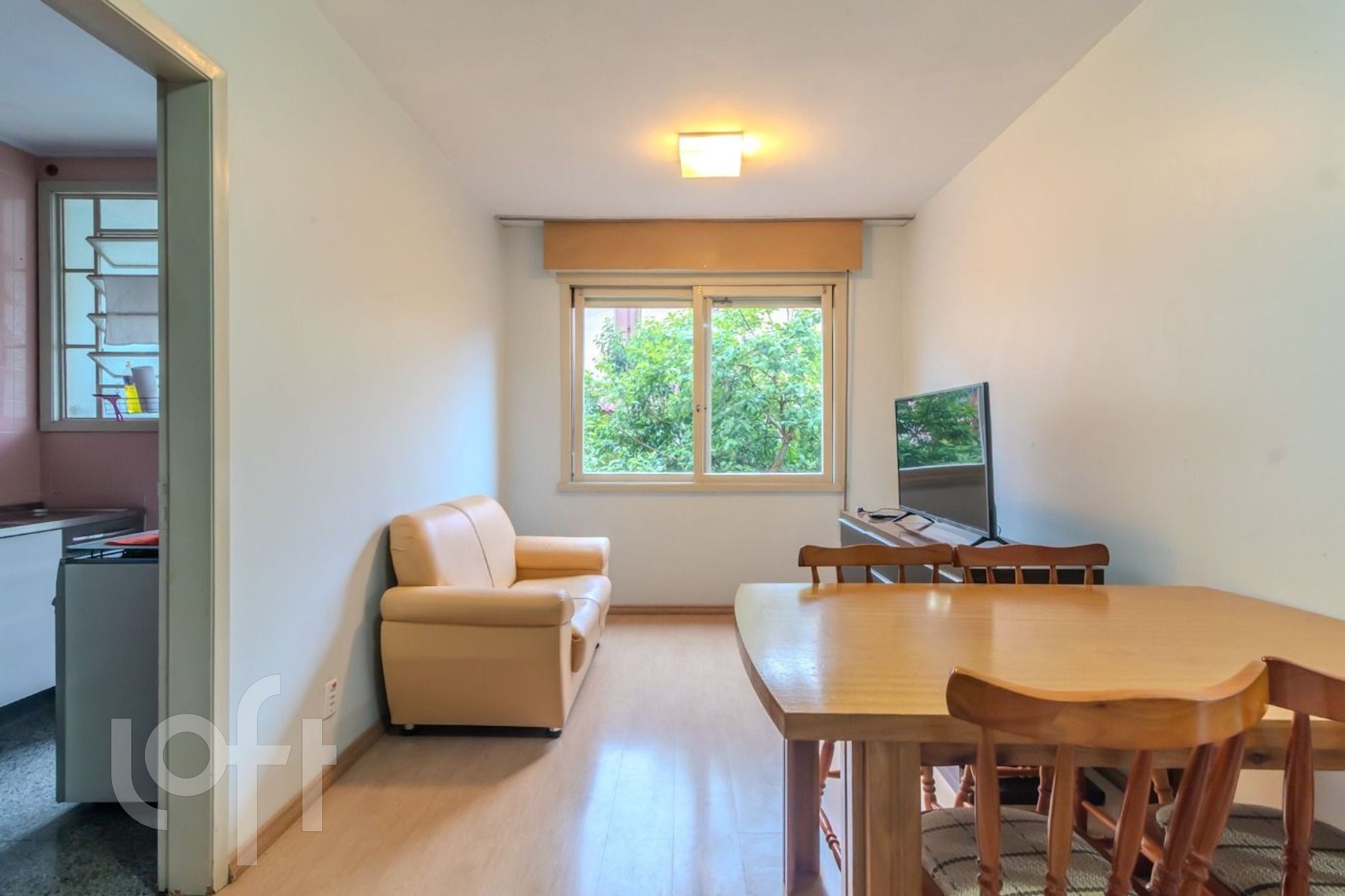 Apartamento com 59 m² de área privativa, 2 dormitórios, 1 banheiro social e área de serviço, em ótimo estado de conservação.