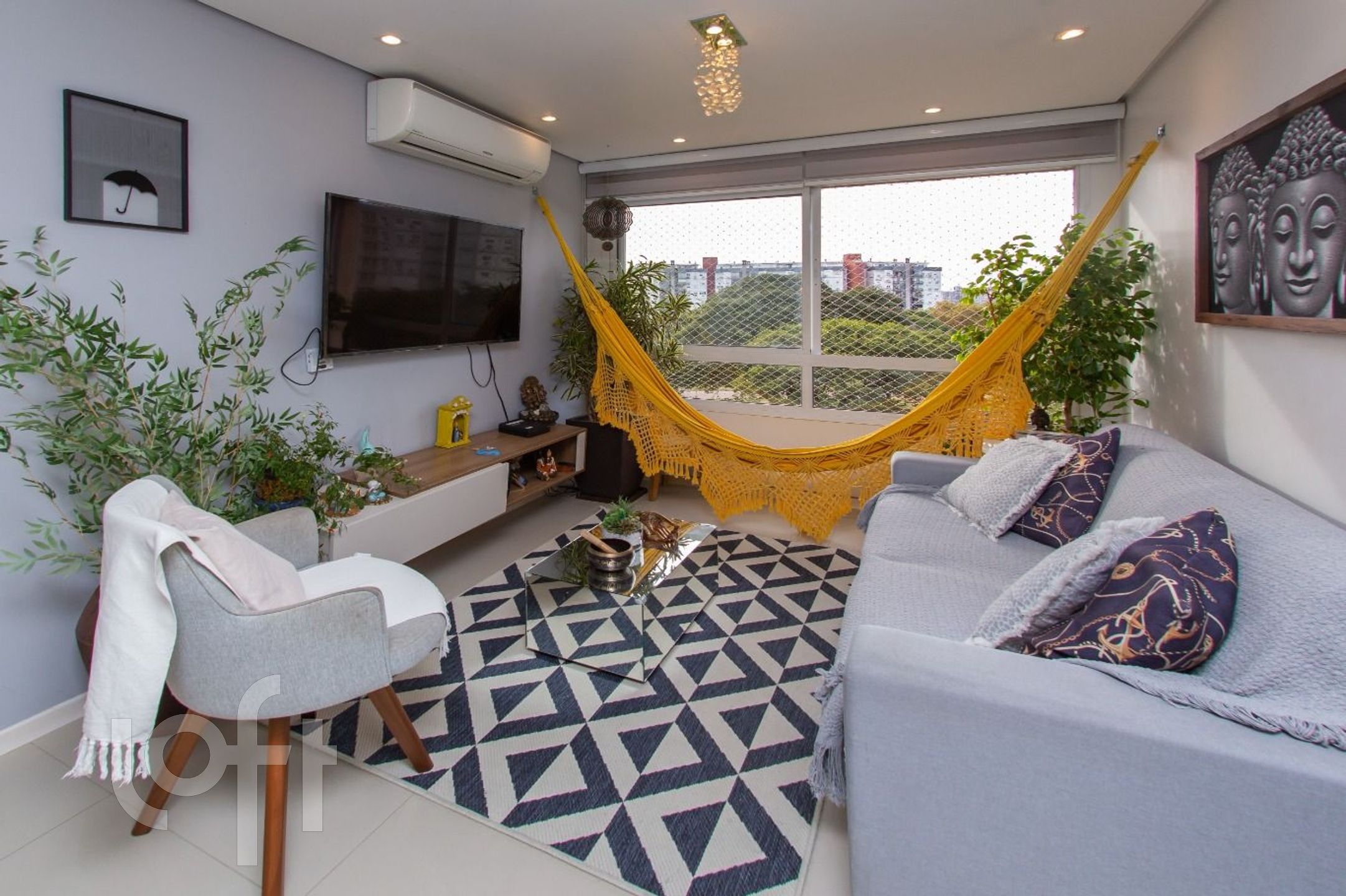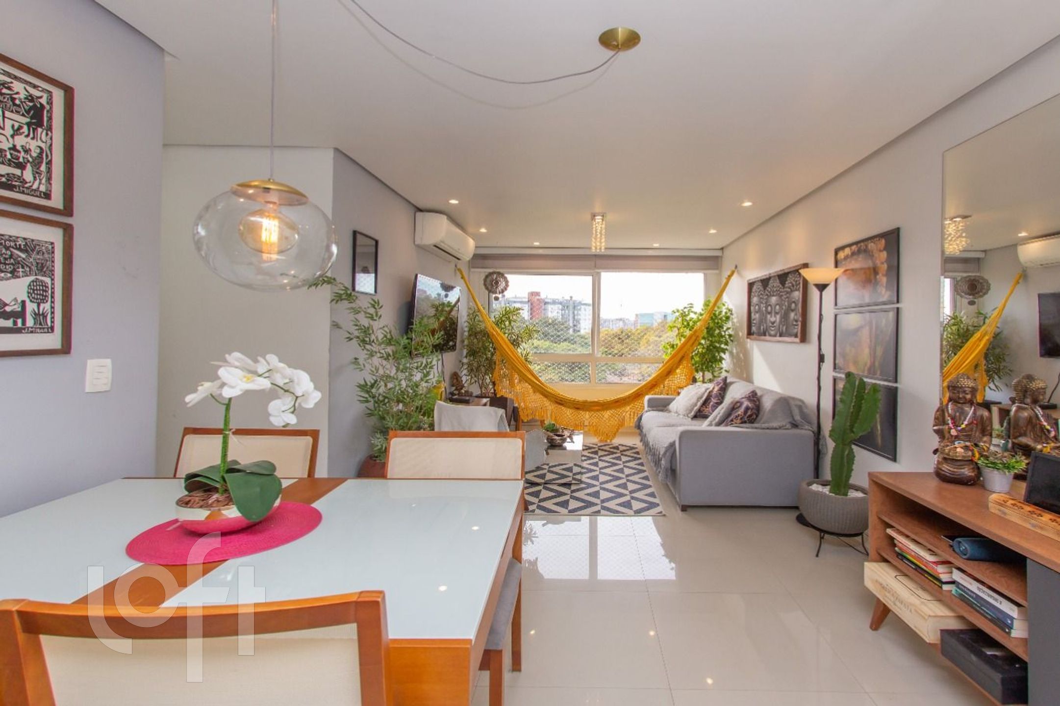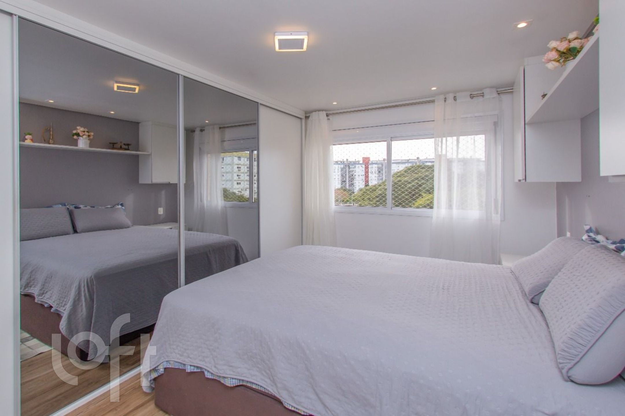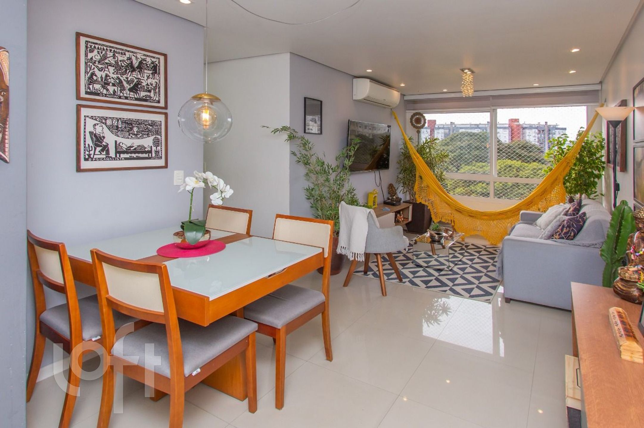 Apartamento todo MOBILIADO, 2 dormitórios, suíte, living para 2 ambientes, arejado e com muita luz natural, sol da manhã, janela ampla pra apreciar a vista arborizada, silencioso, 2 splits, 2 banheiros com ventilação direta, porcelanato em todos ambientes, cozinha americana com churrasqueira. Vista definida.