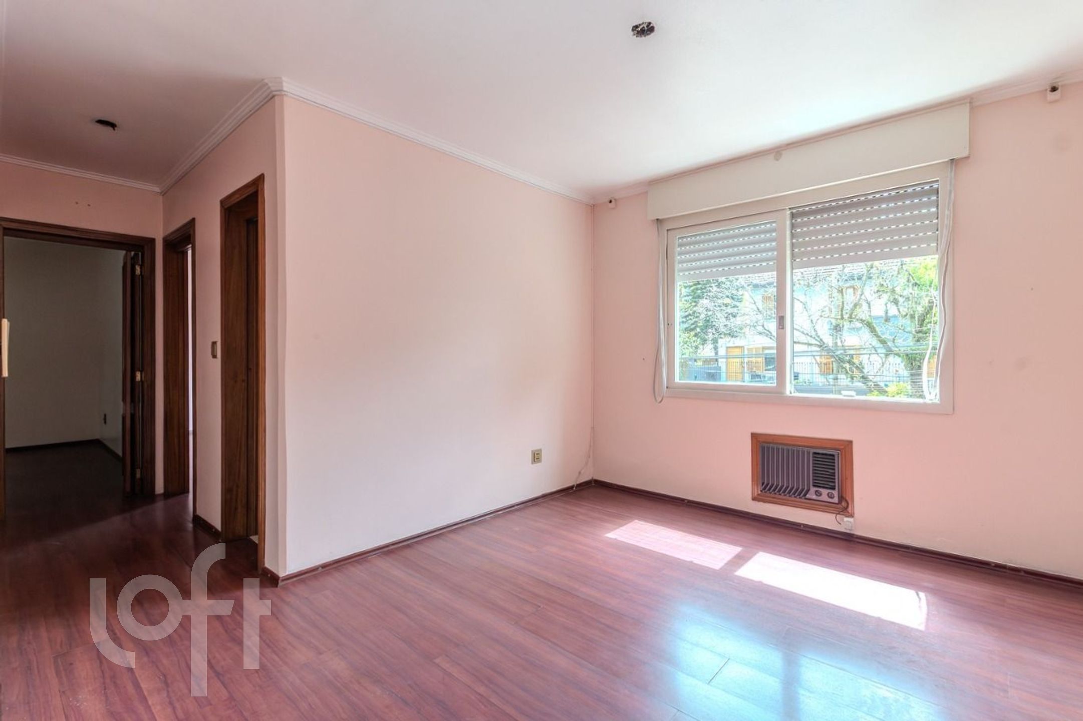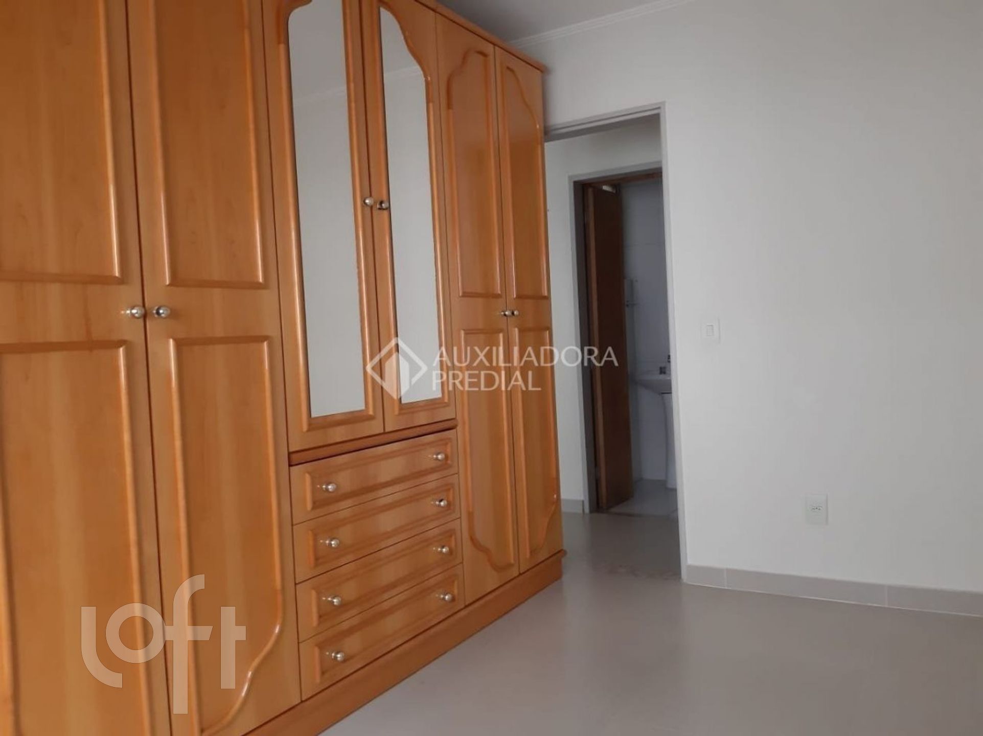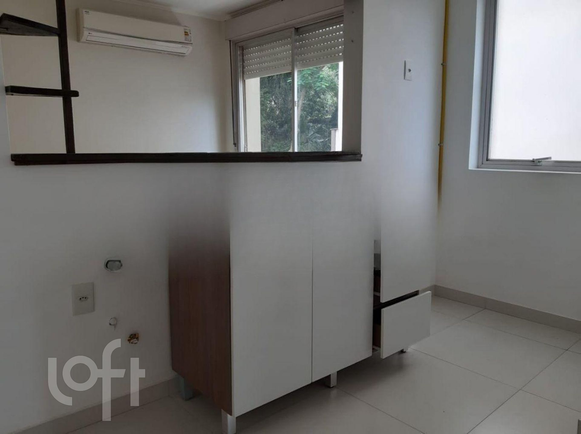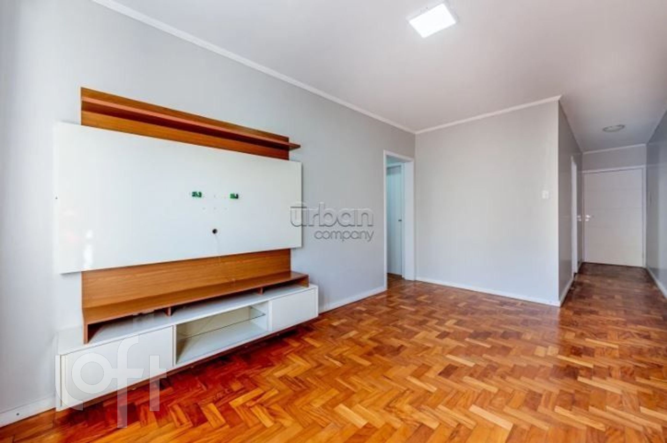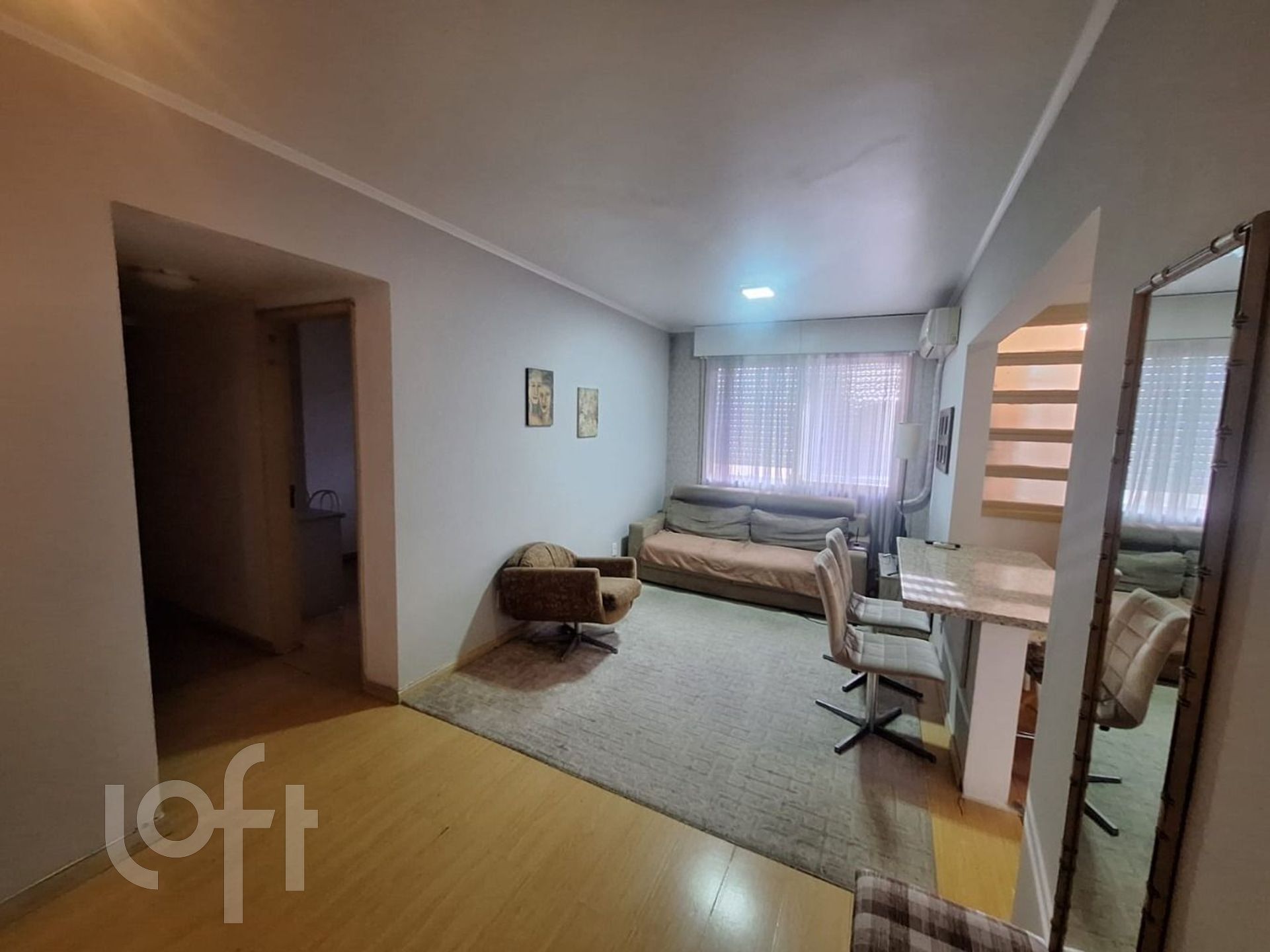 APARTAMENTO com 02 dormitórios (um com guarda-roupas), área privativa de 62,12m² , living 2 ambientes, cozinha com passa-pratos integrando com o living, área de serviço com tanque, um banheiro social com box e um banheiro auxiliar, splits nos dormitórios e no living, aquecedor-de-passagem, piso laminado, 2º andar, fundos. Box para um carro, vinculado ao apartamento.
