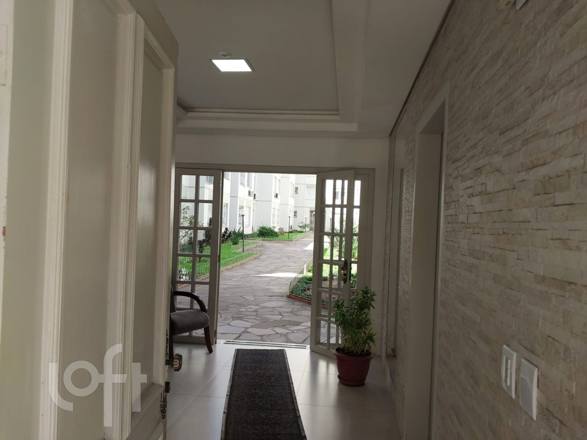 Apartamento térreo no Menino Deus de 2 Dormitórios, living 2 ambientes, cozinha com área de serviço integrada e ótima posição solar. Condomínio com Jardim e Portaria 24hs. 1 vaga por sorteio (tem vaga pra todos).
