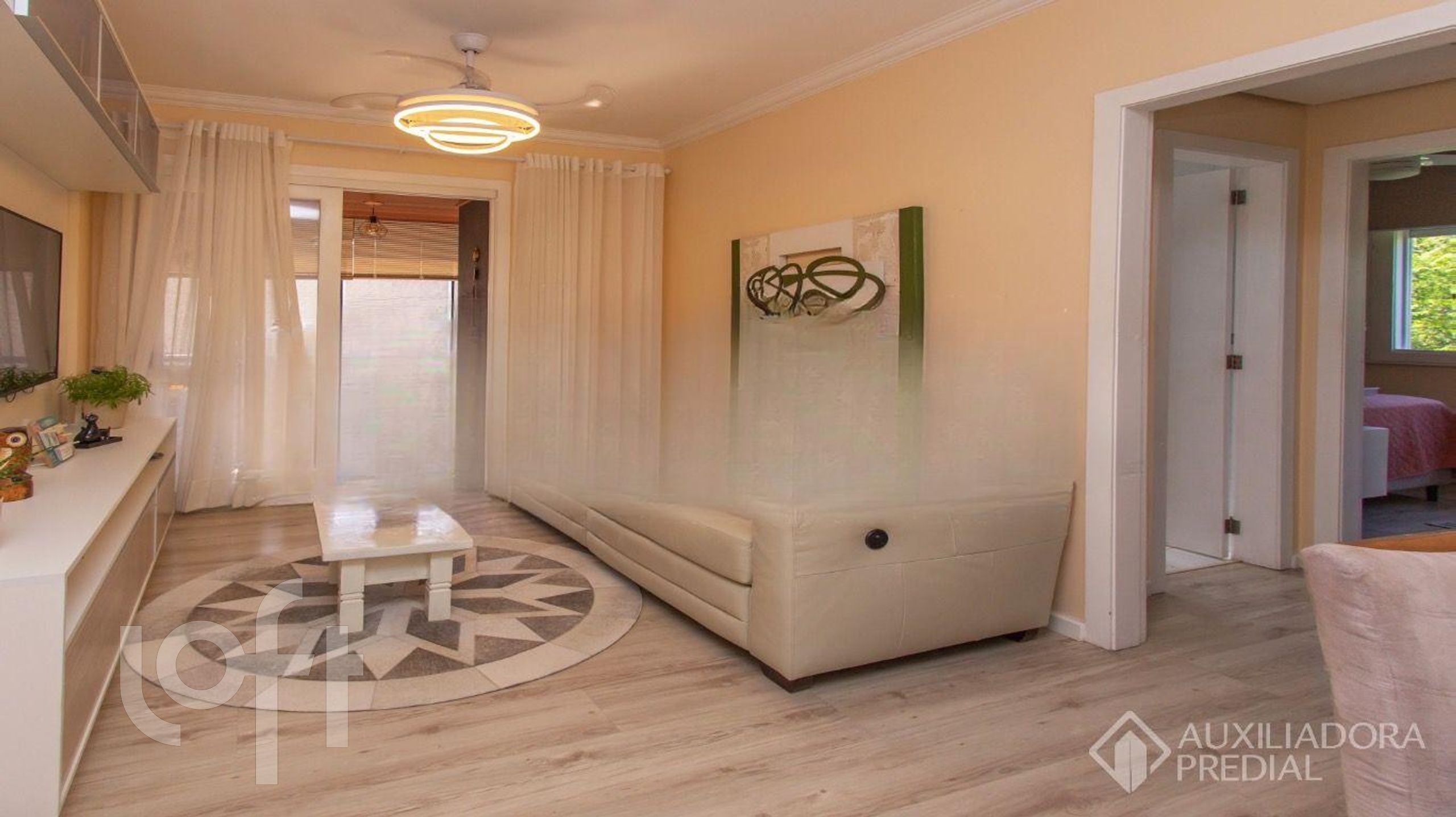 Lindo apartamento com 2 dormitórios, living para dois ambientes, sacada fechada com churrasqueira e banheiro com ventilação direta.