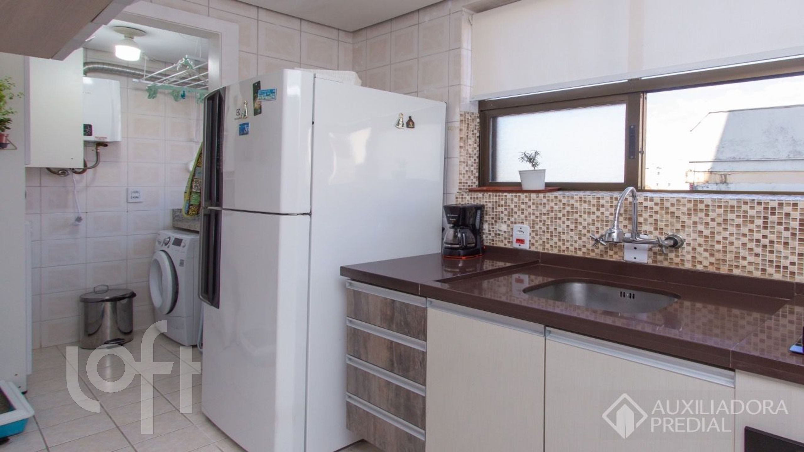 A cozinha é totalmente planejada, área de serviço, bem iluminada, com incidência de sol pela manhã e à tarde.