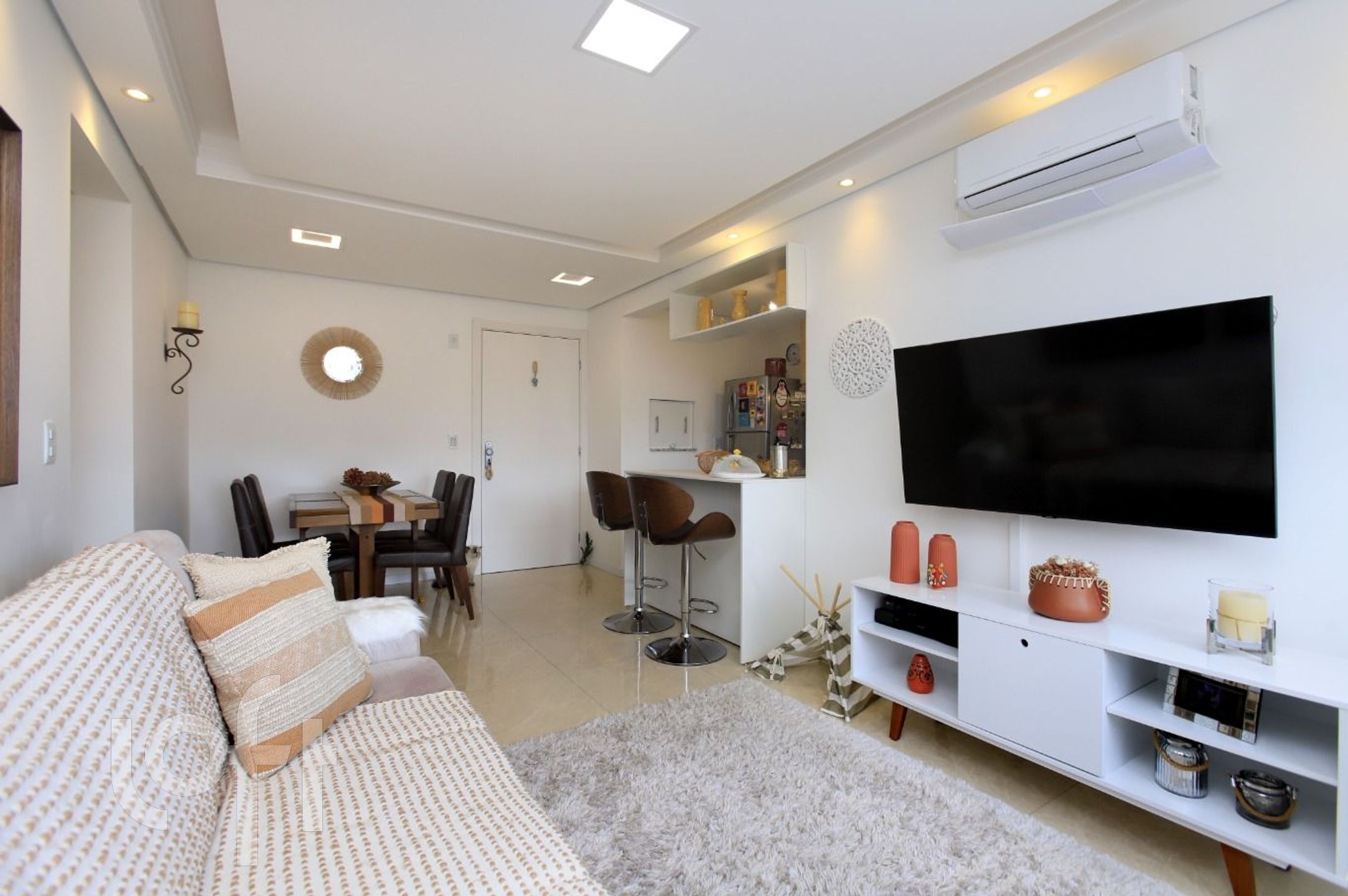 Apartamento a venda semi mobiliado, no bairro São João de 2 quartos sendo 1 suite, sala 2 ambientes com vista ensolarado, rebaixo em gesso, cozinha americana com churrasqueira, tampo em marmore e area de serviço integrada, cirulação, banheiro social com box de vidro, piso em Porcelanado, 65m² de area privativa, área total de 85m², Água e Gás individualizado. 1 Vaga de Garagem Coberta Escriturada.