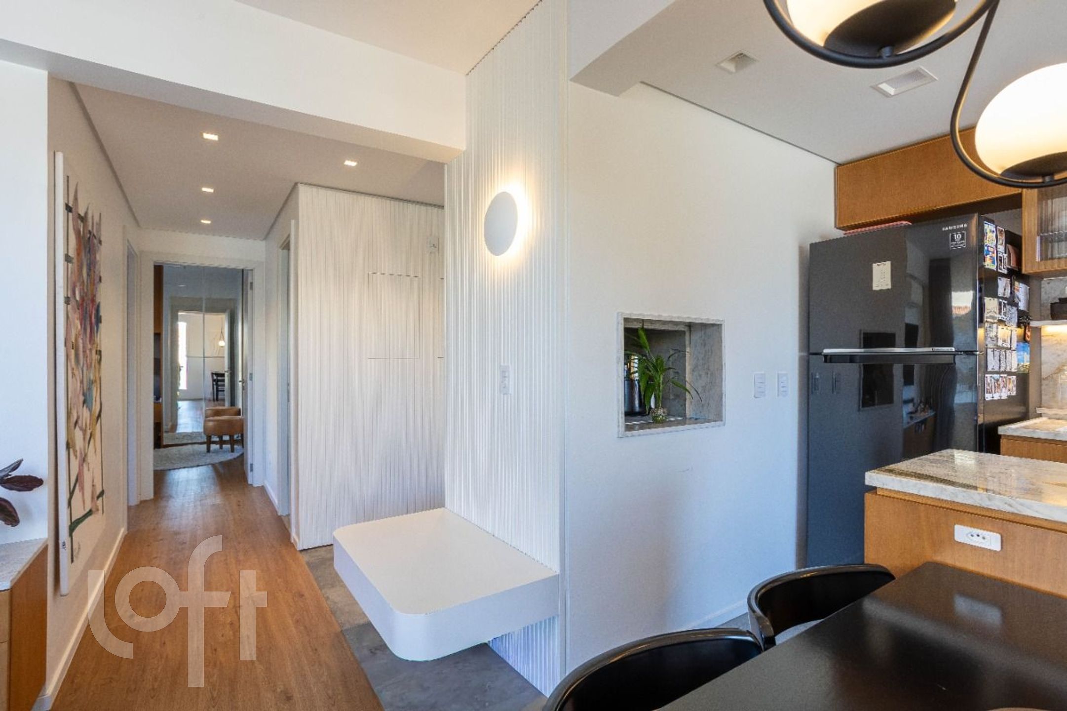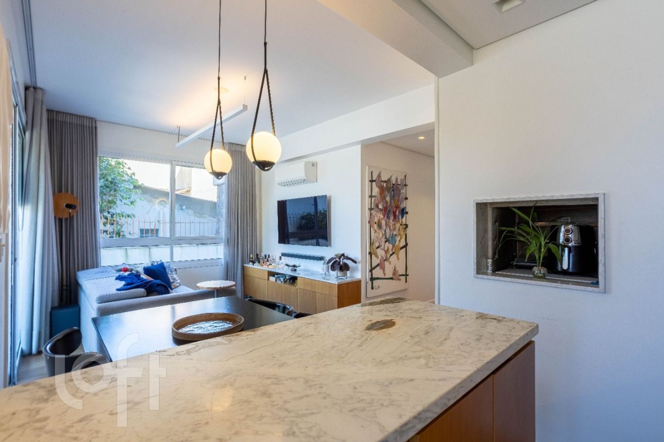 São 67m² privativos, mobiliados e decorados por escritório de arquitetura, oferecendo 2 dormitórios (sendo 1 suíte e 1 escritório), banheiro social, sala de estar e jantar integradas, cozinha equipada com churrasqueira e lavanderia.