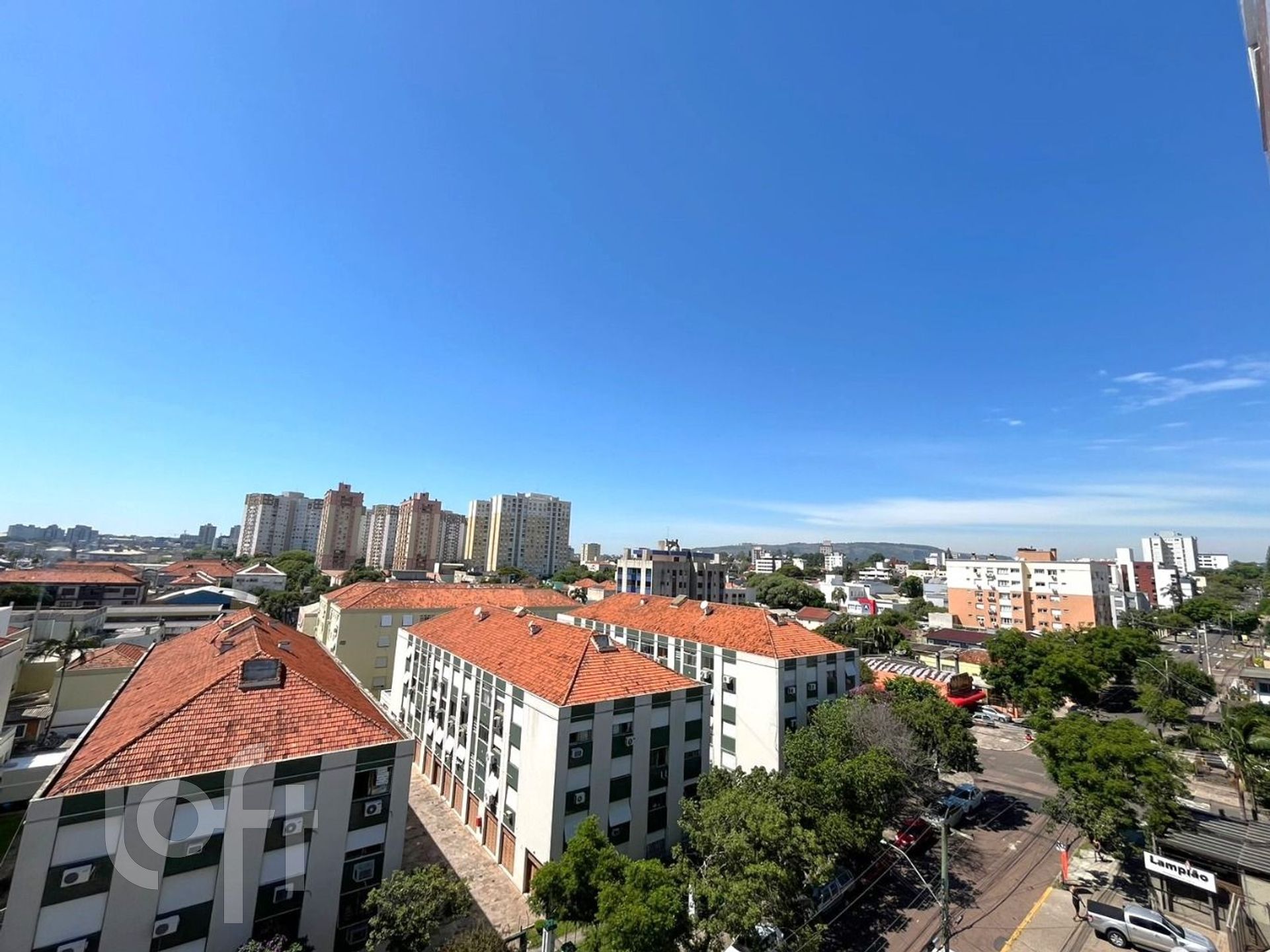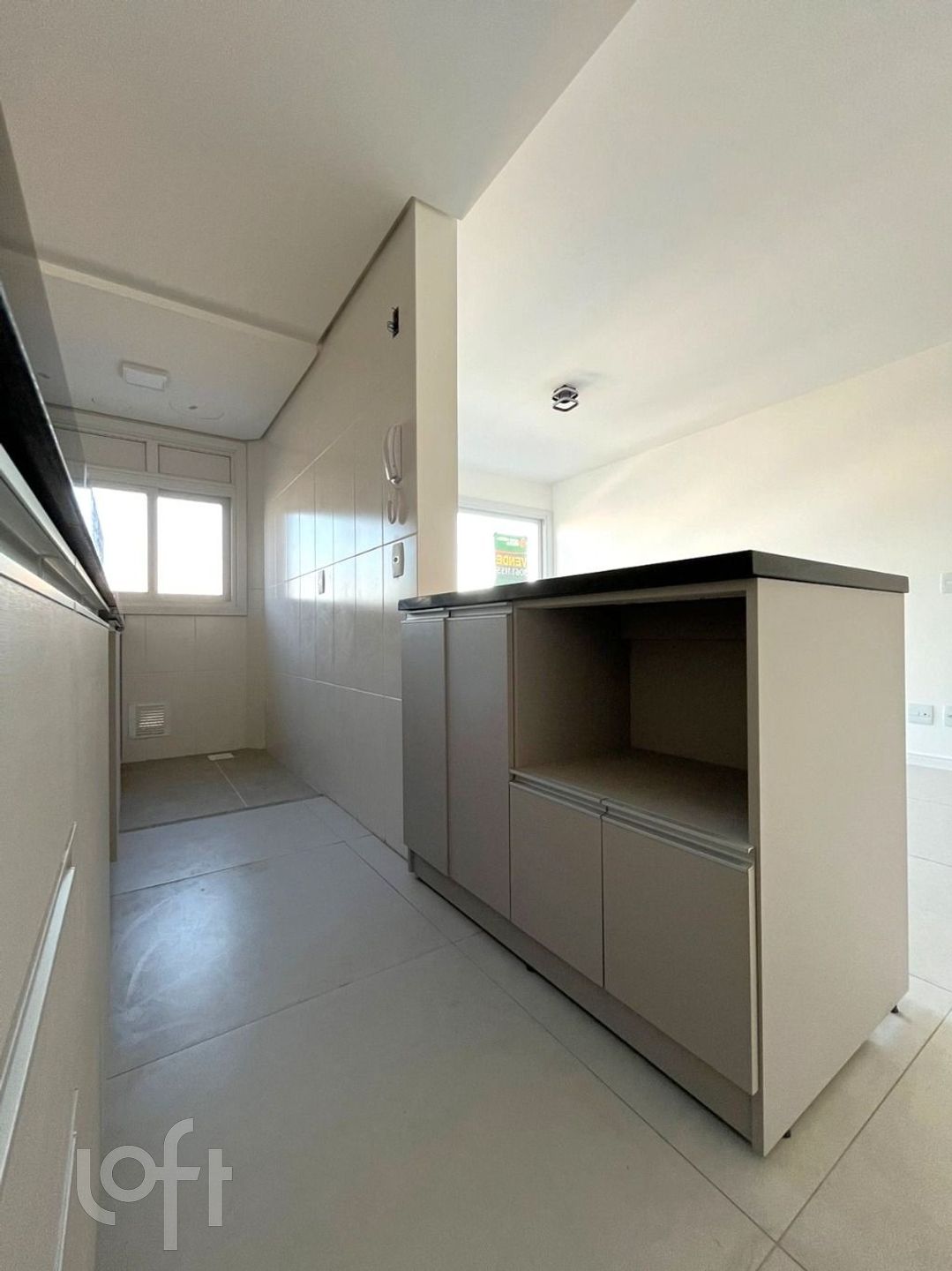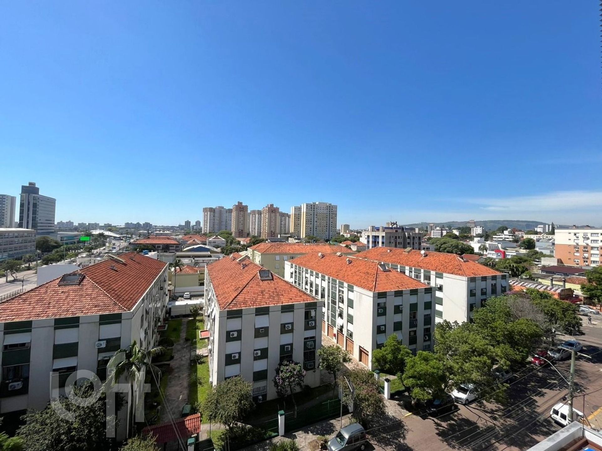 Apartamento com 2 quartos, sendo 1 suíte, banheiro social, área de serviço, churrasqueira, vista panorâmica e vaga de garagem. O imóvel possui aberturas em PVC, gás central, janela grande.