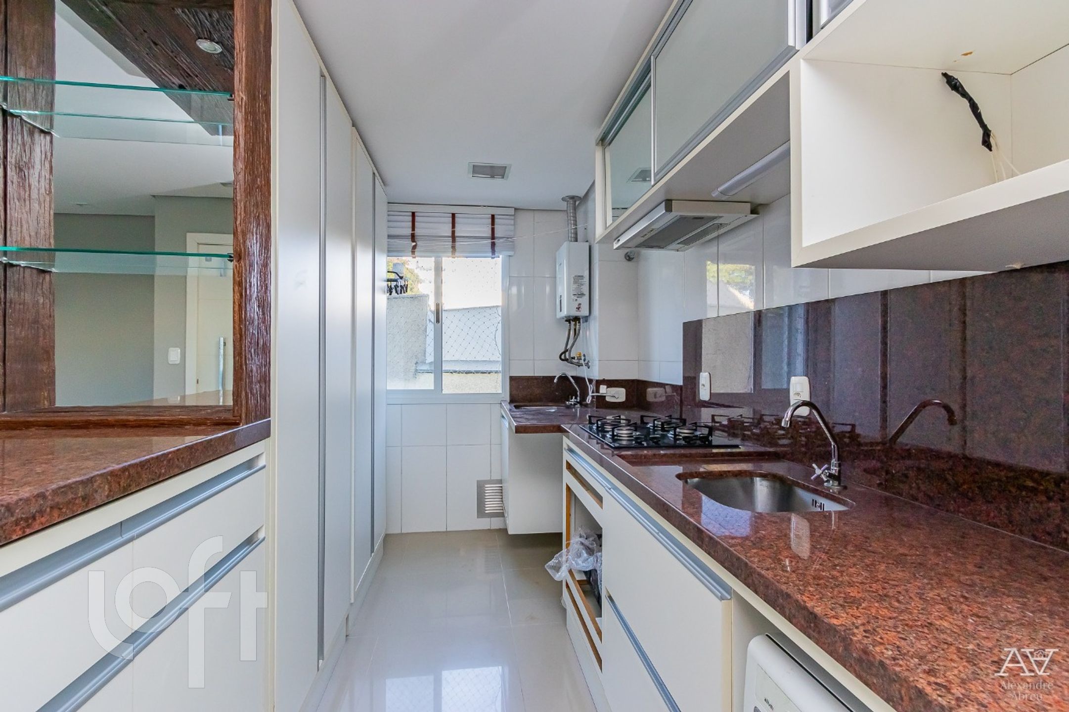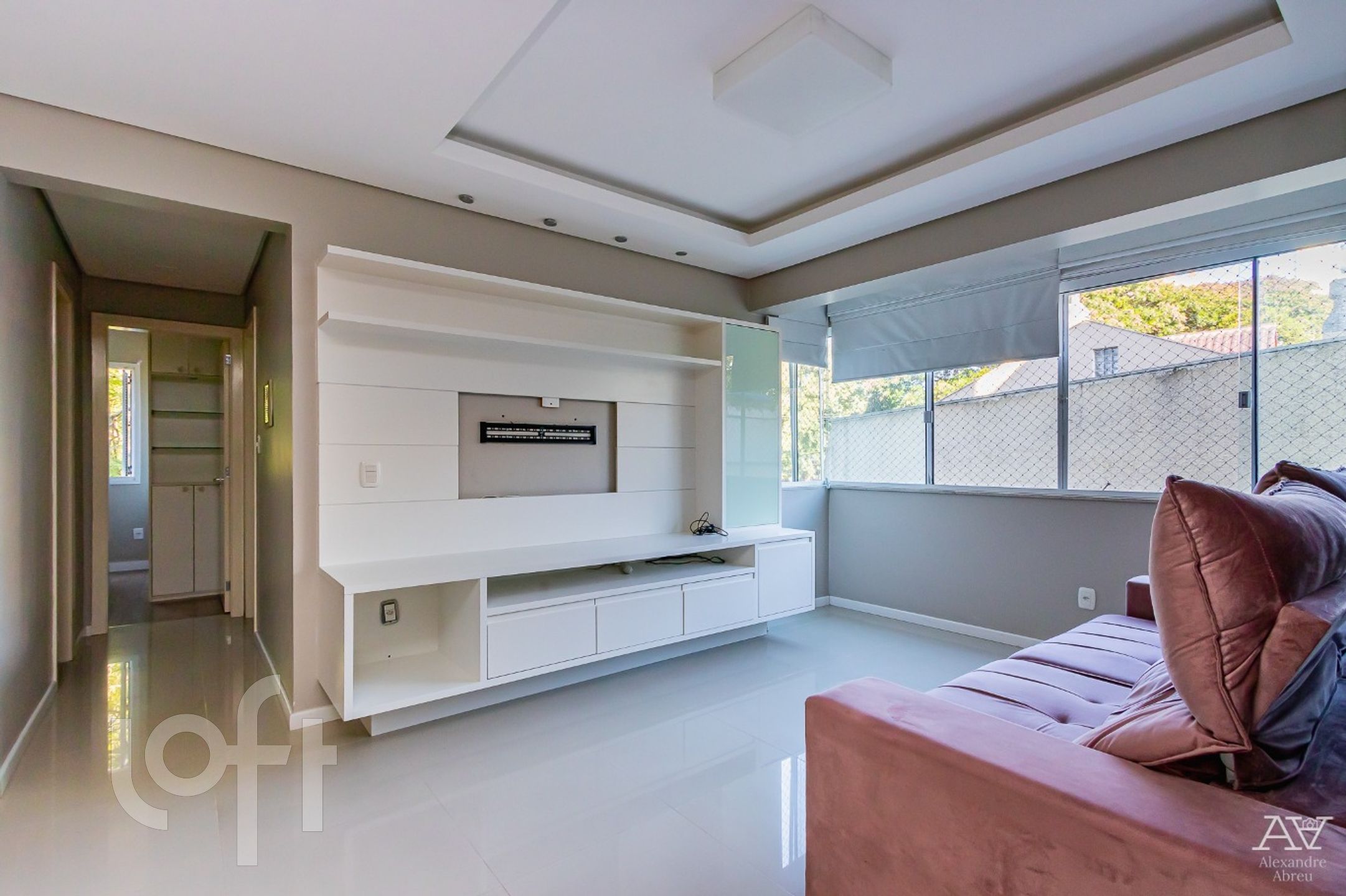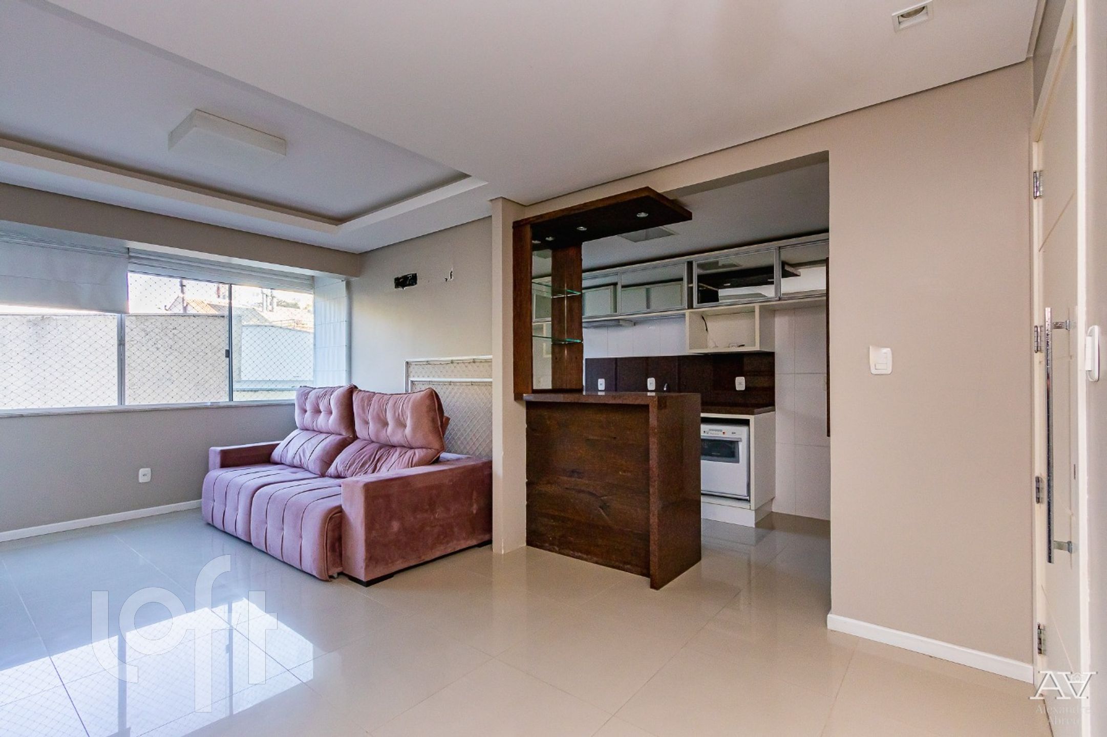 Impecável apartamento de 2 dormitórios de frente, semi mobiliado com armários, living 2 ambientes com piso porcelanato, cozinha americana mobiliada, com churrasqueira, área de serviço, água quente, em frente ao jardim botânico.
