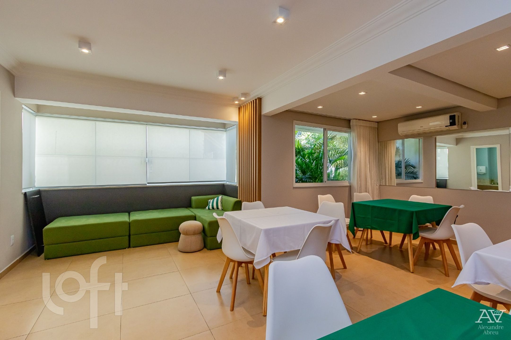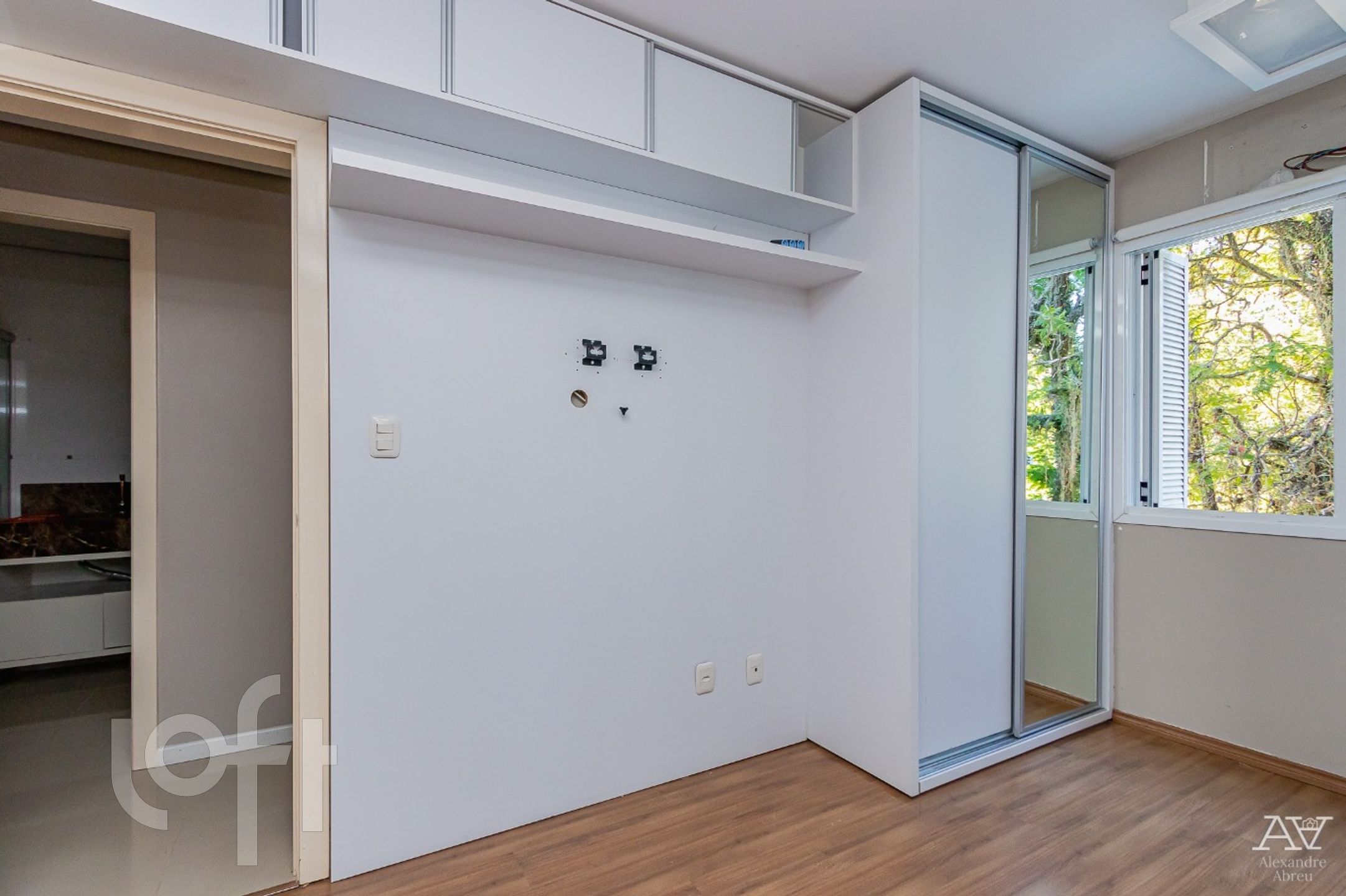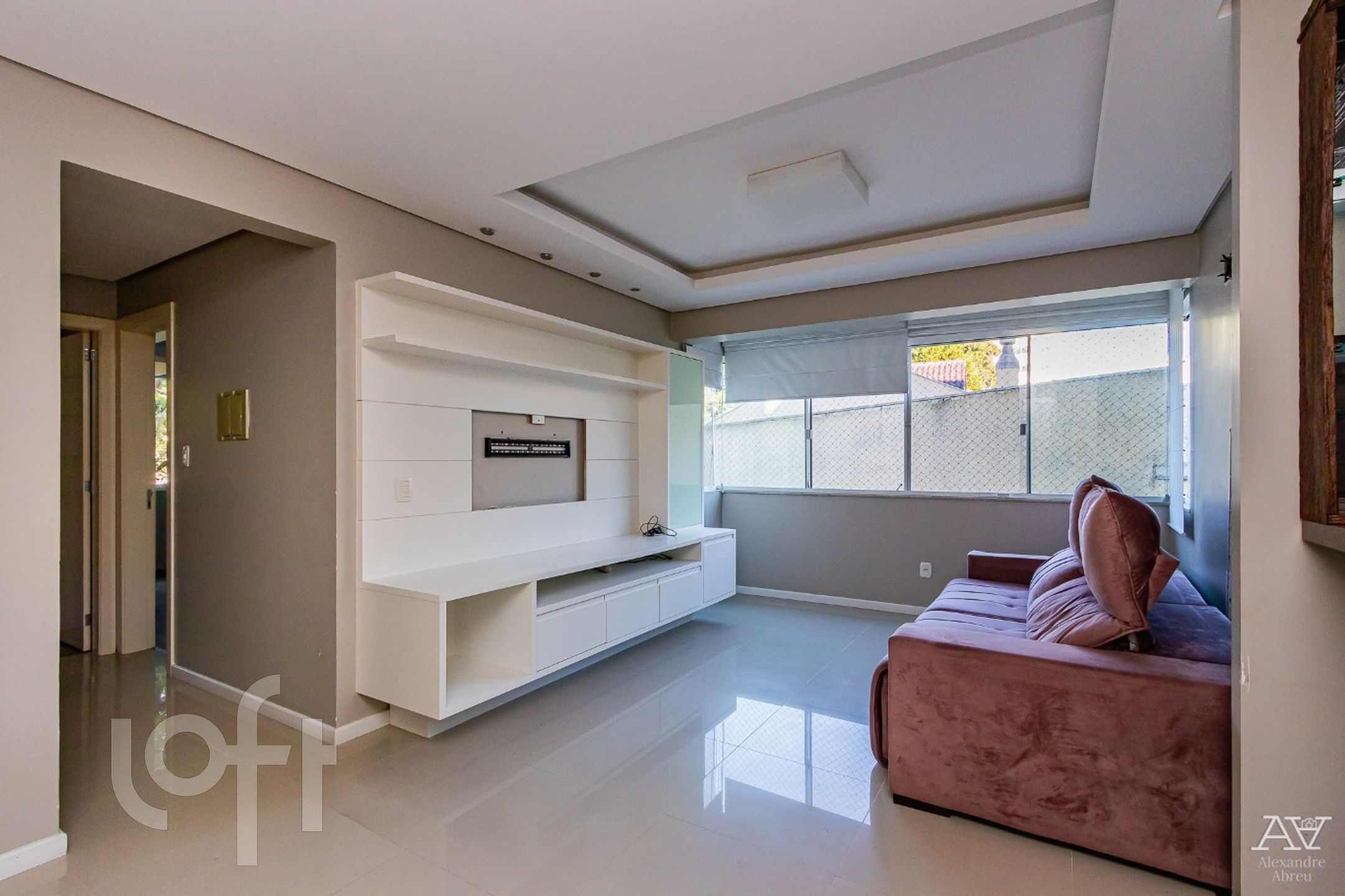 Impecável apartamento de 2 dormitórios de frente, semi mobiliado com armários, living 2 ambientes com piso porcelanato, cozinha americana mobiliada, com churrasqueira, área de serviço, água quente, em frente ao jardim botânico.