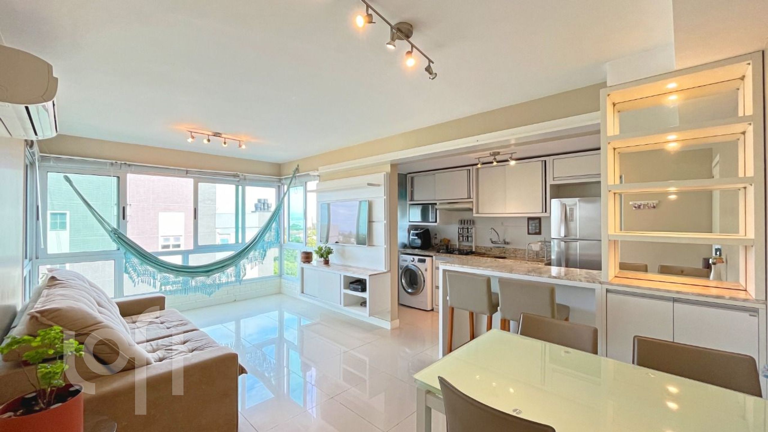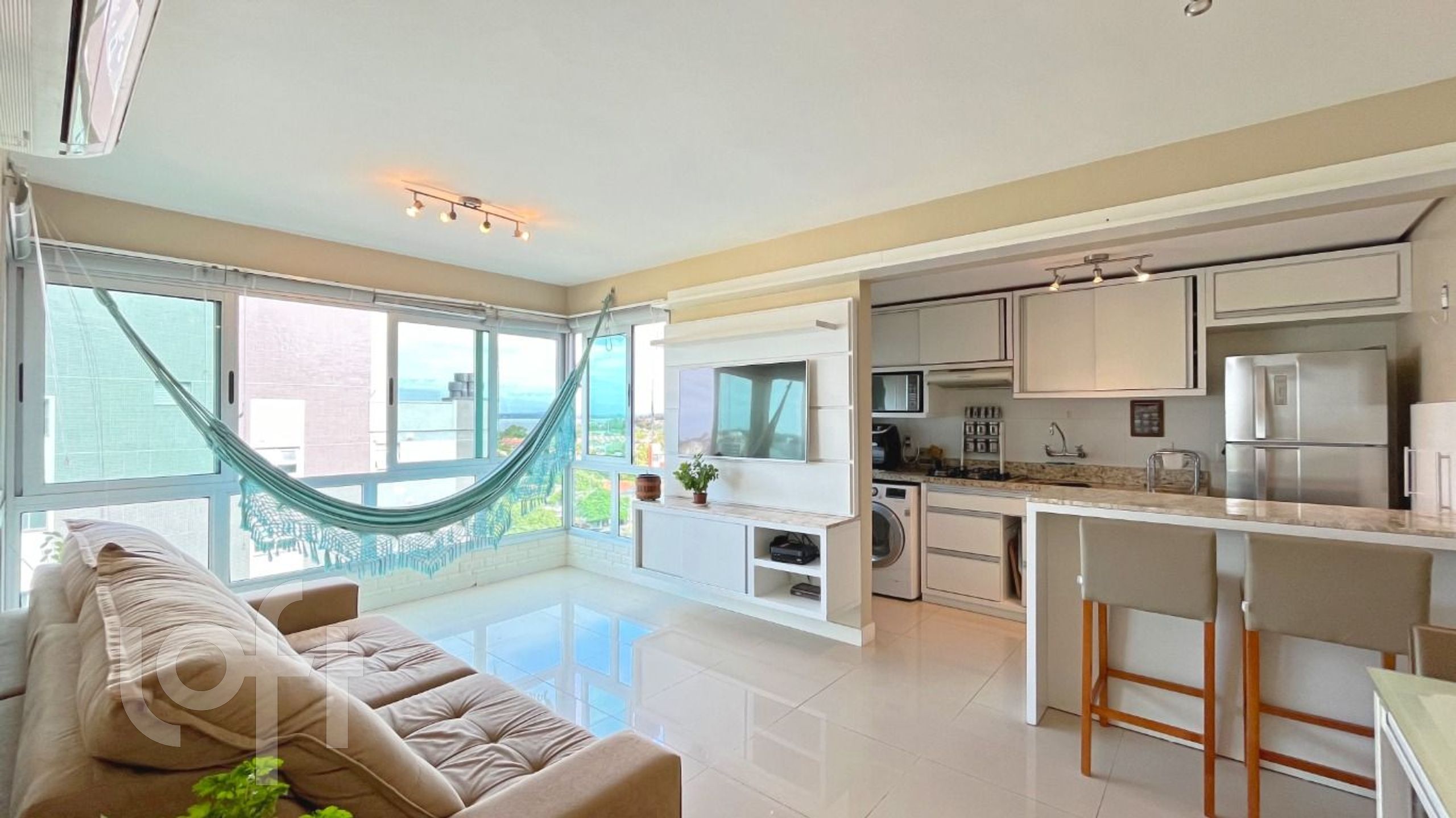 Aconchegante apartamento no bairro Tristeza, em Porto Alegre. Com 68,61 m² de área privativa, andar alto, com 2 quartos sendo 1 suíte, amplo living com vista para o Guaíba, cozinha integrada com churrasqueira, área de serviço separada, banheiro social e 1 vaga de garagem coberta e escriturada.