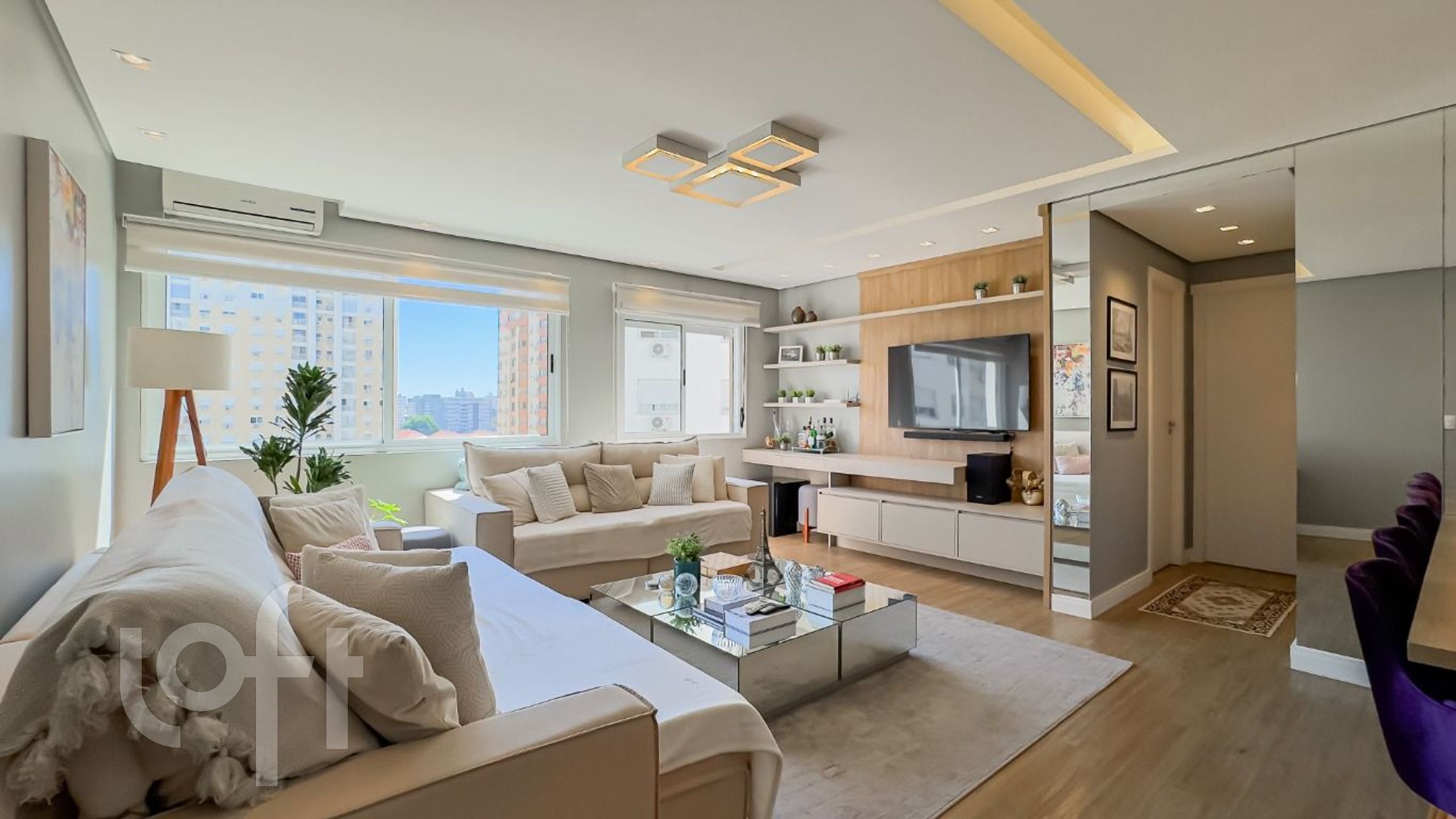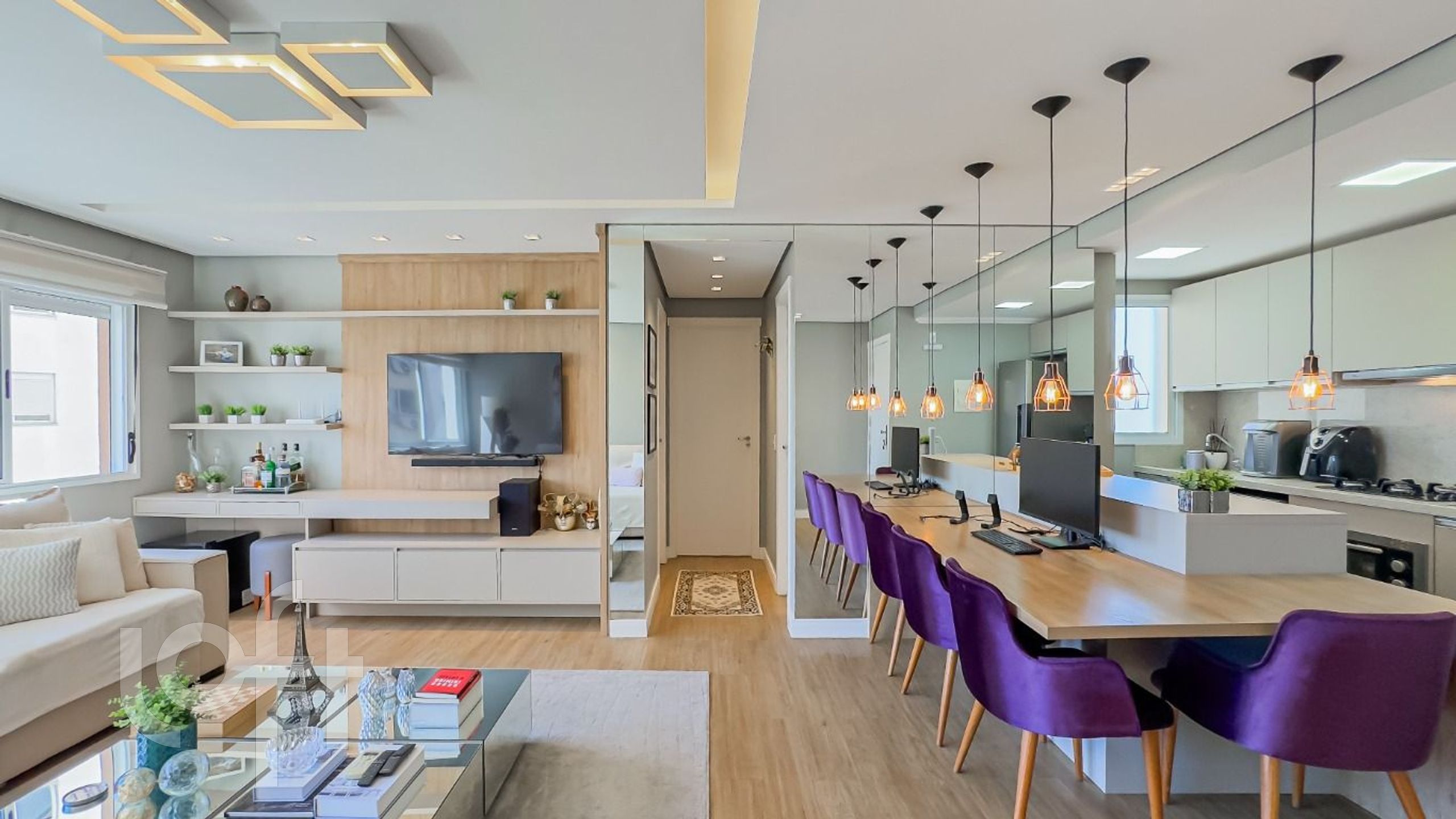 O living ampliado foi criado com a transformação do terceiro dormitório, resultando em um espaço ainda mais amplo e iluminado. A cozinha e os banheiros foram planejados para otimizar o uso, e os móveis planejados da cozinha, banheiro e suíte permanecem no imóvel, agregando ainda mais praticidade ao seu dia a dia.