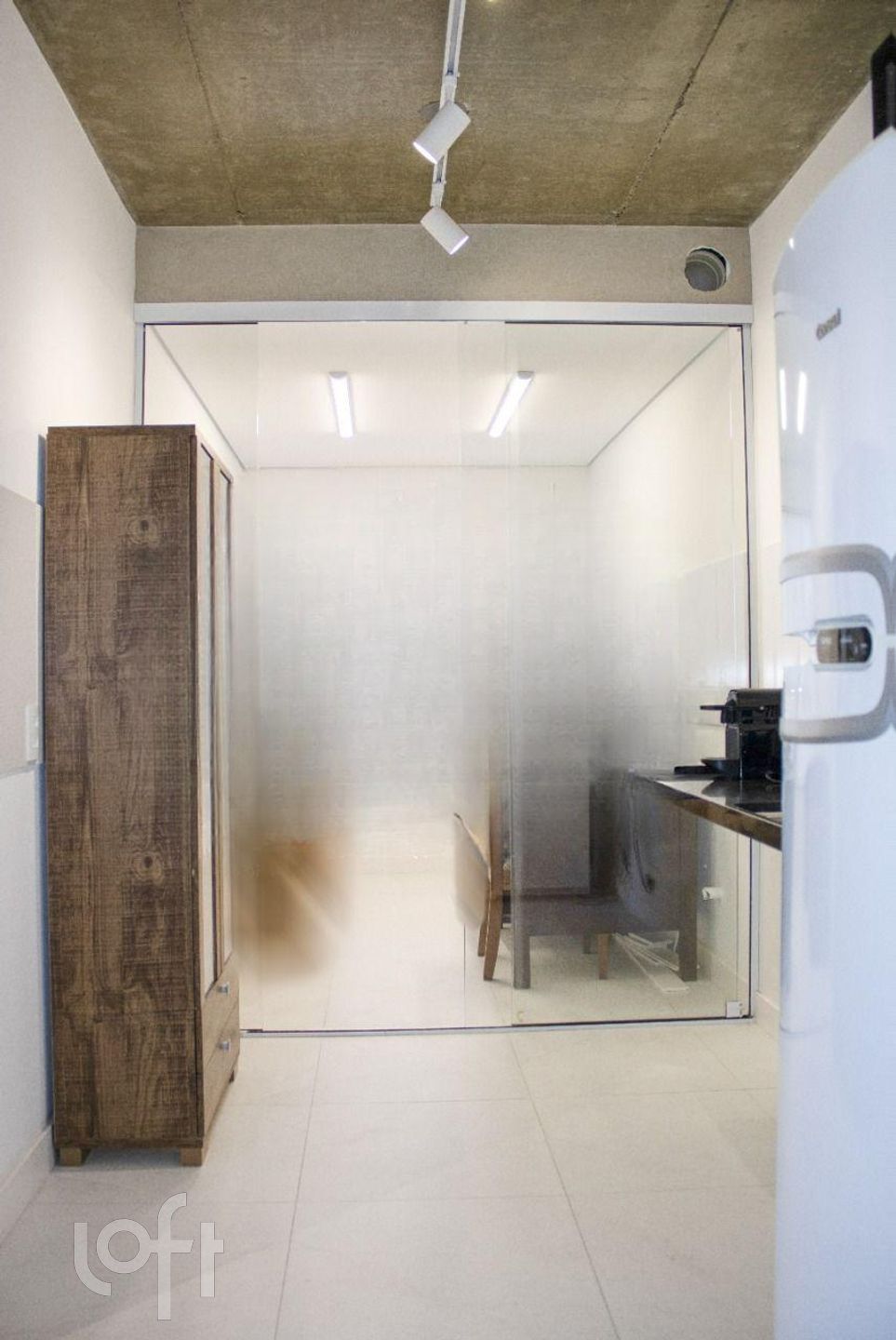 ** Teto cimentício com verniz selante na cozinha, hall de entrada sala e quarto.