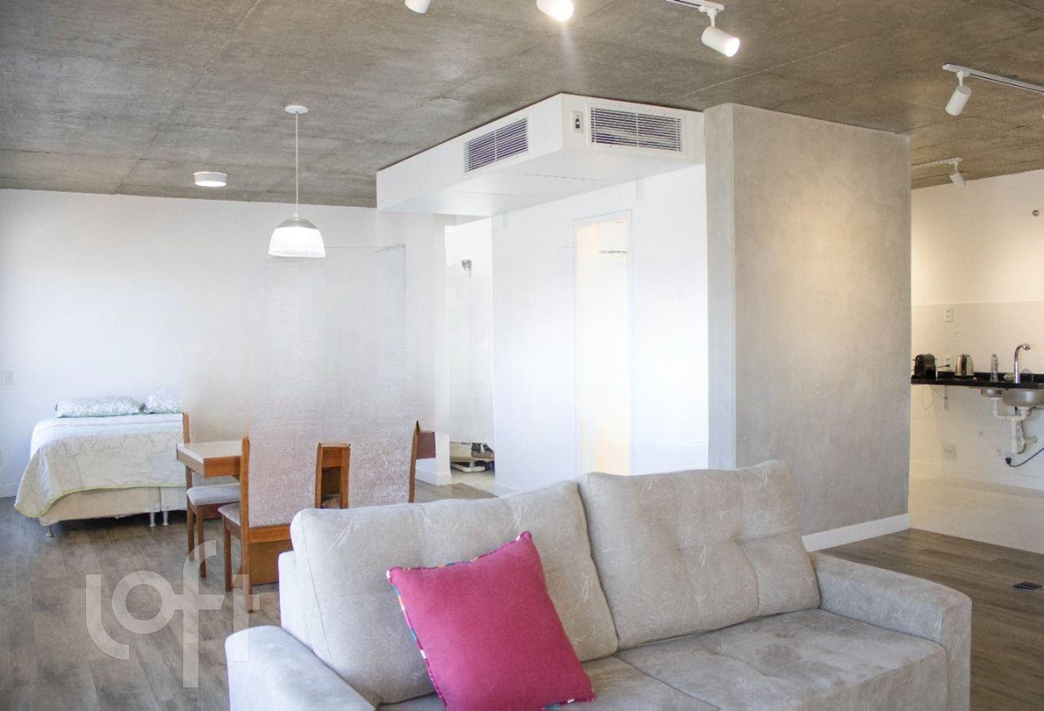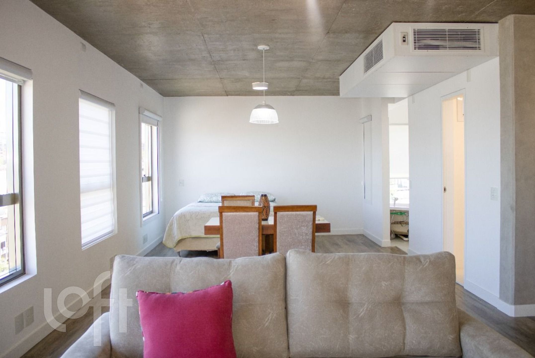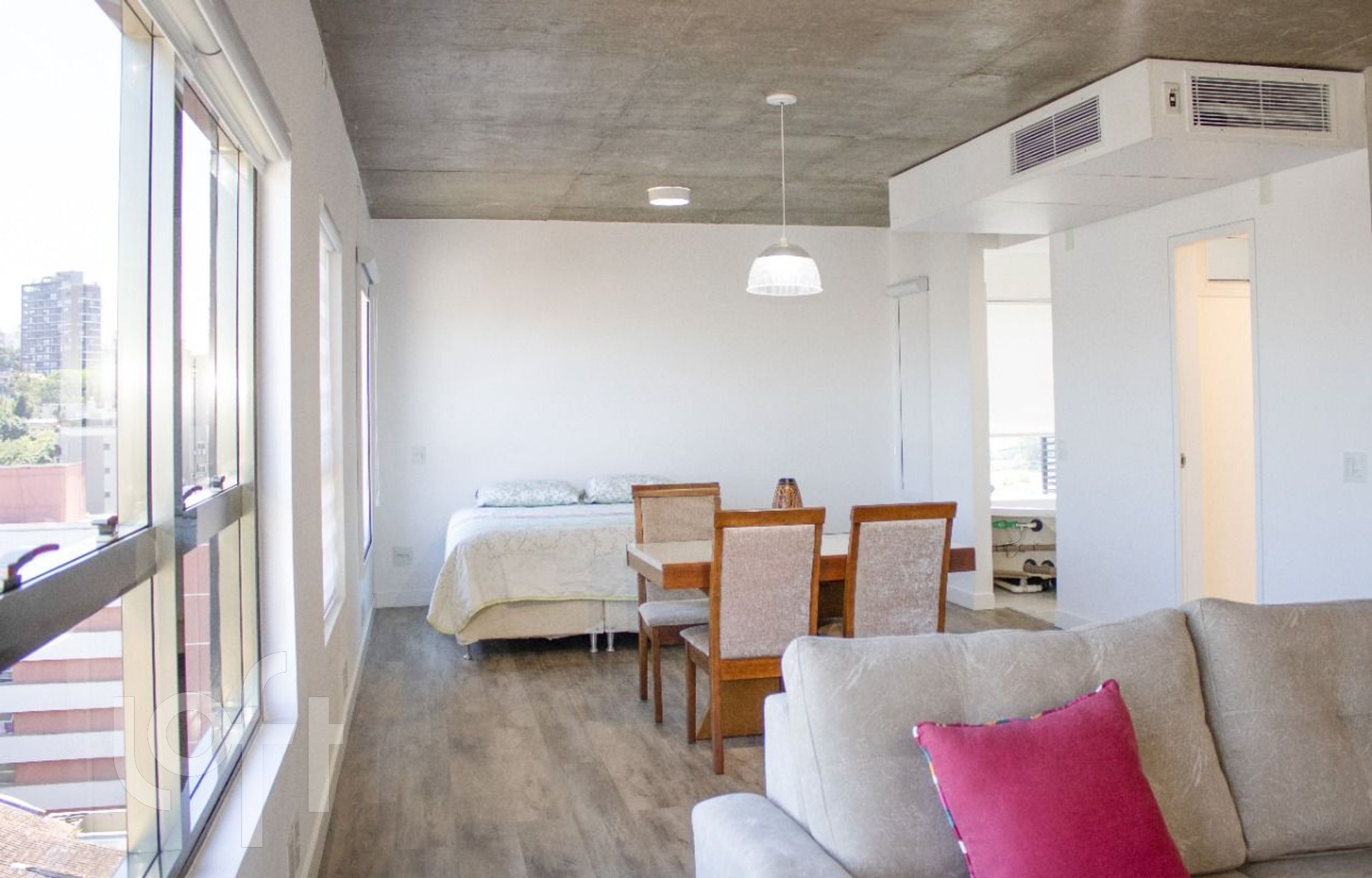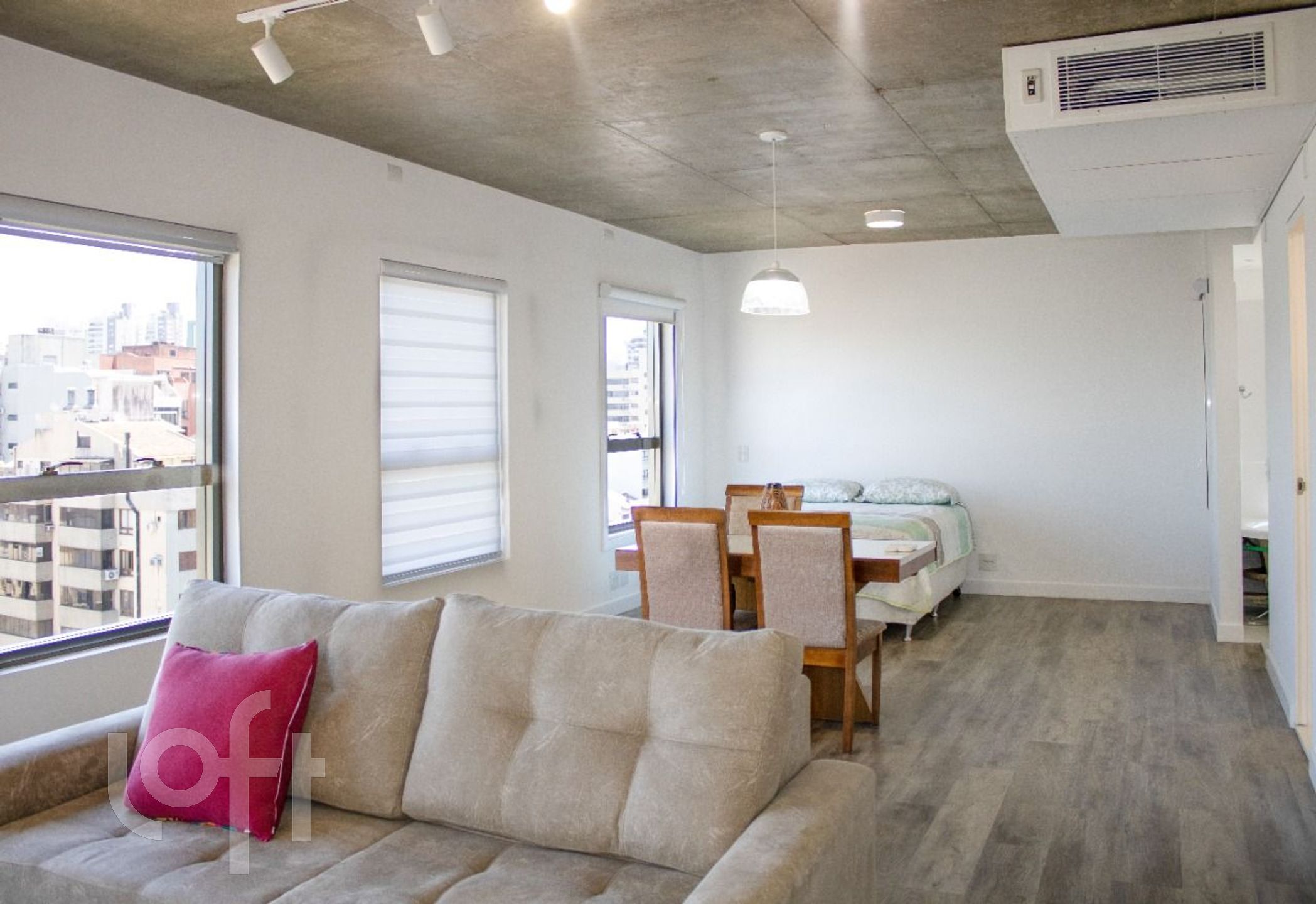 ** Ar condicionado tipo central marca Daikin tipo inverter, com unidades internas de 24000BTUs para sala e 12000BTUs para o quarto.