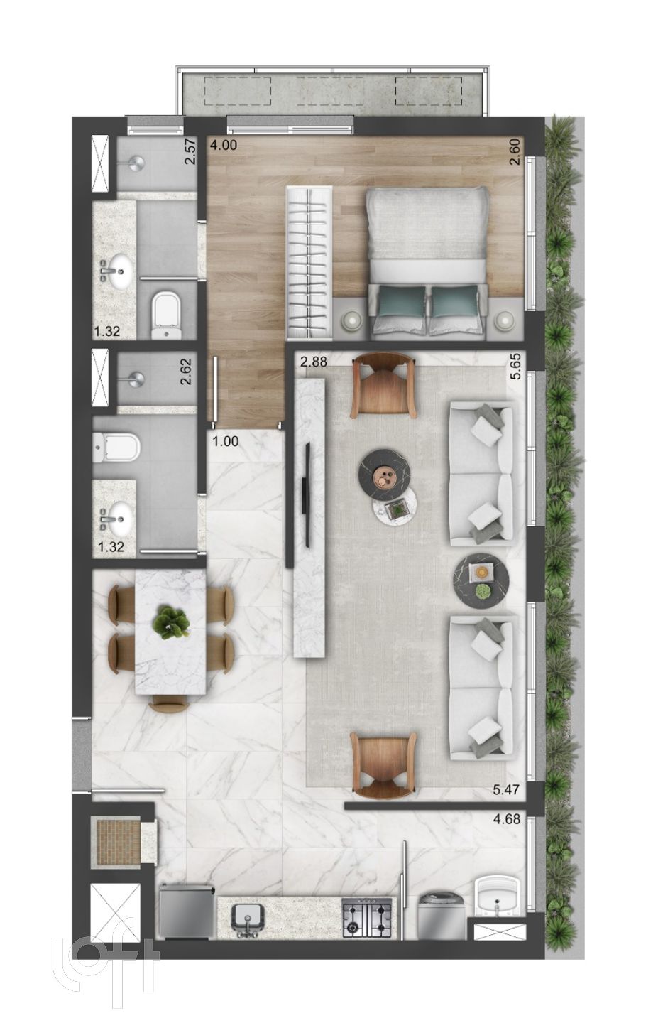 Algumas características do imóvel: Agua Quente, Banheiro Social, Suite Master