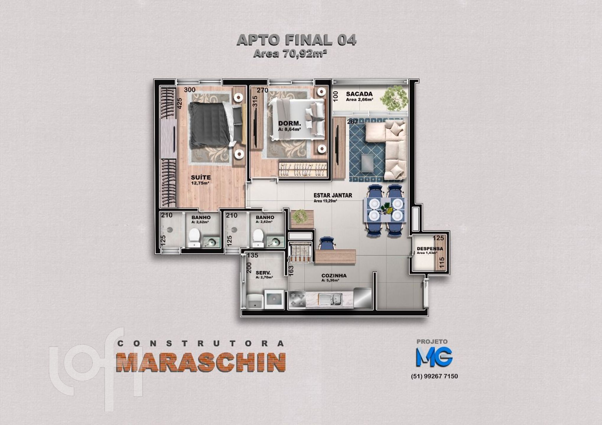 Este apartamento de 80 m² privativos traz o conforto de 3 dormitórios, churrasqueira privativa para reunir amigos, e 2 vagas de garagem para a sua tranquilidade.