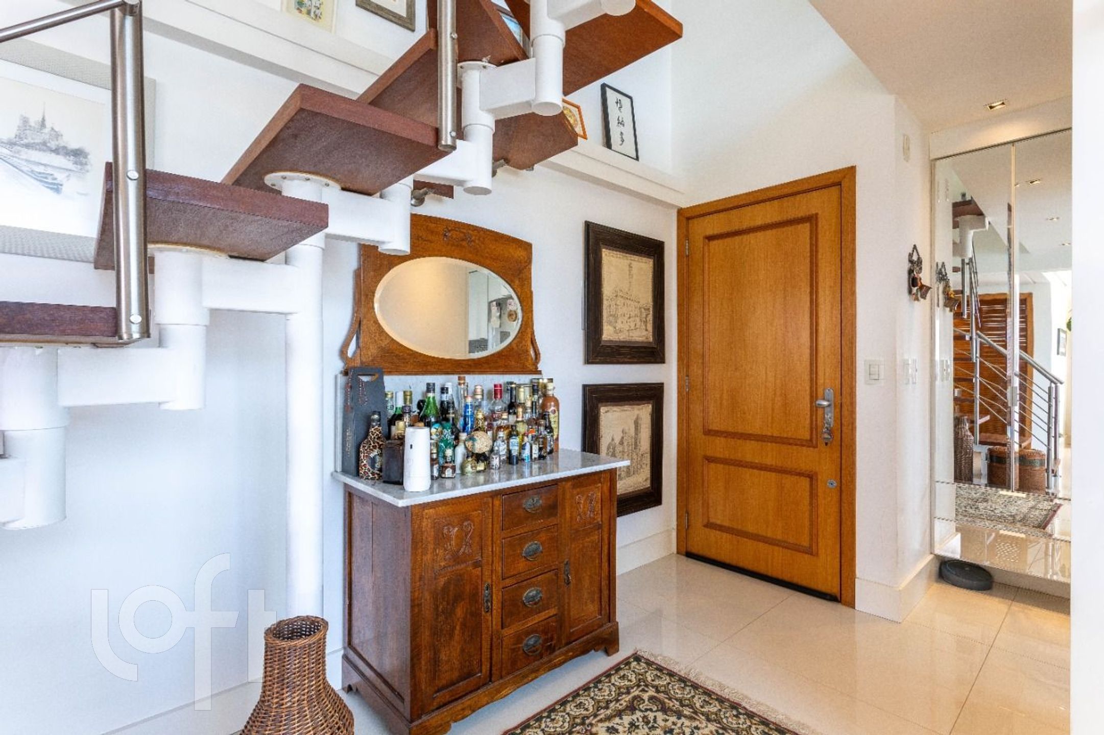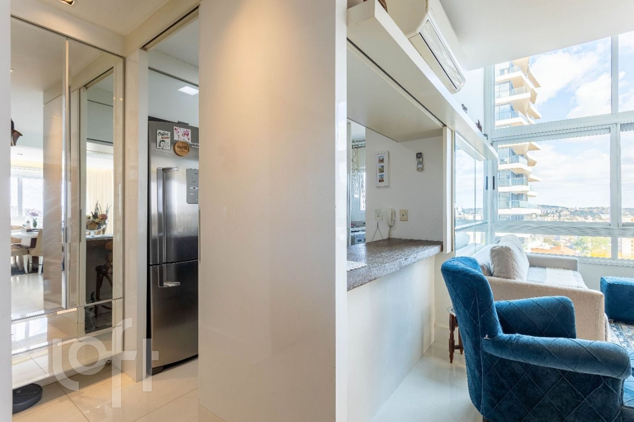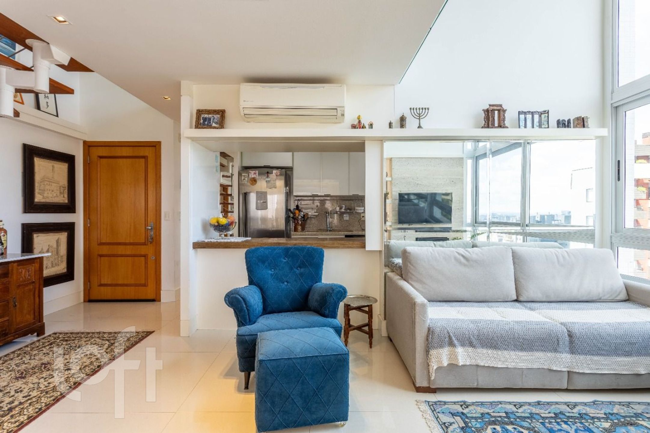 Apartamento a venda na Rua Cabral bairro Rio Branco, pé direito duplo na área social, mezanino com sala de TV montada + home office com vista. Dois quartos transformado para 1 suíte e uma sala de jantar com lavabo + living com lareira e cozinha americana com churrasqueira. Duas vagas de garagens, independentes. Dois elevadores, salão de festas, portaria virtual, próximo ao Colégio Leonardo da Vinci, Zaffari da Cabral.