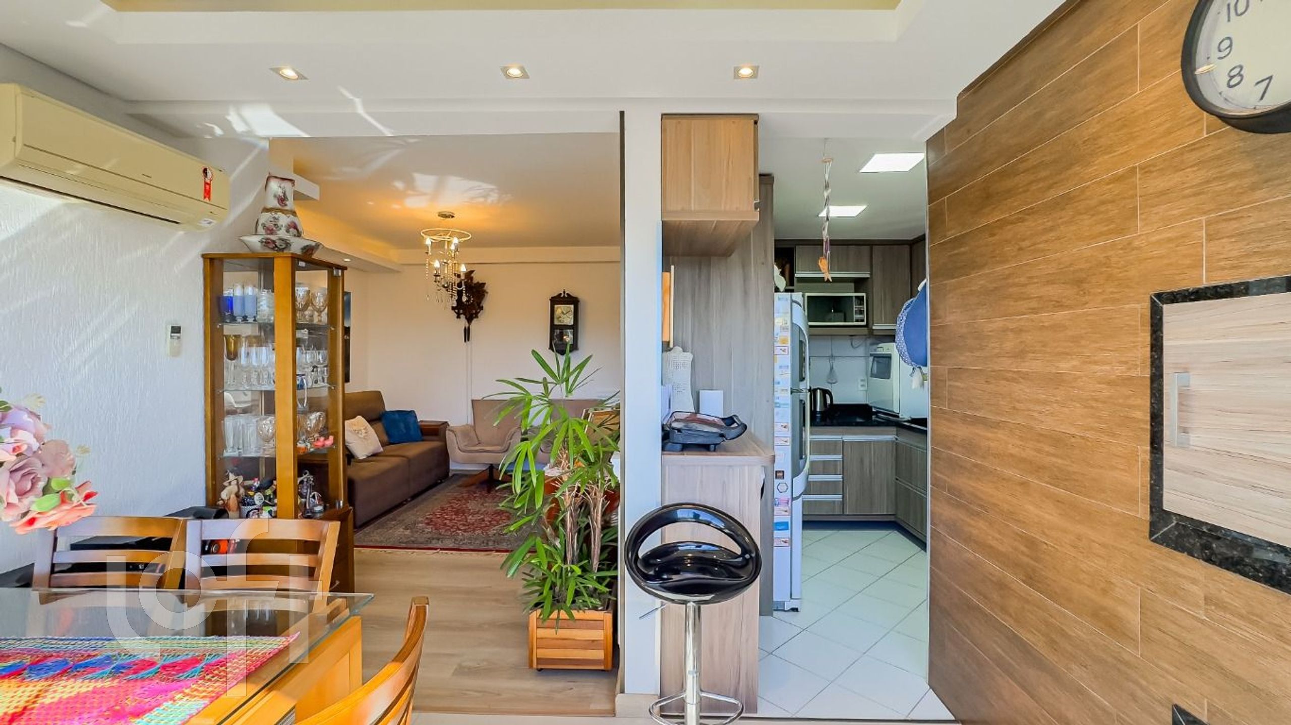 Apartamento 3 quartos sendo 1 suíte, de frente, living para 2 ambientes em "L" com sacada integrada e churrasqueira, cozinha c/ área de serviço conjugada, piso laminado, vista panorâmica em todas as peças, semi-mobiliado pois ficam todos só moveis fixos, 3 aparelhos de ar condicionado, andar alto com ótima posição solar(leste), 1 vagas de garagem escriturada para 2 carros. Condomínio com medidores de gás e água individuais, elevador, salão de festas, portaria virtual, alarme e circuito de TV., cerca elétrica. Ótima localização no bairro, próximo a todos os recursos, situado em rua calma, com fácil acesso ao transporte público, e próximo ao Bourbon Wallig e Hospital Cristo Redentor. Aceita Financiamento/FGTS.