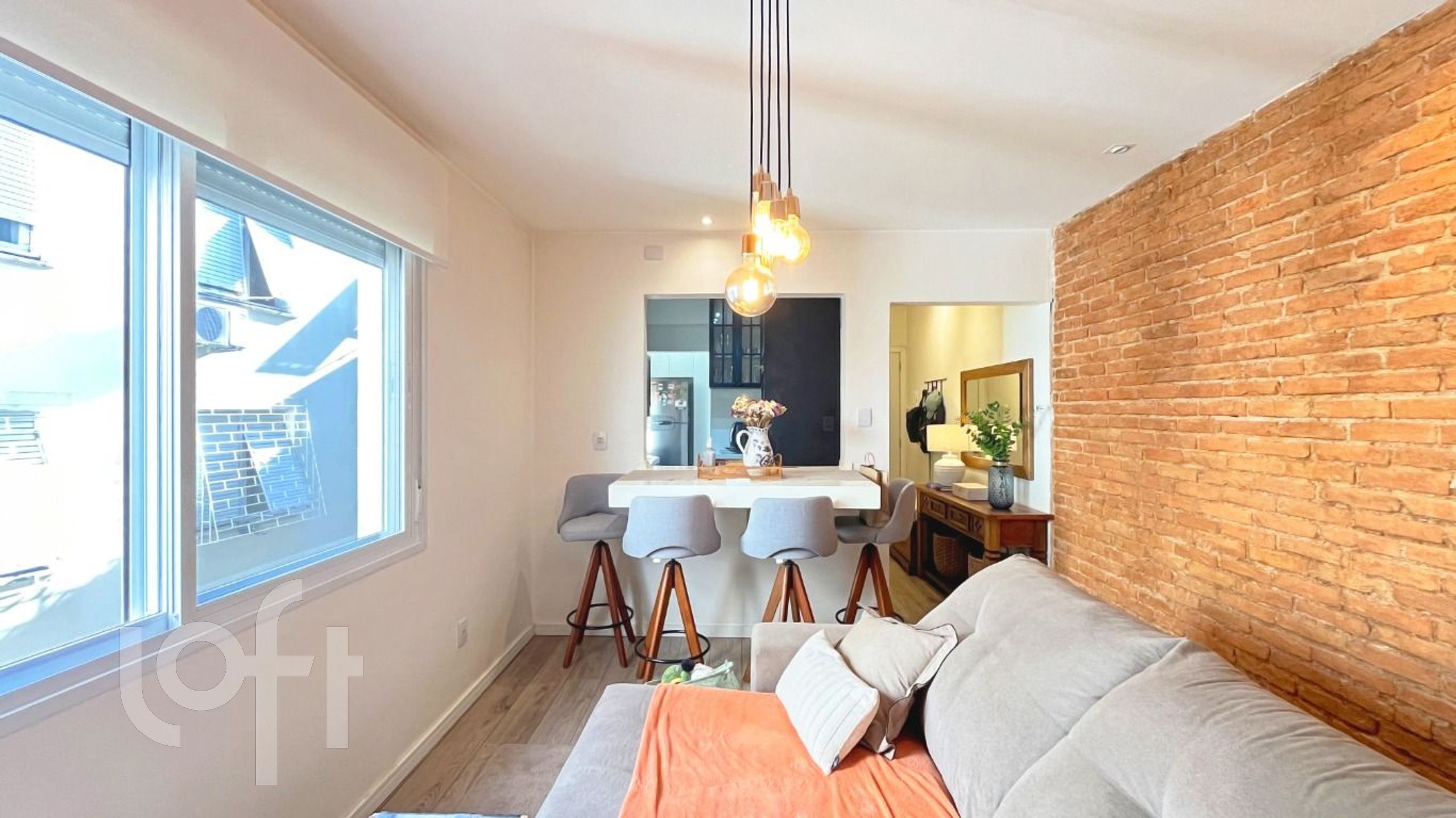 Amplo apartamento de dois dormitórios, todo reformado, mobiliado, living, banheiro social com ventilação natural, cozinha, área de serviço.