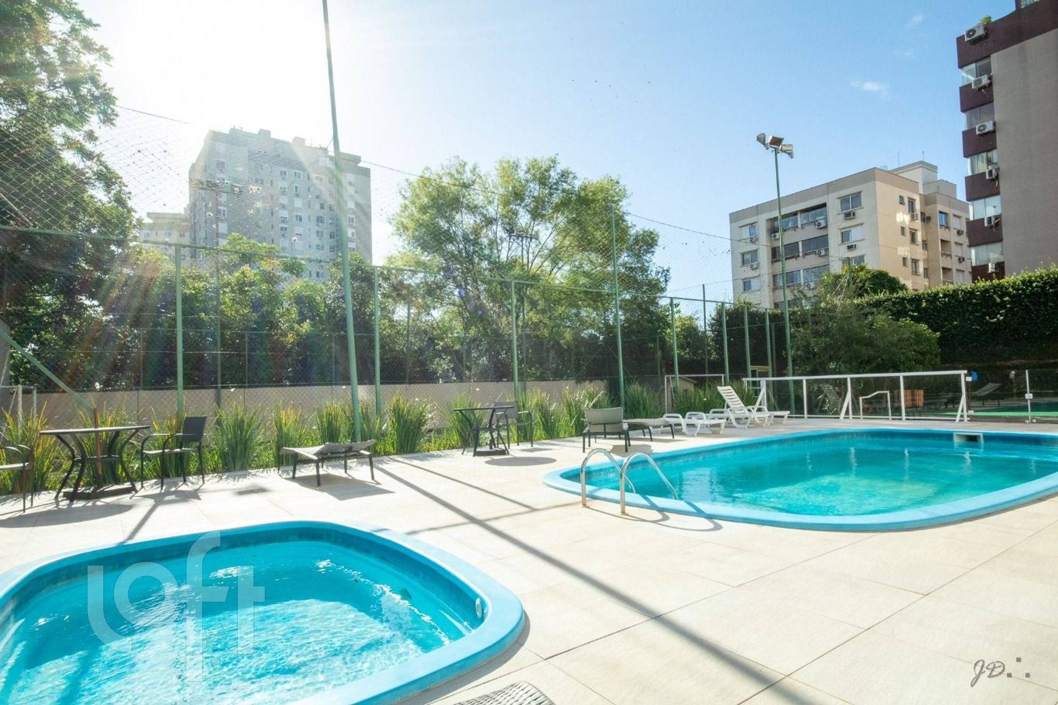 Vende-se apartamento amplo, fundos, silencioso, em rua tranquila, 2 quartos, sendo uma suíte (com ventilador de teto), banheiro social, cozinha e área de serviço (separada e ventilação direta), sala em 2 ambientes, com sacada integrada e churrasqueira. Água quente. Muito bom estado de conservação. Tem 1 box simples (14,85 m2) não coberto. Tem também 1 pequeno depósito perto da vaga de garagem. 2 banheiros com balcão e pia. Cozinha com armário e pia. Churrasqueira, aquecedor de passagem a gás revisado, 3 aparelhos de ar condicionado (2 de parede e 1 split) revisados, e persianas. Tem fios passados para TV, internet, telefone fixo tipo Net-Claro. O condomínio tem pracinha, piscina, quadra esportiva e um bom salão de festas. Acesso em portaria virtual. Ao lado do Paseo e a 5 min do BarraShopping! Venha conhecer!