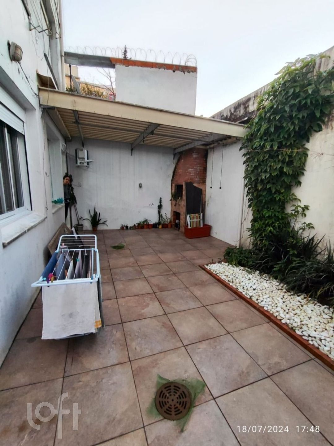 O pátio conta com um sistema de telhado abre e fecha facilitando a utilização do espaço.