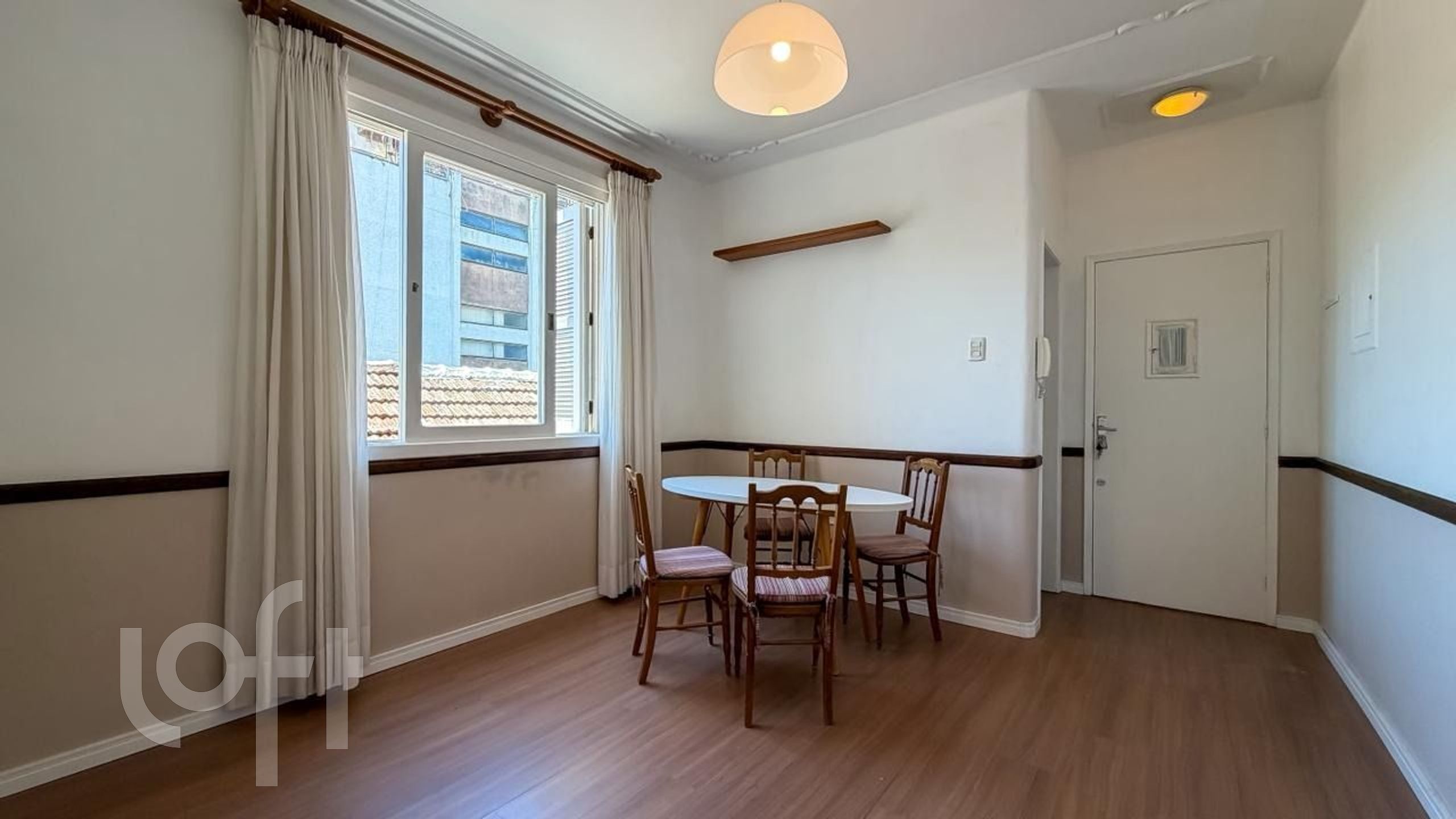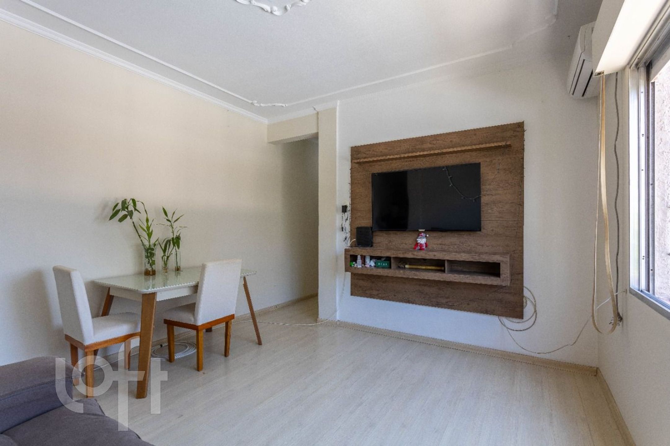 Living dois ambientes, copa/cozinha e banheiro social