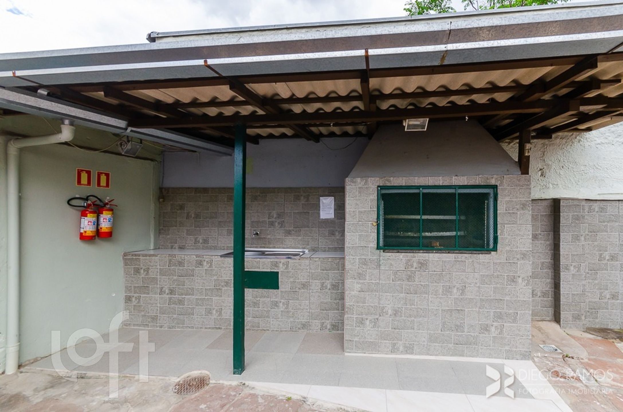 Condomínio conta com salão de festas e área com churrasqueira, Monitoramento de câmeras.