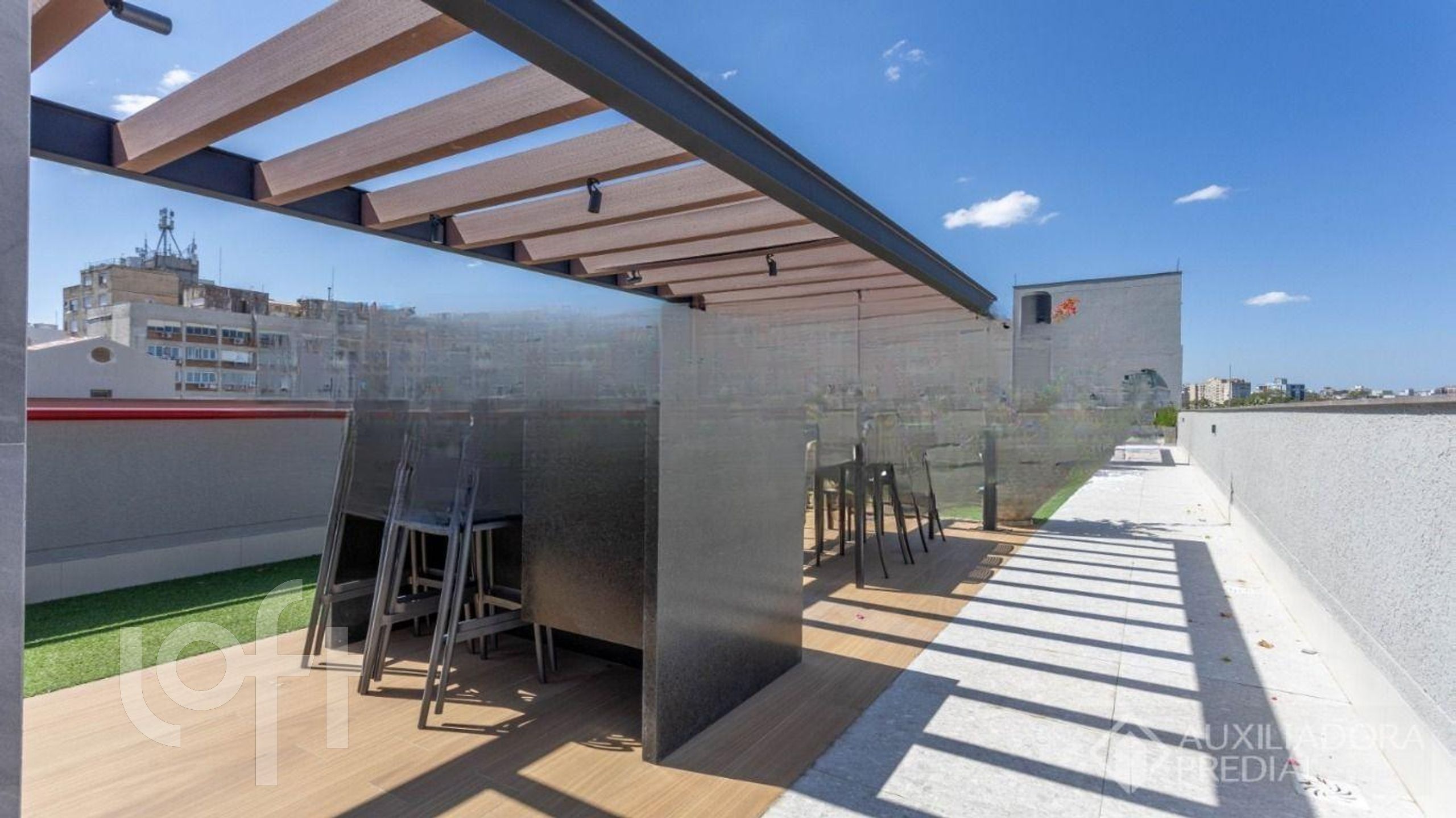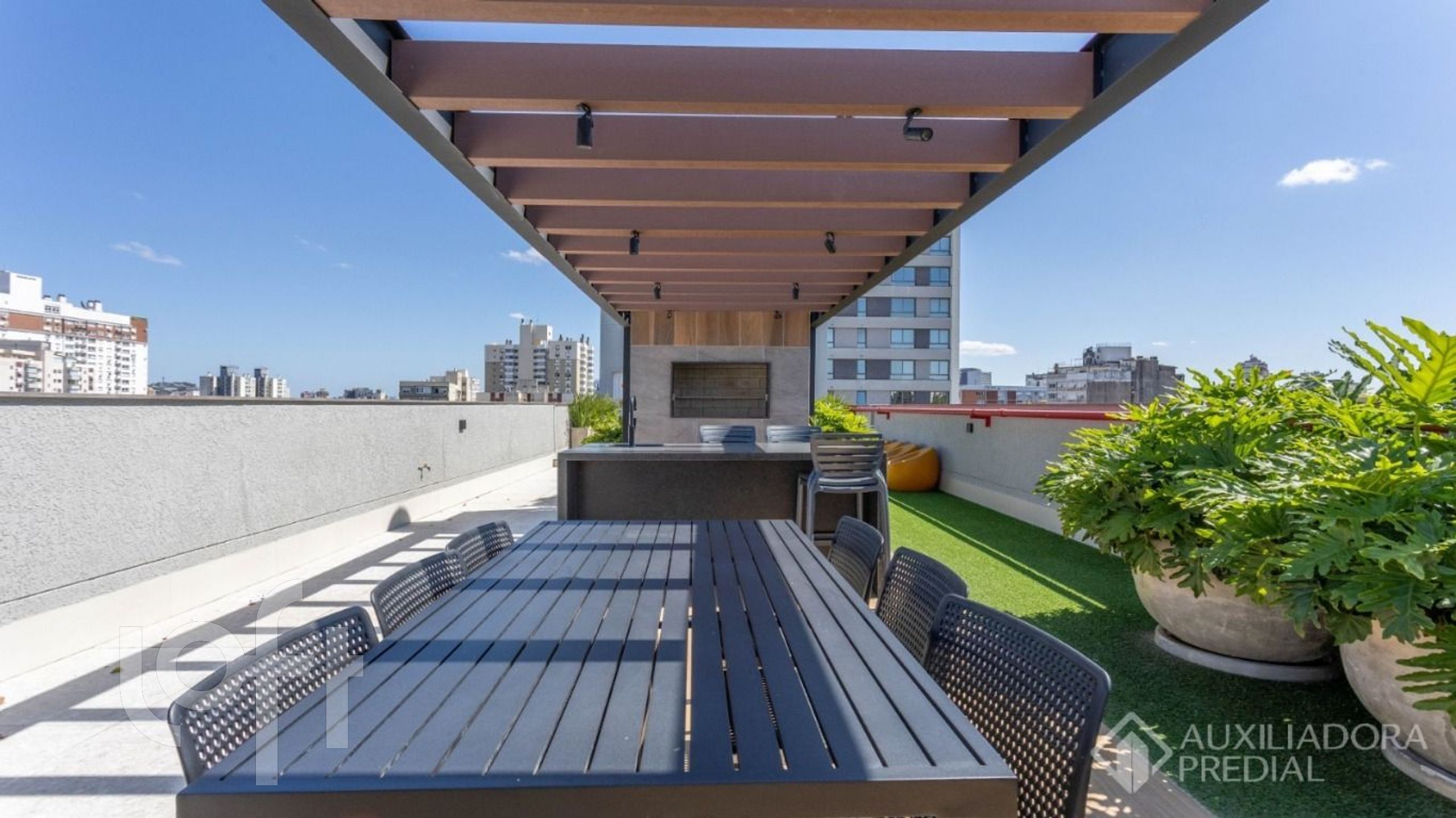 Prédio recuado , ajardinado , salão de festas equipado e mobiliado, lavanderia compartilhada, fitness, Rooftop com vista perene para parque Farroupilha .