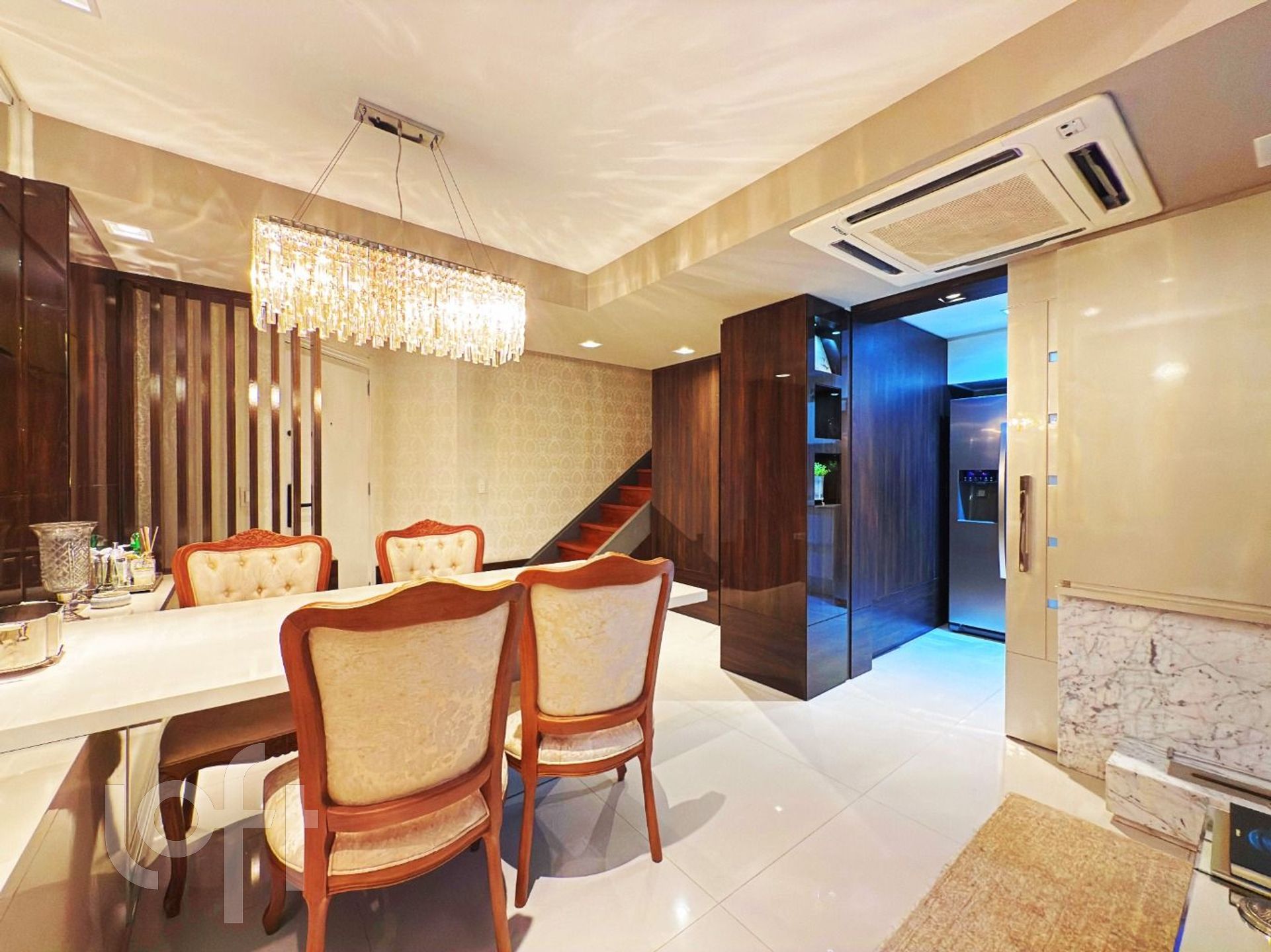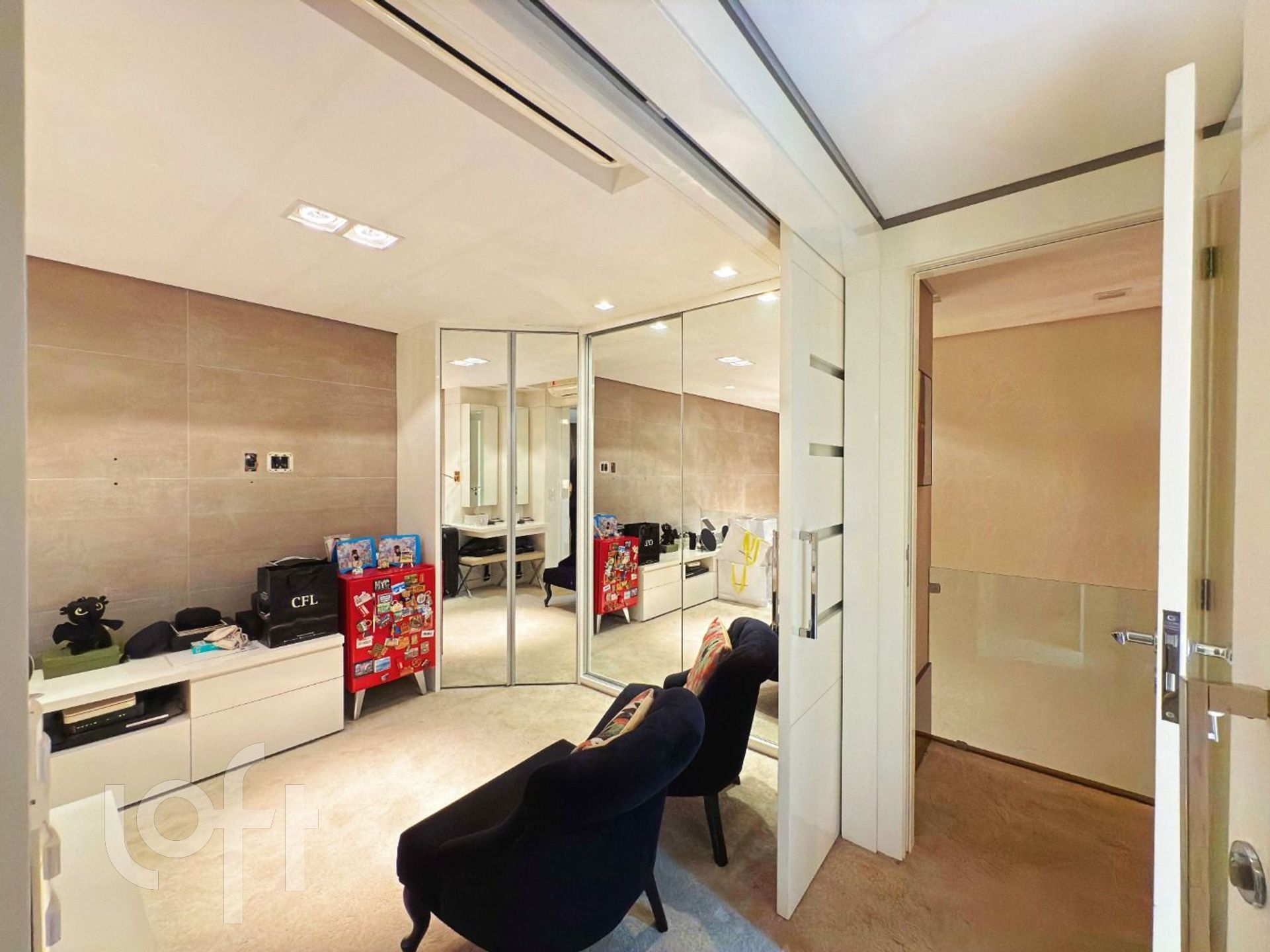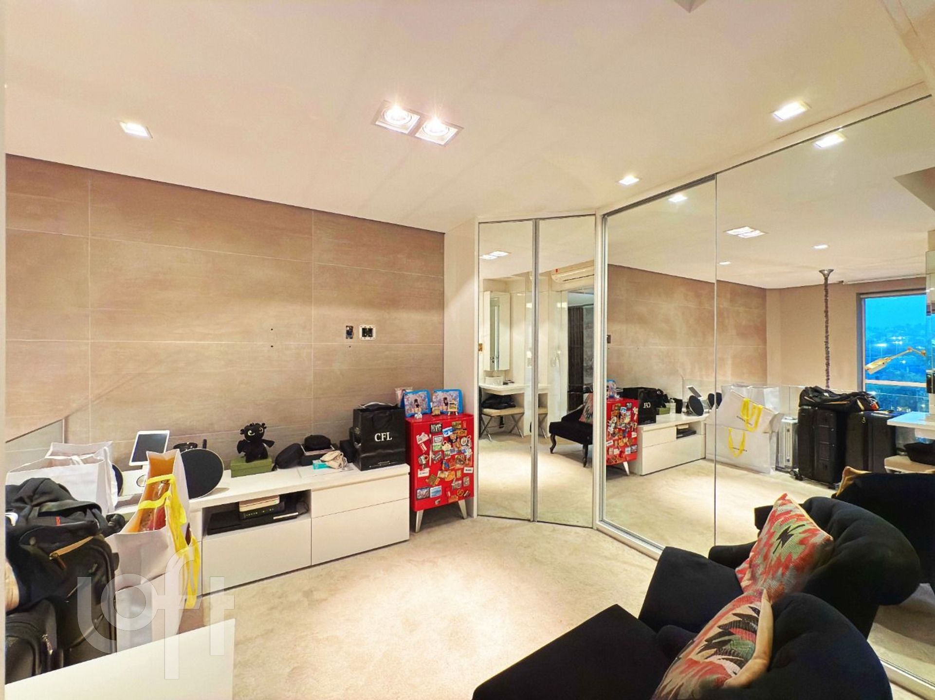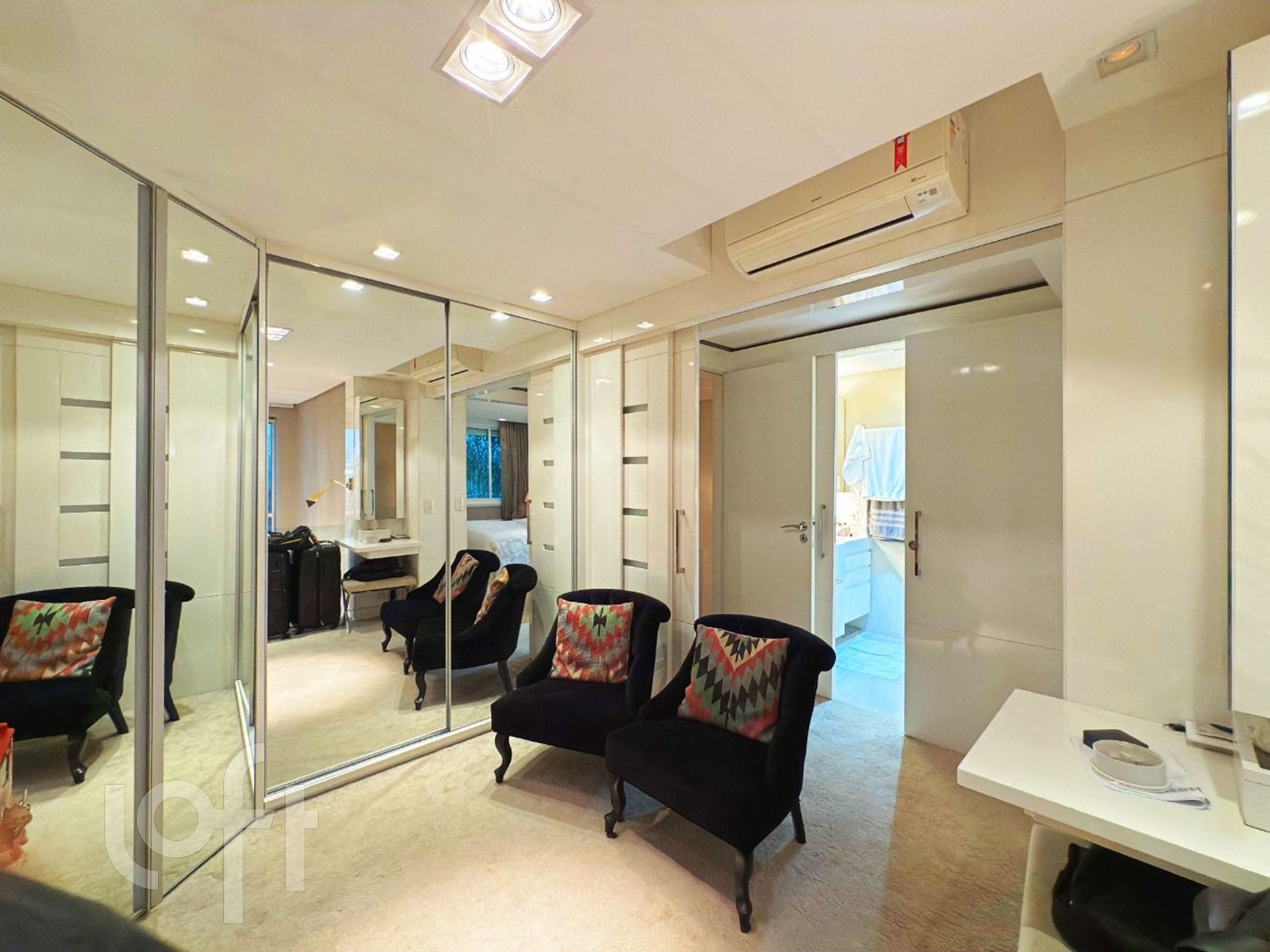 O imóvel dispõe de piso aquecido em todo o segundo pavimento, com dois motores independentes, garantindo conforto térmico superior e controle individualizado dos ambientes. São dois dormitórios, sendo uma suíte sofisticada e um segundo dormitório atualmente configurado como closet, com possibilidade de reversão.