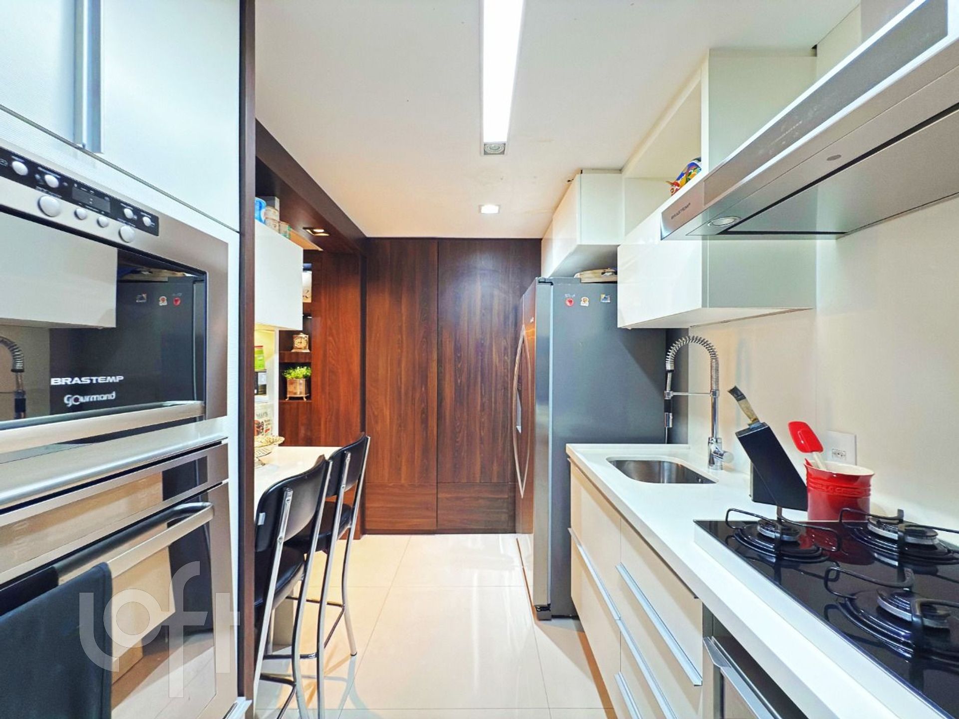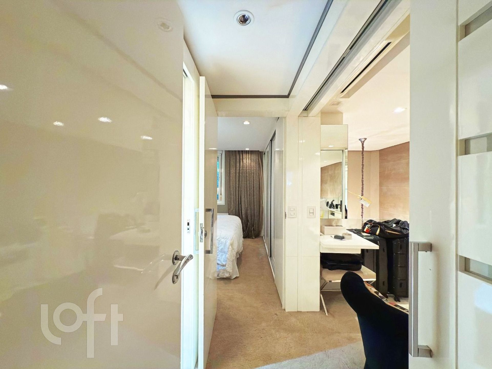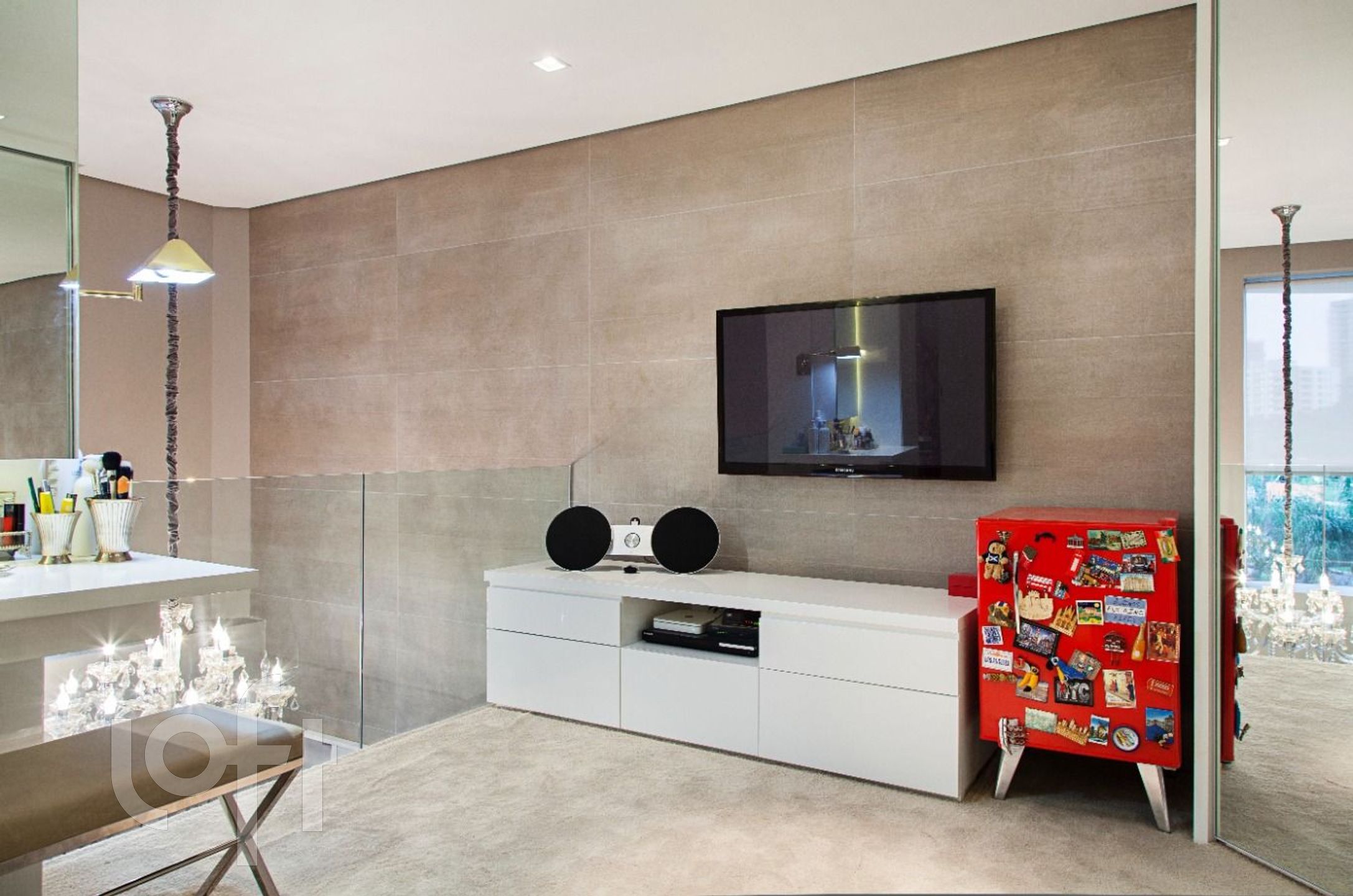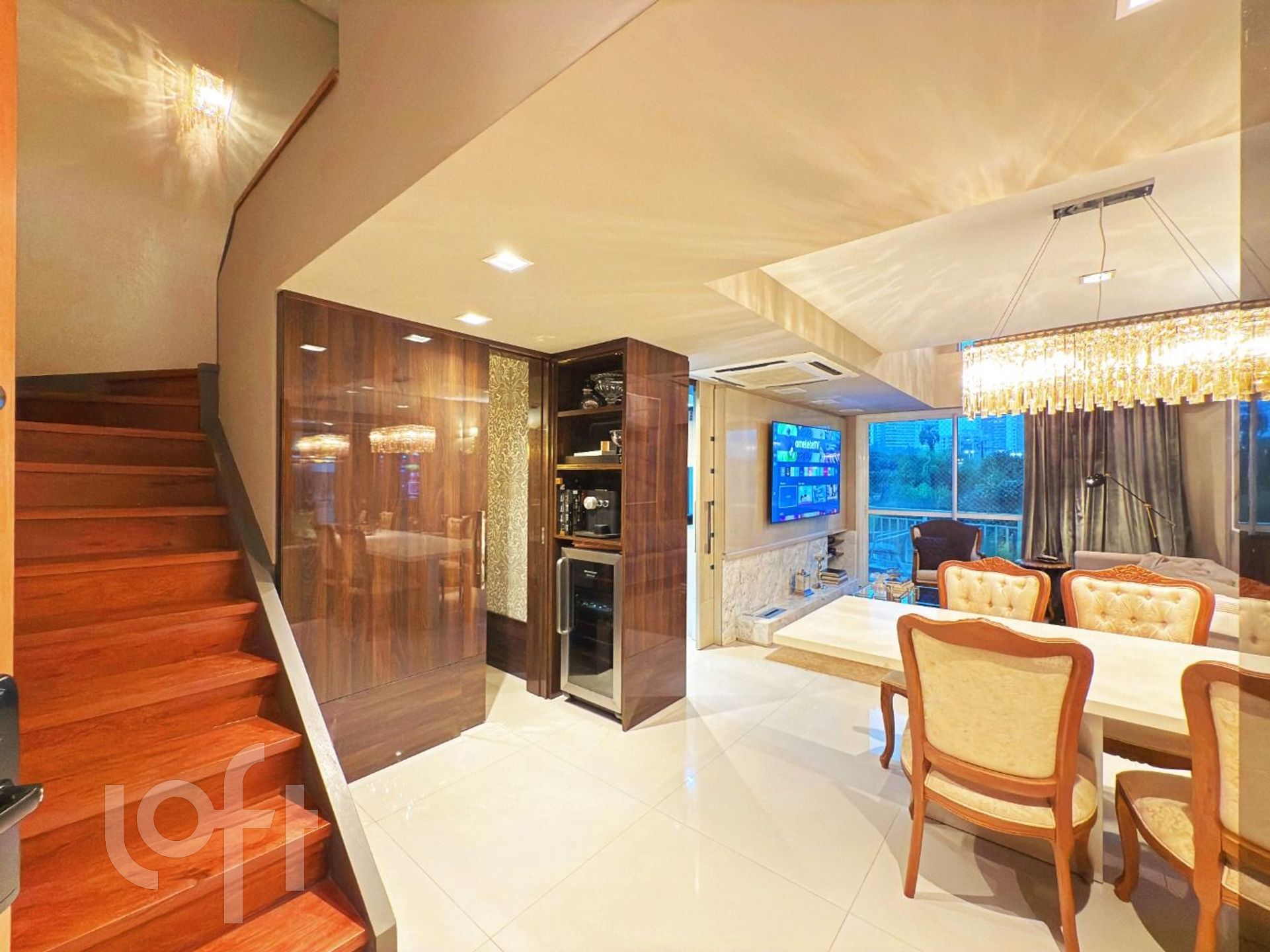 O imóvel dispõe de piso aquecido em todo o segundo pavimento, com dois motores independentes, garantindo conforto térmico superior e controle individualizado dos ambientes. São dois dormitórios, sendo uma suíte sofisticada e um segundo dormitório atualmente configurado como closet, com possibilidade de reversão.