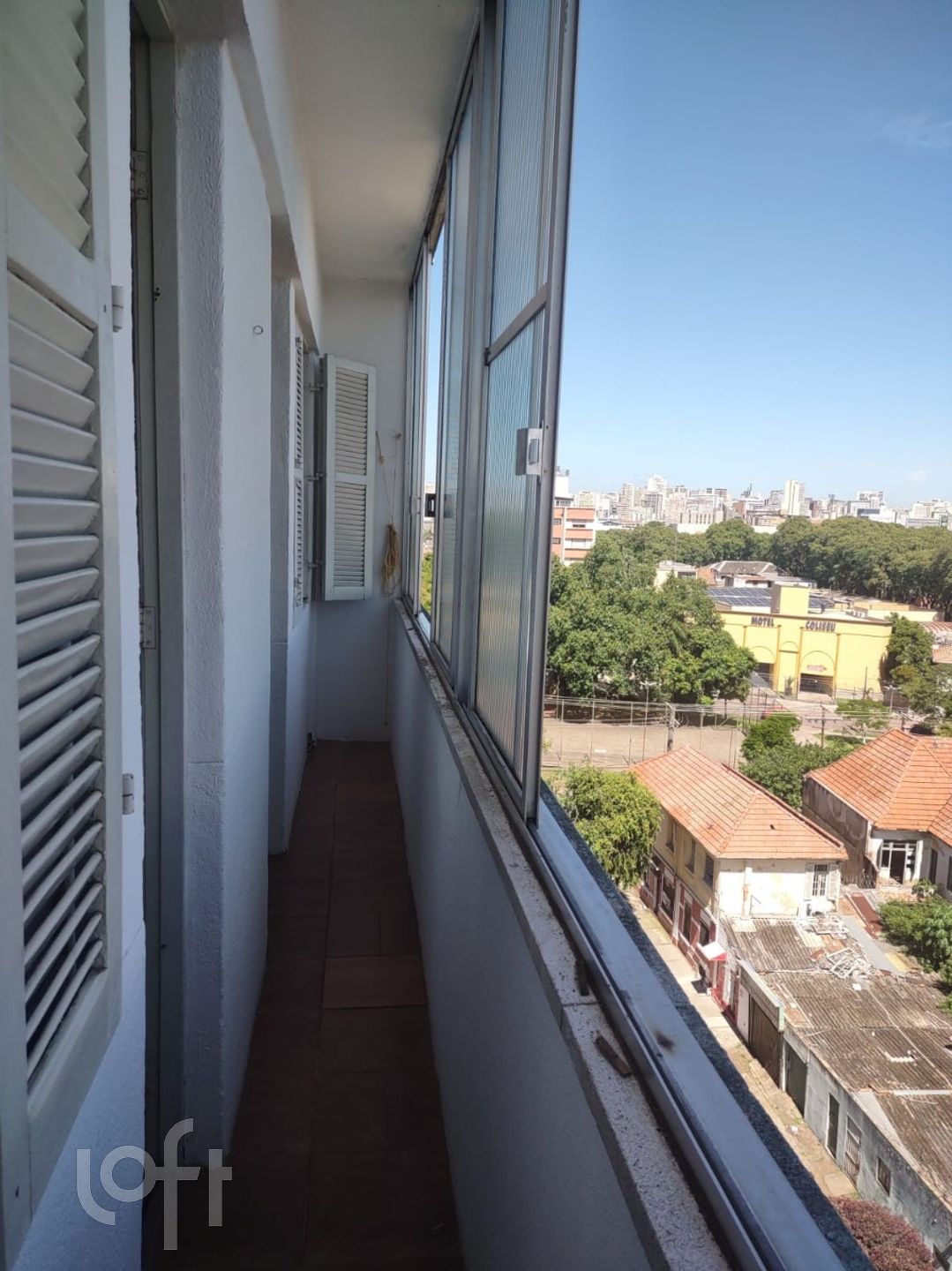 Apartamento de frente, no último andar, 2 quartos com sacada de frente, área de serviço, cozinha e ampla sala de estar, 1 banheiro social, com 84,45 metros quadrados de área privativa. A janela da sala e dormitórios tem vista para o Guaíba, sendo possível aproveitar o pôr do sol todos os dias. O condomínio conta com elevador já modernizado, porteiro e vigilante (das 19h às 7h da manhã, e 24h nos finais de semana).
