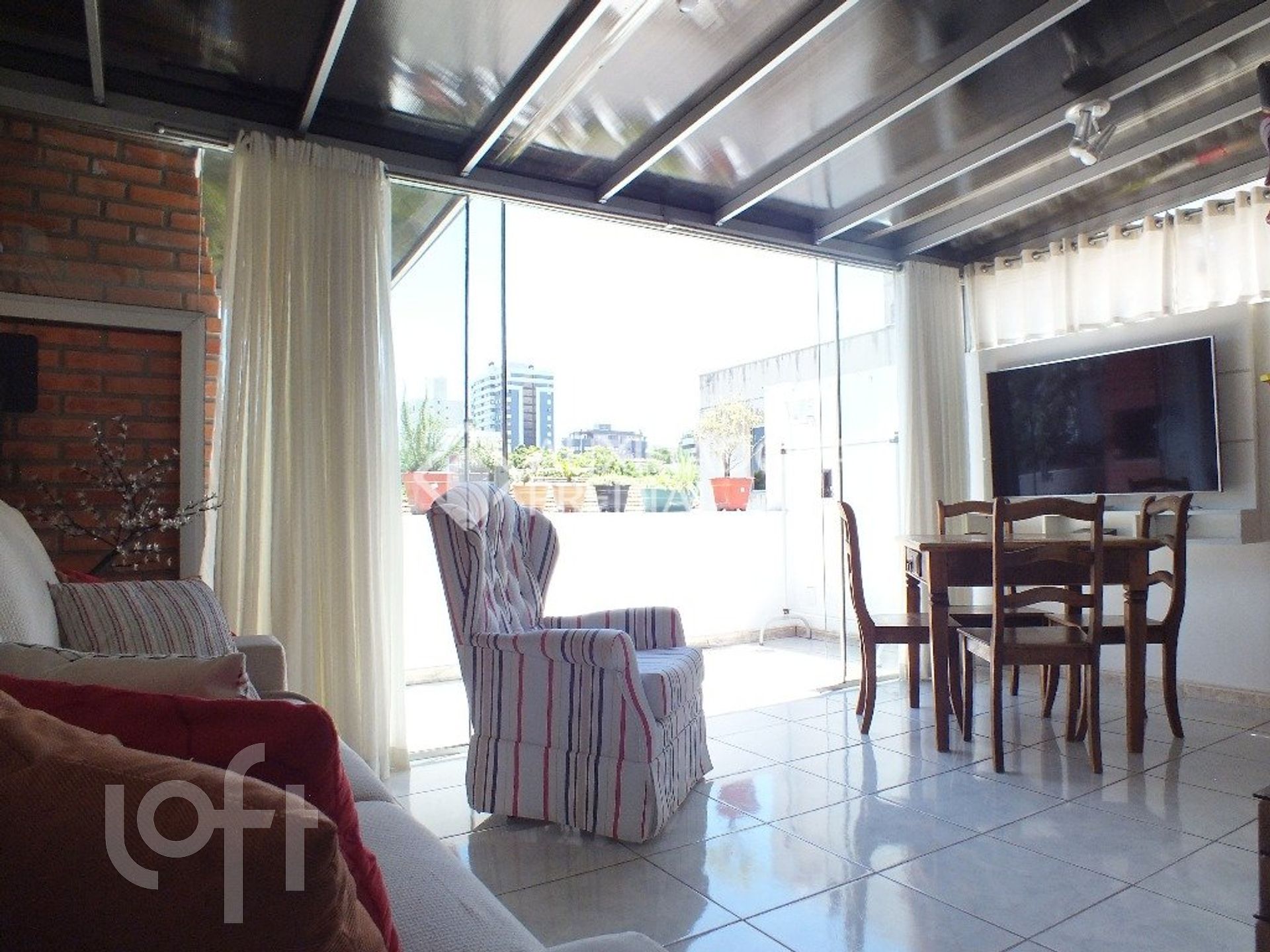 Algumas características do imóvel: Aceita Pet, Agua Quente, Area Servico, Banheiro Social, Churrasqueira, Copa Cozinha, Cozinha, Lareira, Leste, Quintal, Sacada, Sacada Com Churrasqueira, Sala Jantar, Terraco