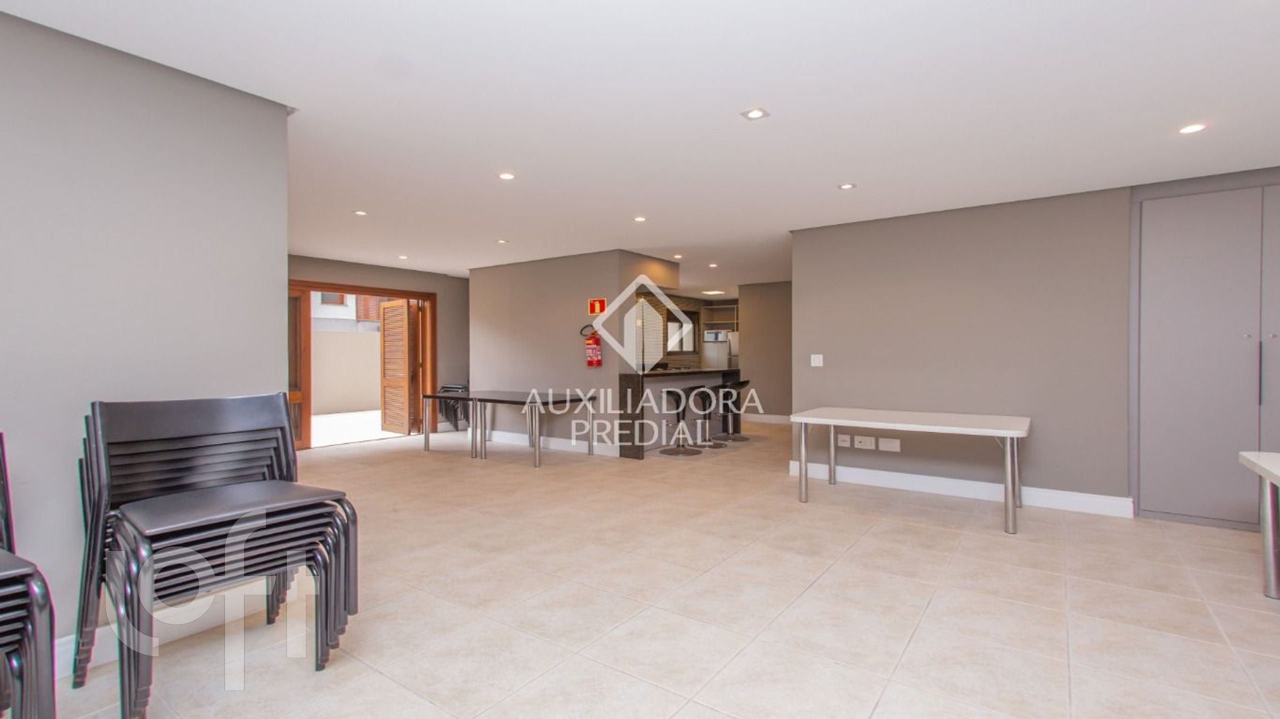 O edifício dispõe de elevadores e espaços de convivência como salão de festas com churrasqueira, trazendo mais praticidade e lazer ao cotidiano.