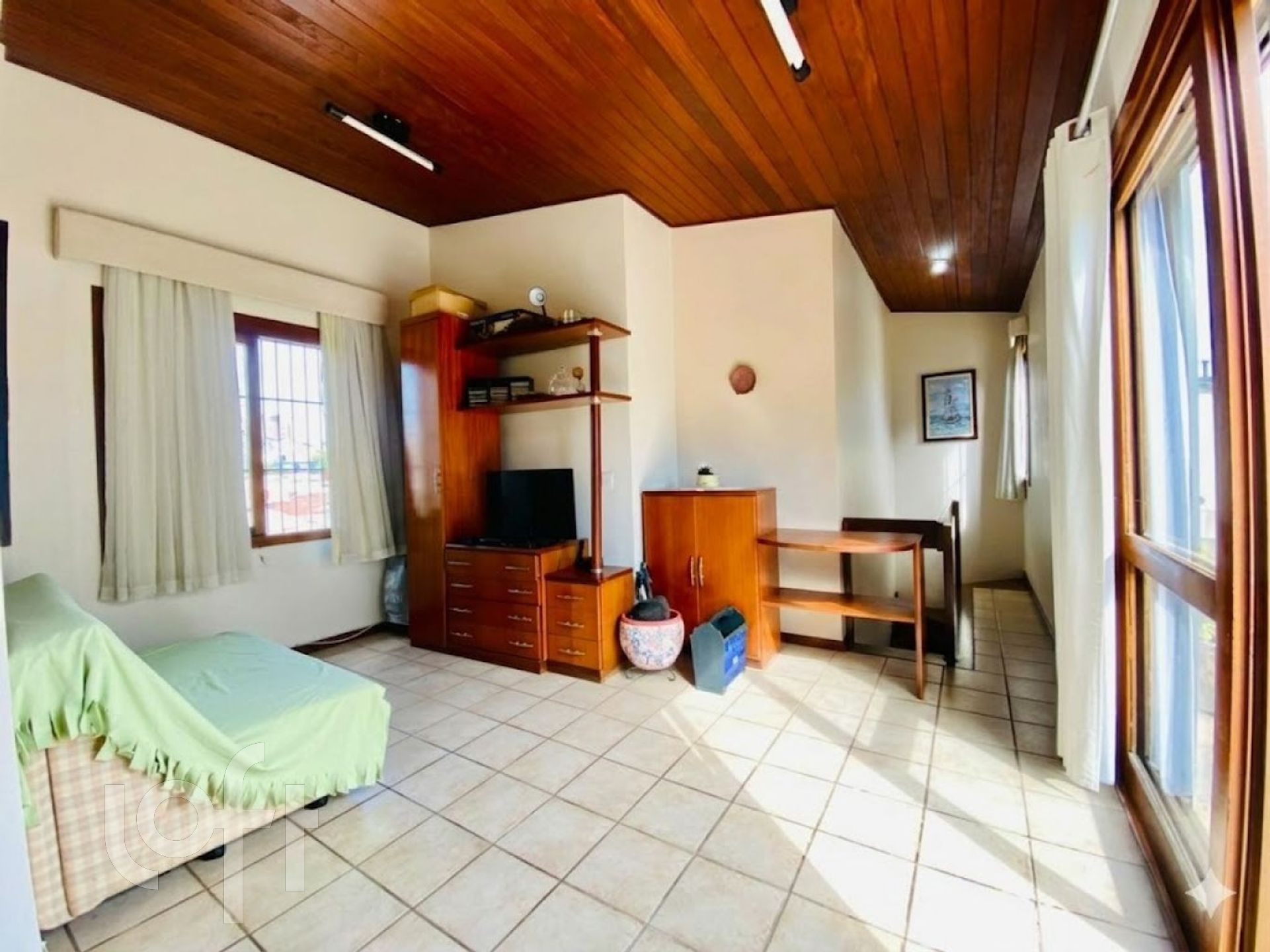 Ideal para quem busca conforto e exclusividade, no pavimento superior, destaque para o pé-direito alto, proporcionando amplitude e excelente iluminação natural, além de banheiro completo e acesso por elegante escada em alvenaria revestida em madeira nobre.