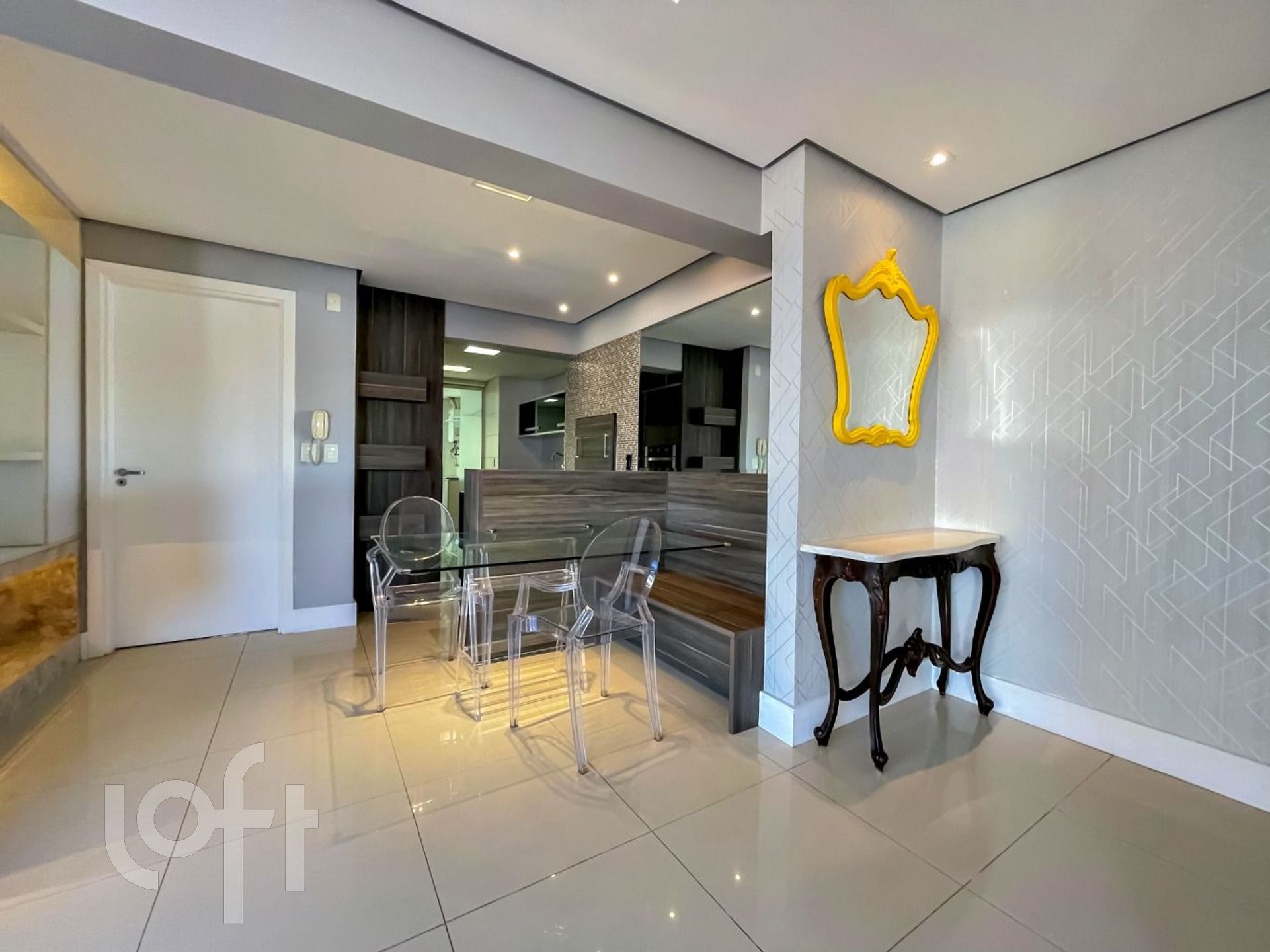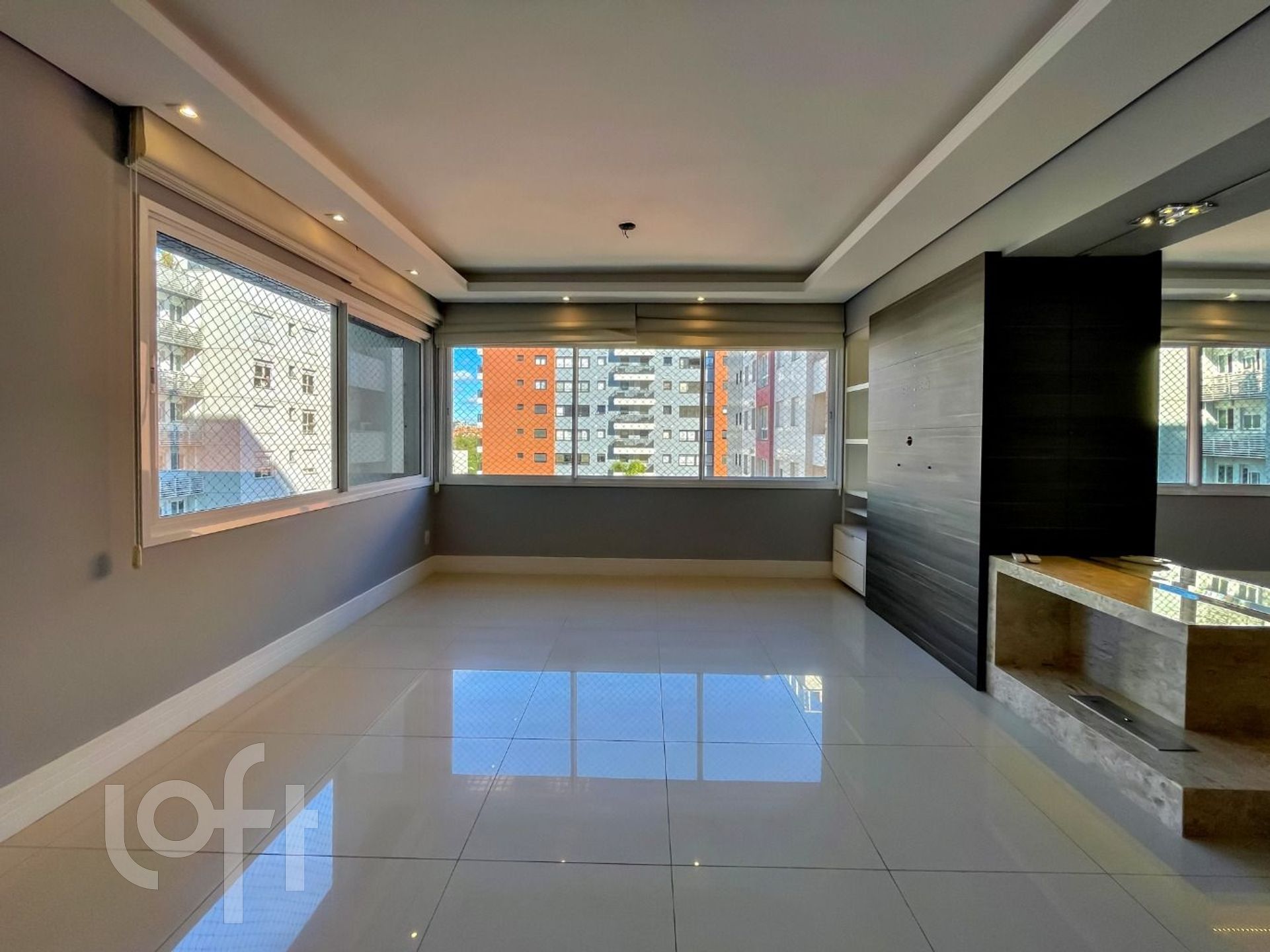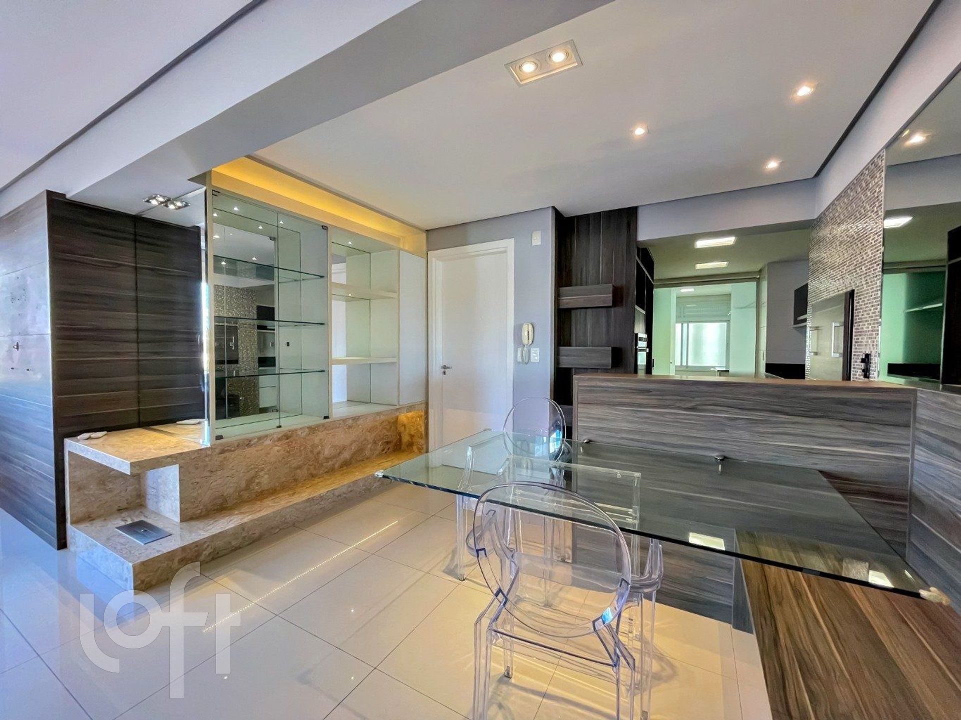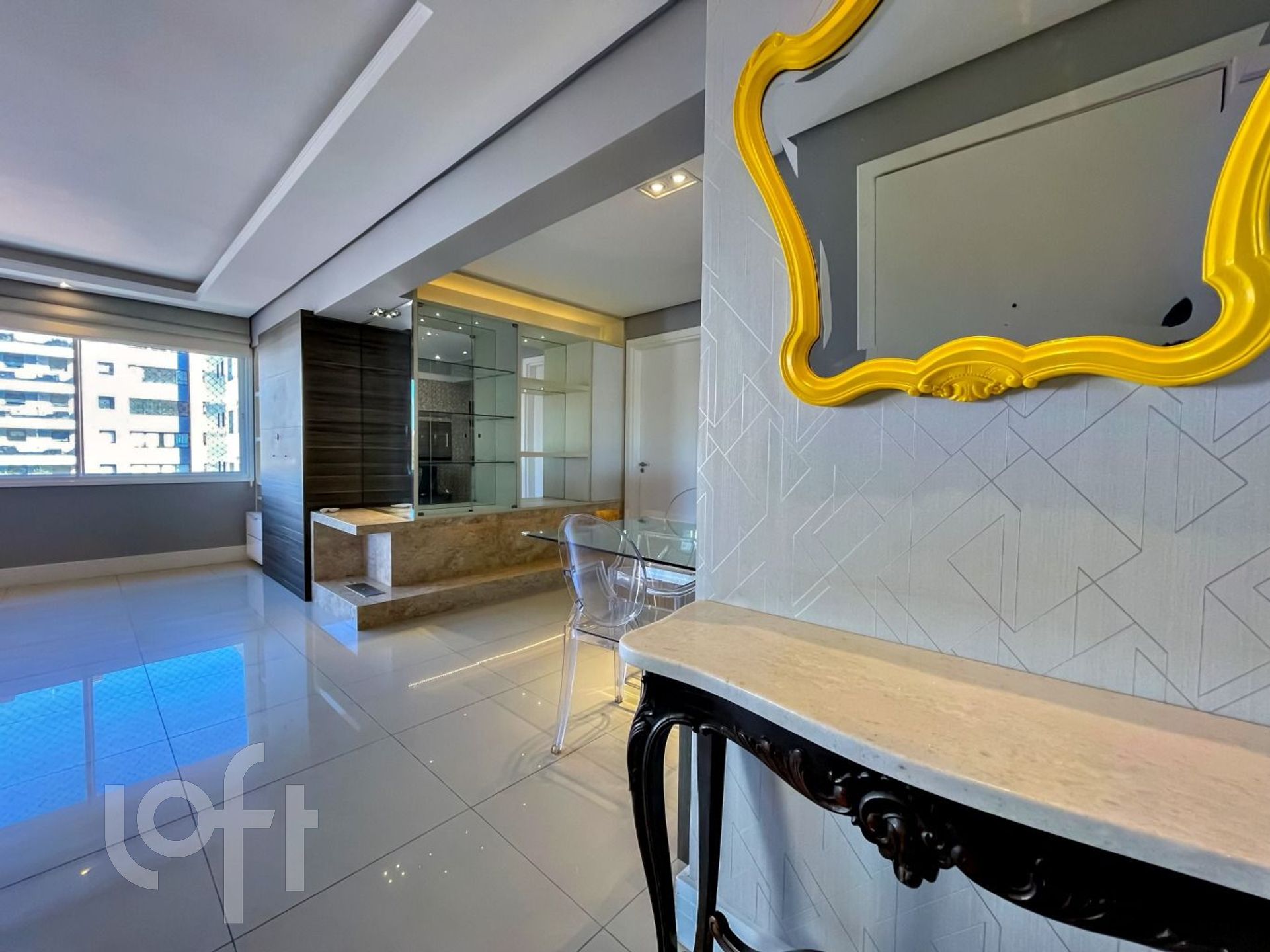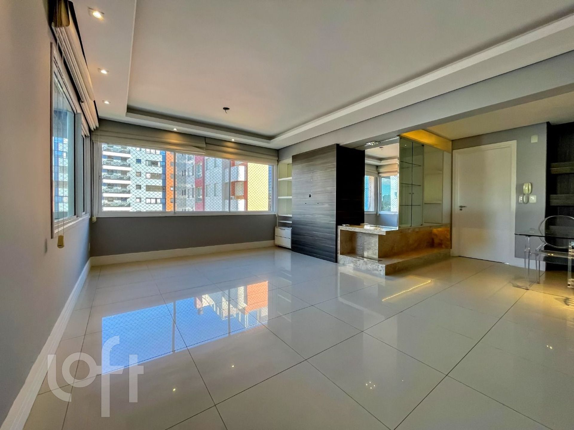 Apartamento modificado em planta com um living amplo, sala de jantar embutida no balcão da churrasqueira criando um espaço bistrô, nicho com cristaleira em mármore em L com lareira a álcool, bem construído e pensado em cada detalhe, móveis sob medida Todeschini, duas cubas na cozinha, armário extra na área de serviço aproveitando todos os espaços, medidores de água e gás individualizados, banheiros com ventilação natural.