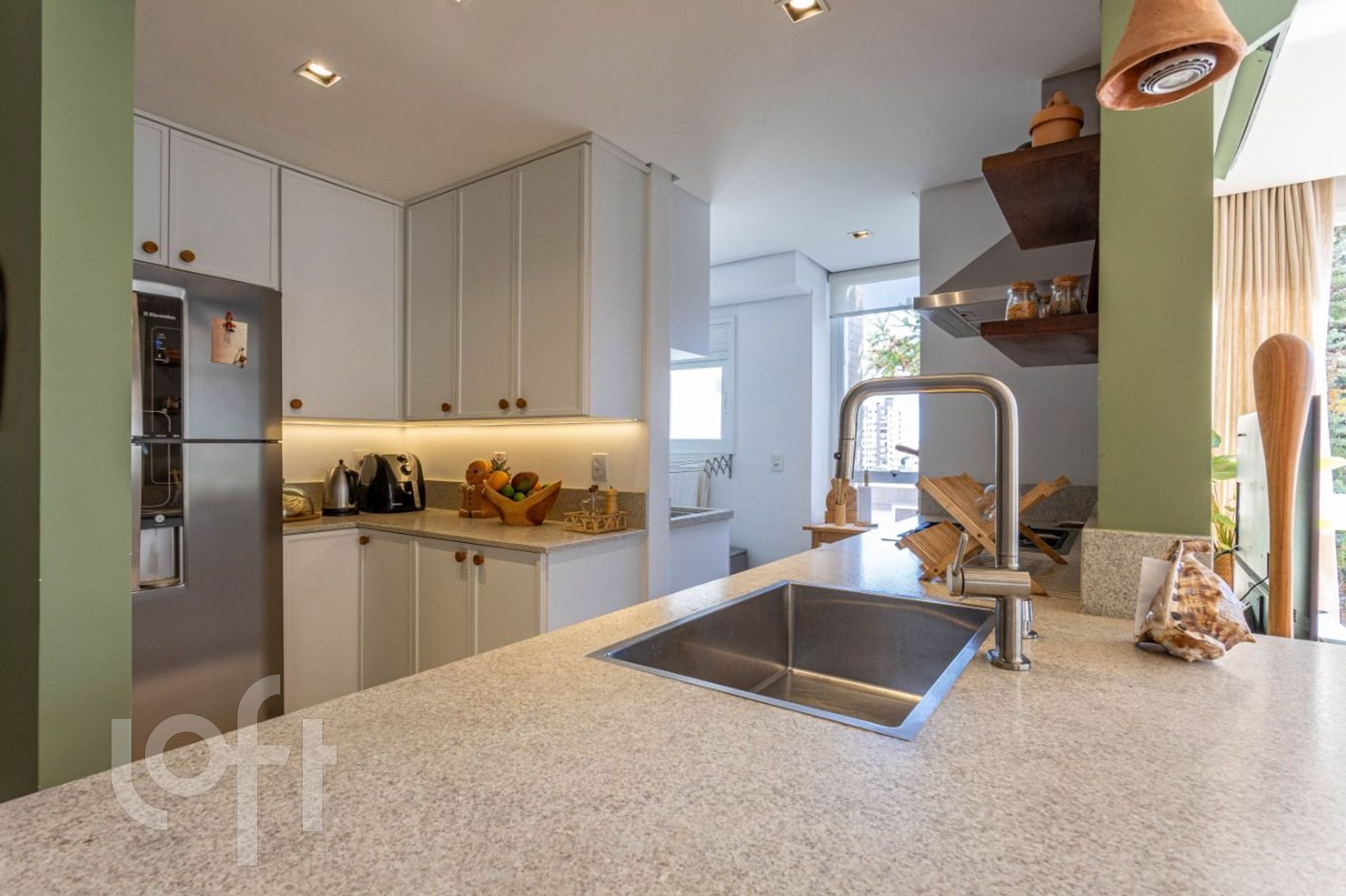 Imóvel de frente, muito ensolarado e ventilado, lindamente decorado por arquiteto, banheiros com ventilação direta, cozinha americana com churrasqueira de muito bom gosto.