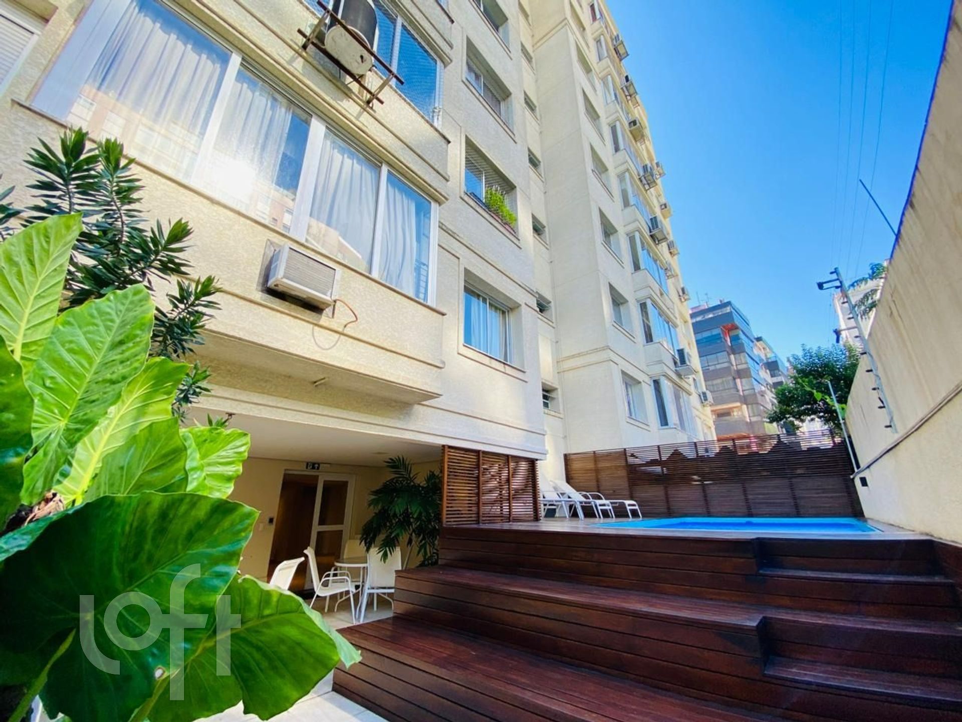 Prédio com piscina, fitness, salão de festas, um requintado hall de entrada.