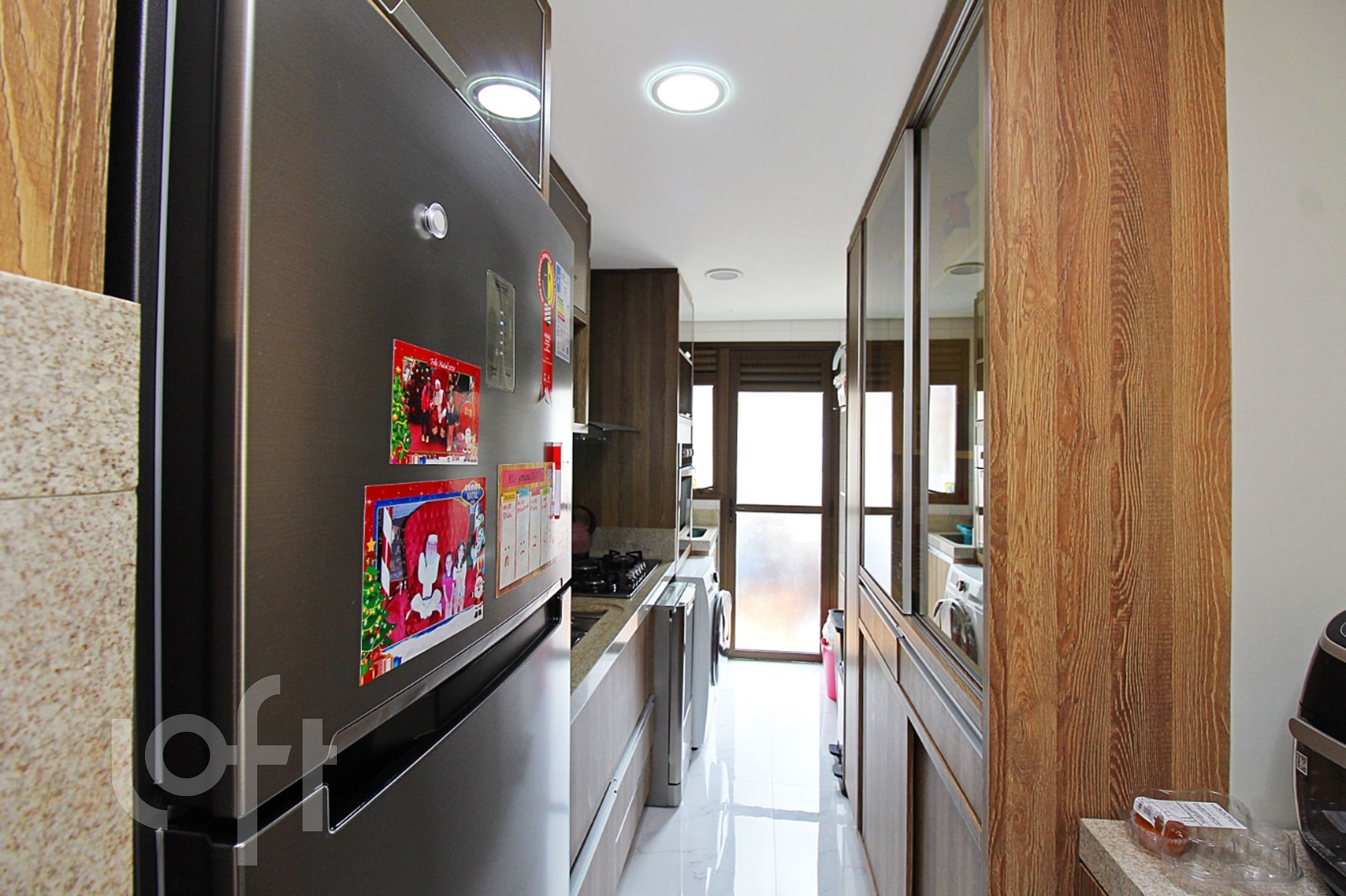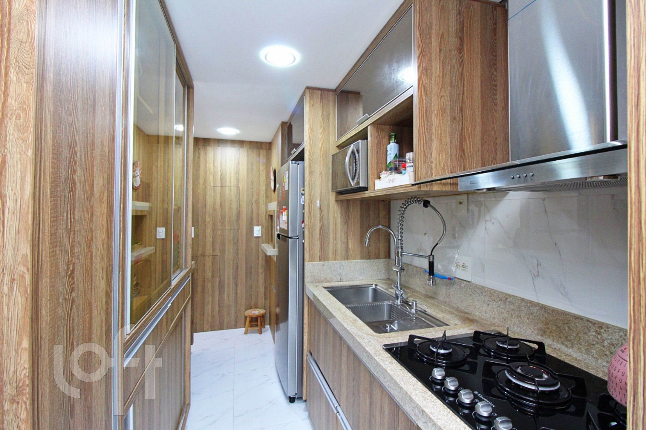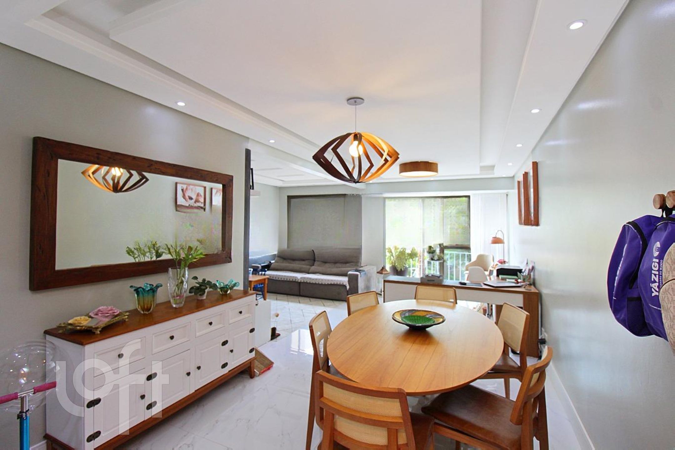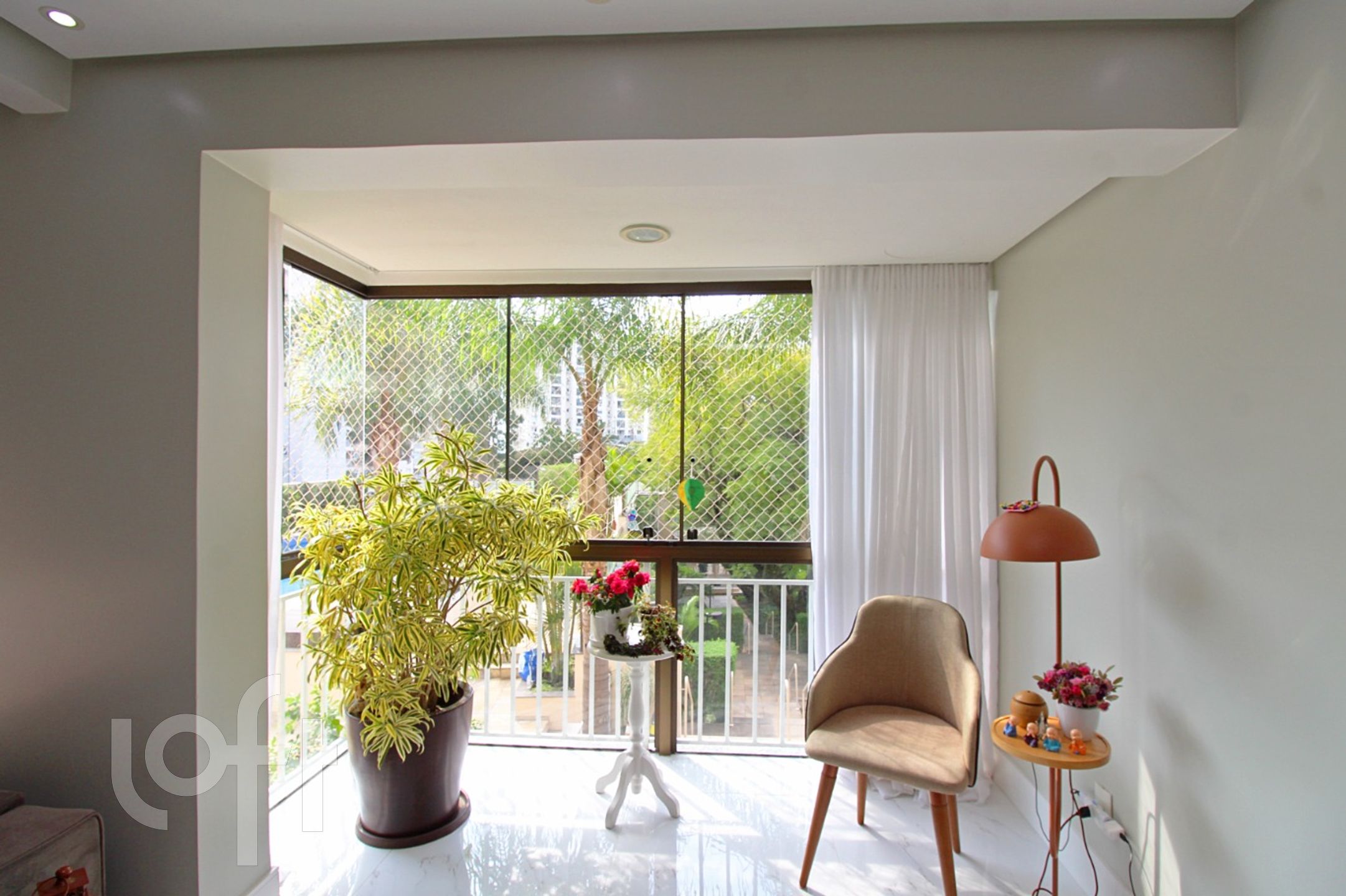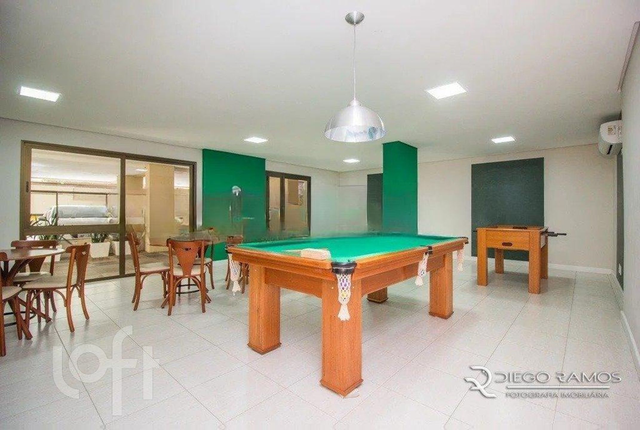 Living para 3 ambientes climatizado com piso todo em porcelanato, copa cozinha americana montada COM CHURRASQUEIRA.